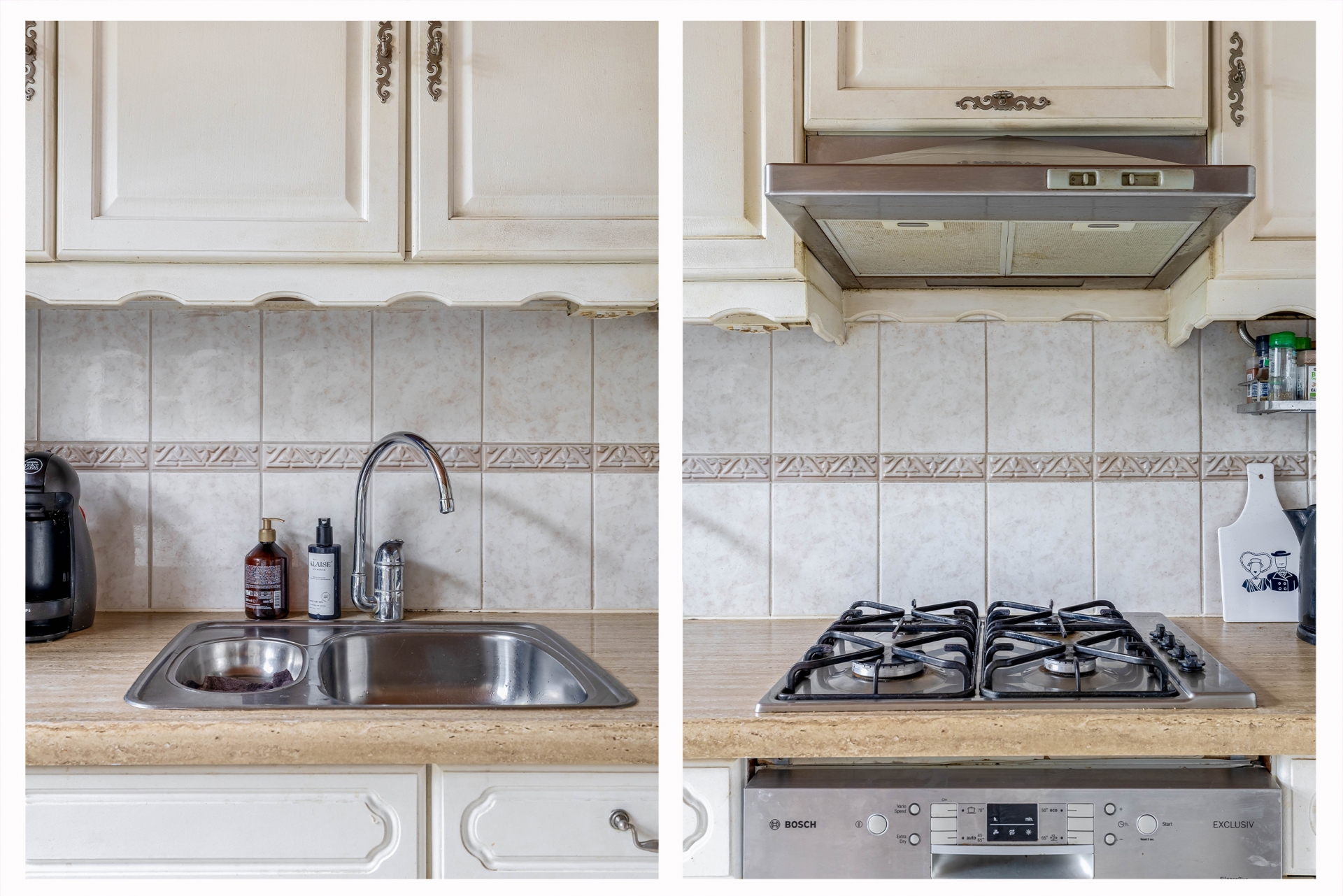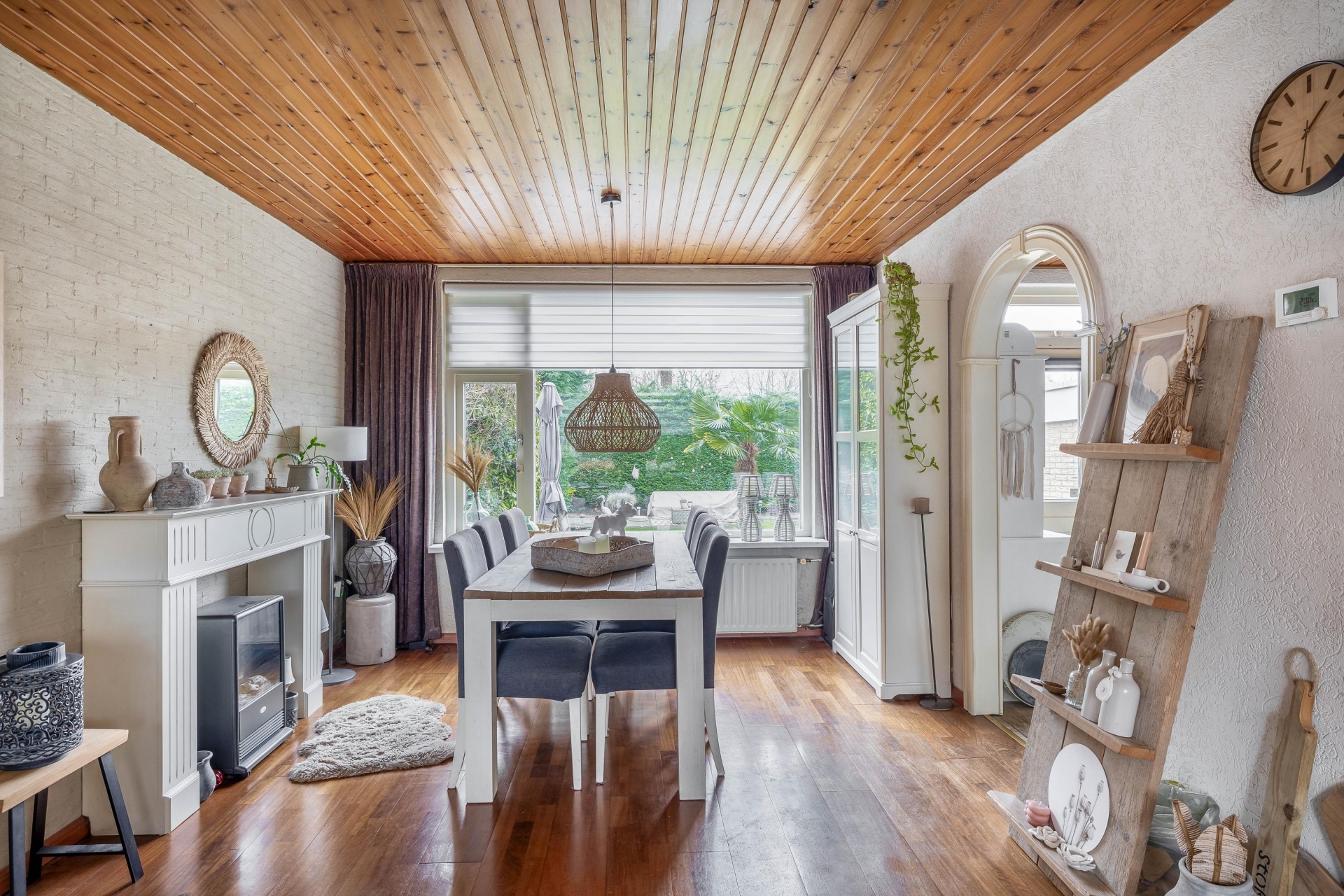 De lichte doorzonwoonkamer valt direct op door de grote raampartijen en prettige lichtinval. Aansluitend bevindt zich de halfopen keuken, uitgerust met diverse inbouwapparatuur. Vanuit de keuken is er directe toegang tot de riante achtertuin, een fijne plek om in alle rust van het buitenleven te genieten.