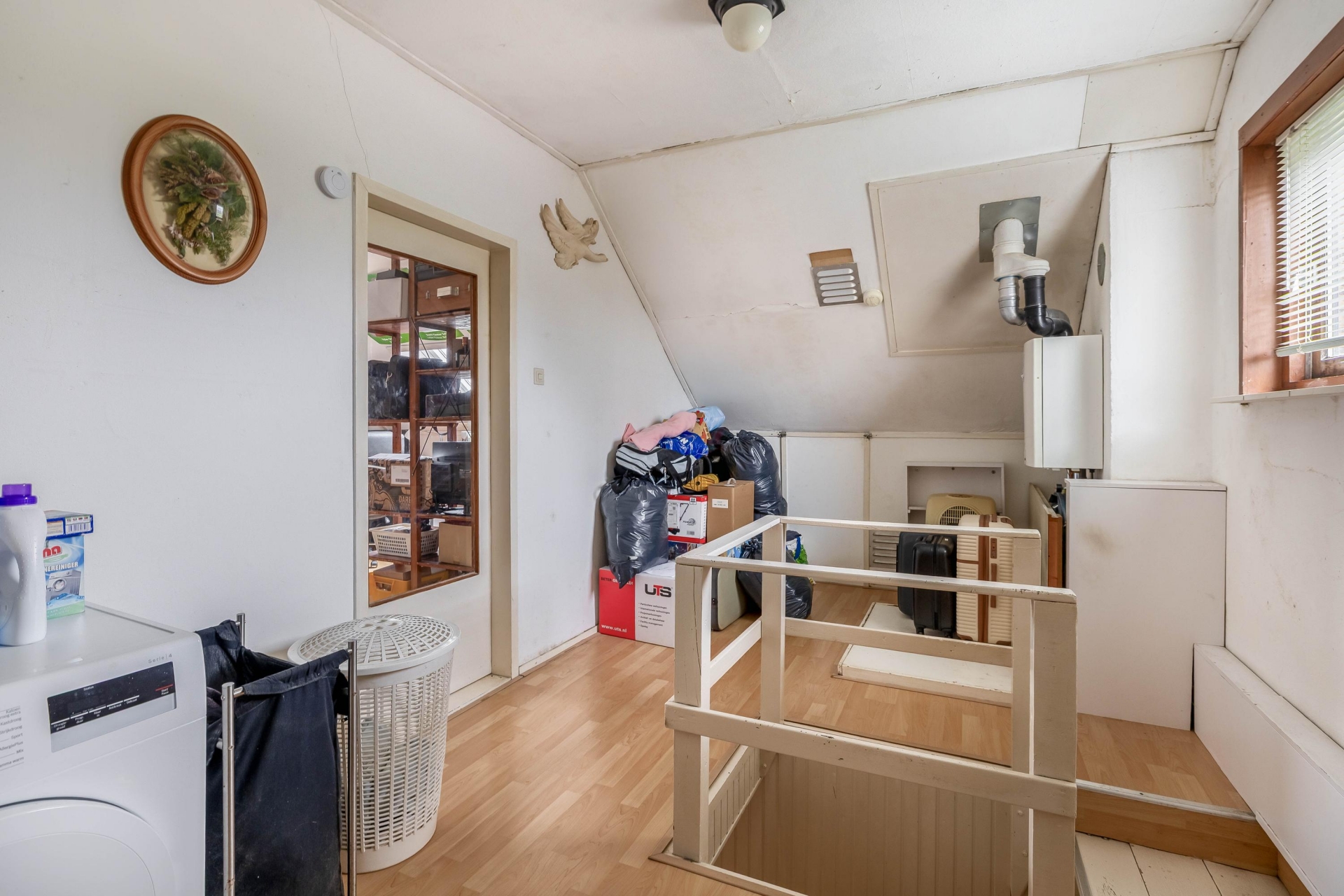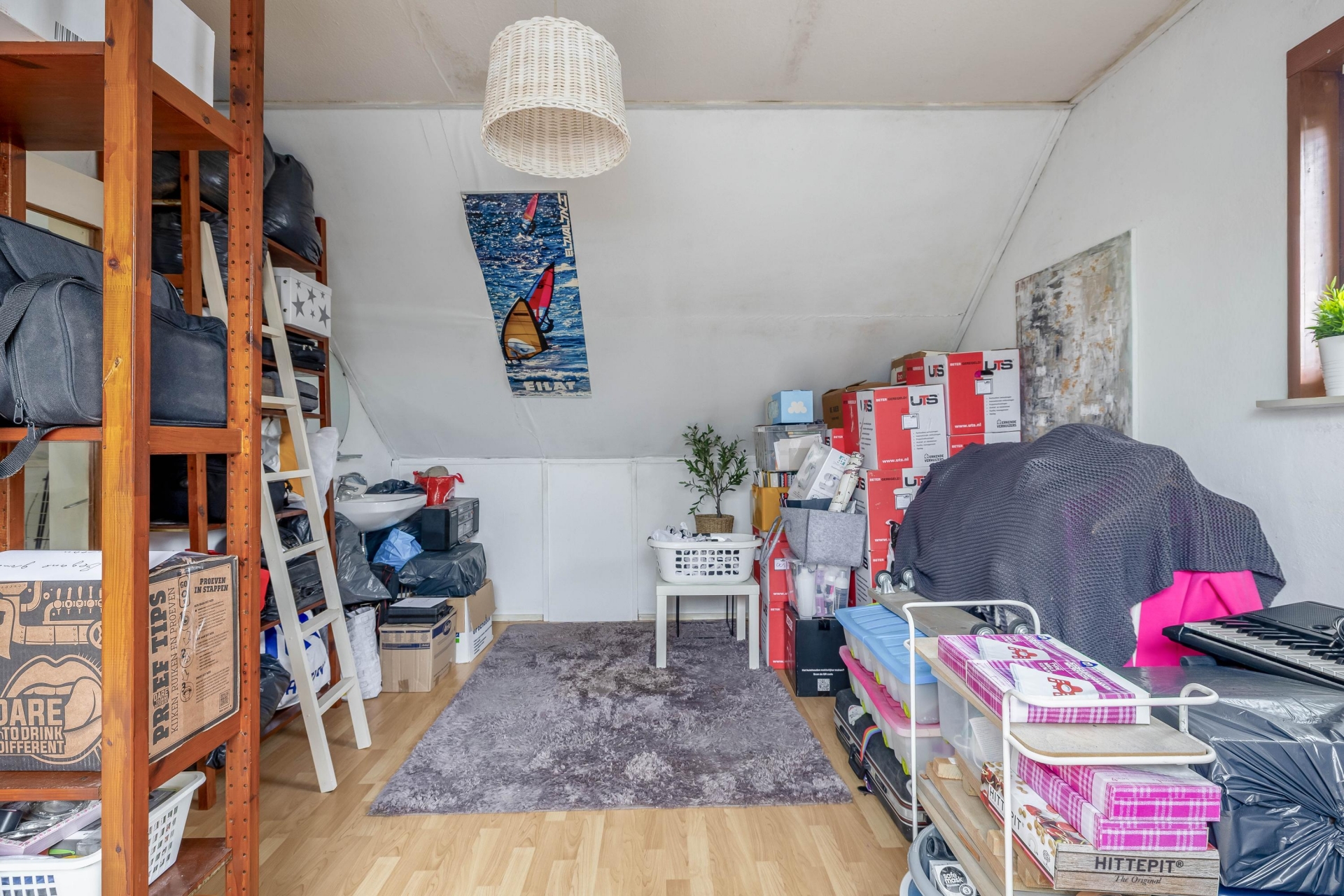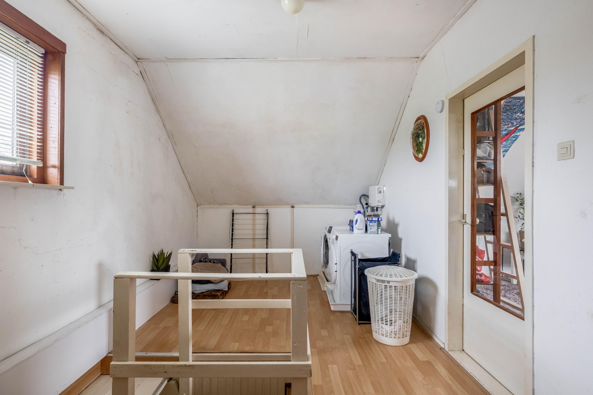De zolderverdieping biedt verrassend veel ruimte. Op de voorzolder bevinden zich de opstelplaatsen voor wasmachine en droger, evenals de cv-ketel. Daarnaast is hier een vierde, ruime slaapkamer, ideaal als extra slaap-, werk- of hobbykamer.