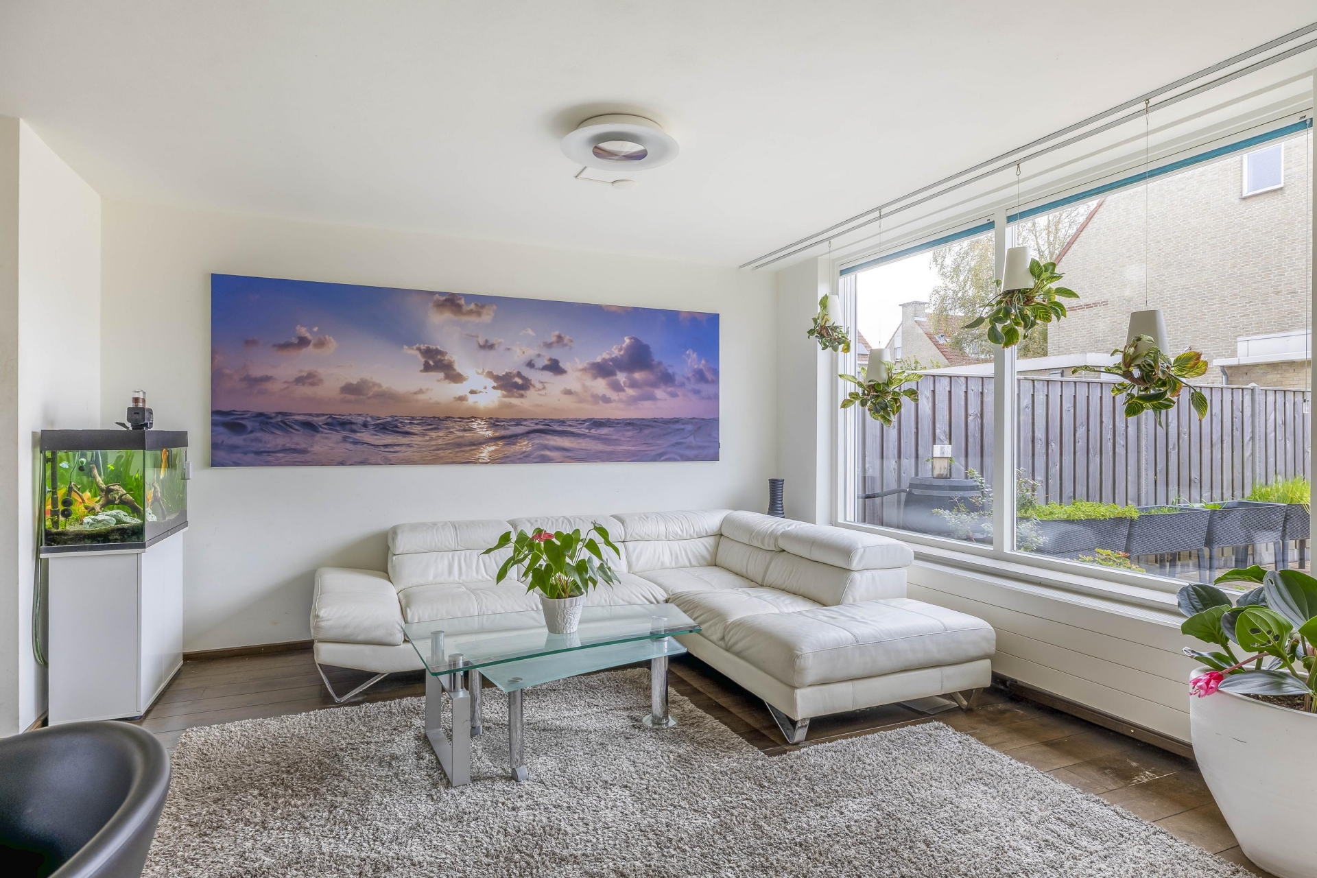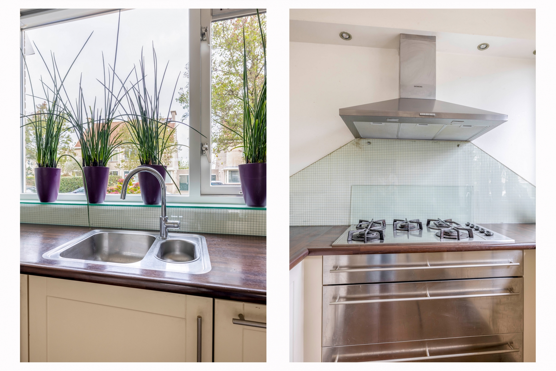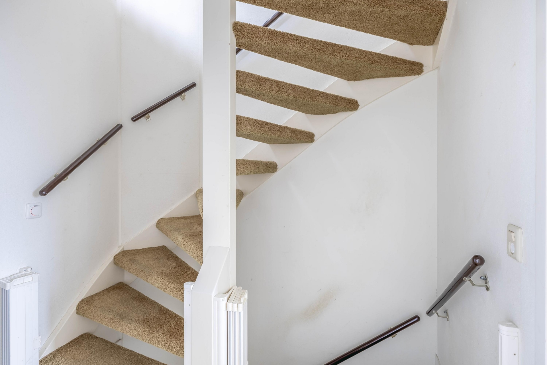 De begane grond biedt een prettige leefruimte met volop daglicht dankzij de grote raampartijen aan de achterzijde. De woonkamer voelt ruim en open aan, met een mooie doorloop naar de eethoek en tuin. De tuin is direct bereikbaar via een achterdeur, wat het buitenleven makkelijk maakt — ideaal voor zomerse etentjes of gewoon een kop koffie of glas wijn in de zon. Aan de voorzijde bevindt zich de halfopen keuken, functioneel ingedeeld en voorzien van de benodigde apparatuur. Deze is netjes onderhouden en goed bruikbaar. De combinatie van een doorzonindeling met een directe verbinding naar buiten maakt dit een fijne, praktische begane grond waar je je snel thuis zult voelen.