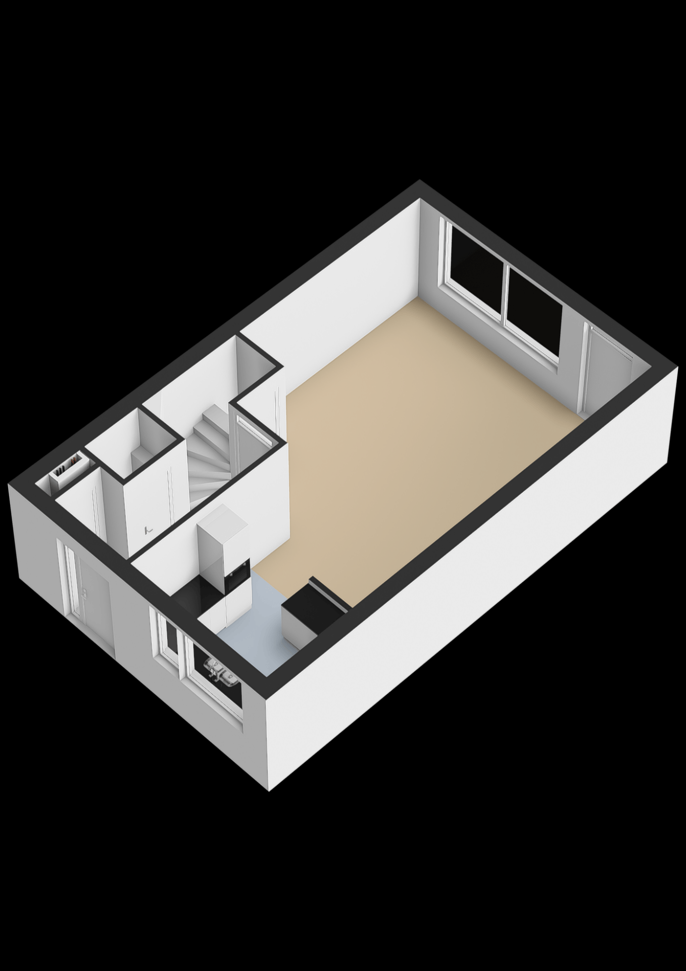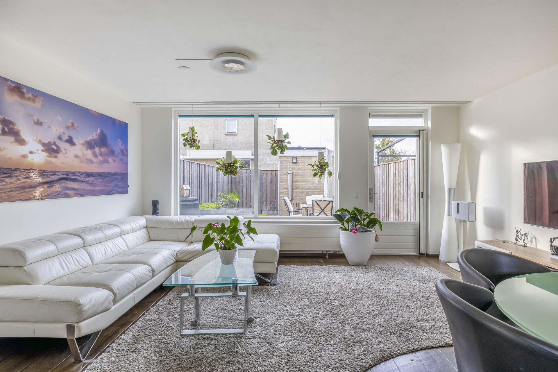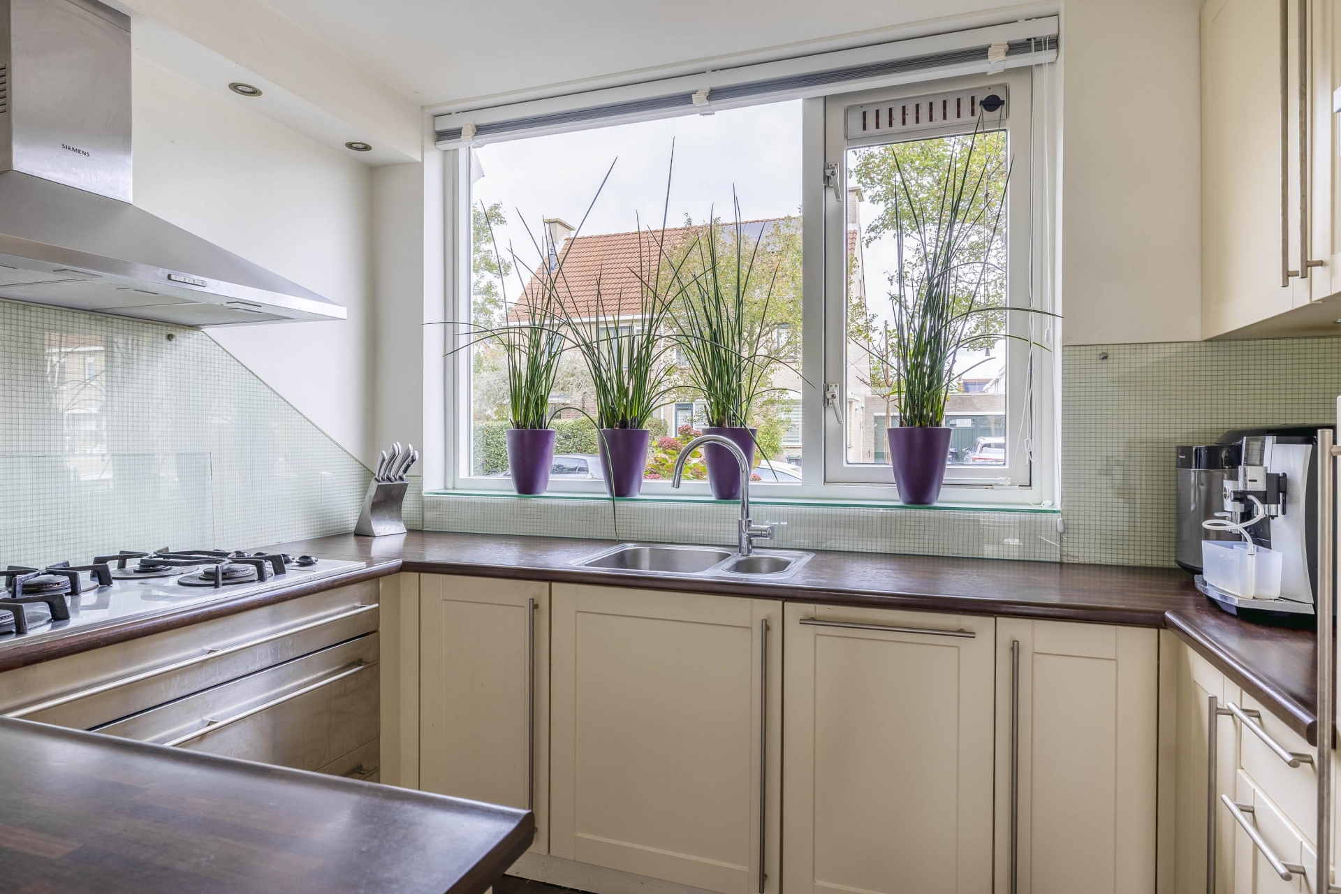 De begane grond biedt een prettige leefruimte met volop daglicht dankzij de grote raampartijen aan de achterzijde. De woonkamer voelt ruim en open aan, met een mooie doorloop naar de eethoek en tuin. De tuin is direct bereikbaar via een achterdeur, wat het buitenleven makkelijk maakt — ideaal voor zomerse etentjes of gewoon een kop koffie of glas wijn in de zon. Aan de voorzijde bevindt zich de halfopen keuken, functioneel ingedeeld en voorzien van de benodigde apparatuur. Deze is netjes onderhouden en goed bruikbaar. De combinatie van een doorzonindeling met een directe verbinding naar buiten maakt dit een fijne, praktische begane grond waar je je snel thuis zult voelen.
