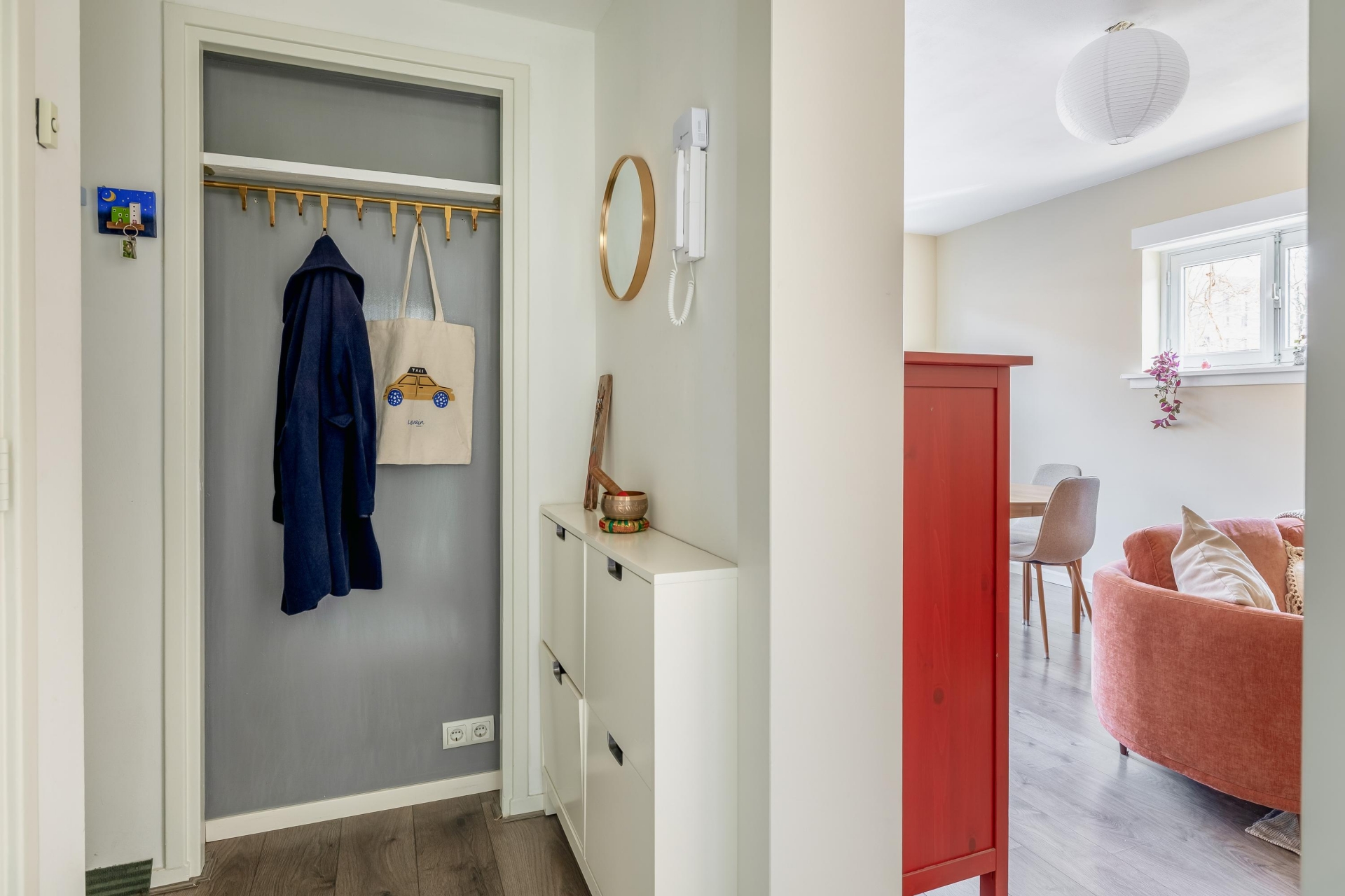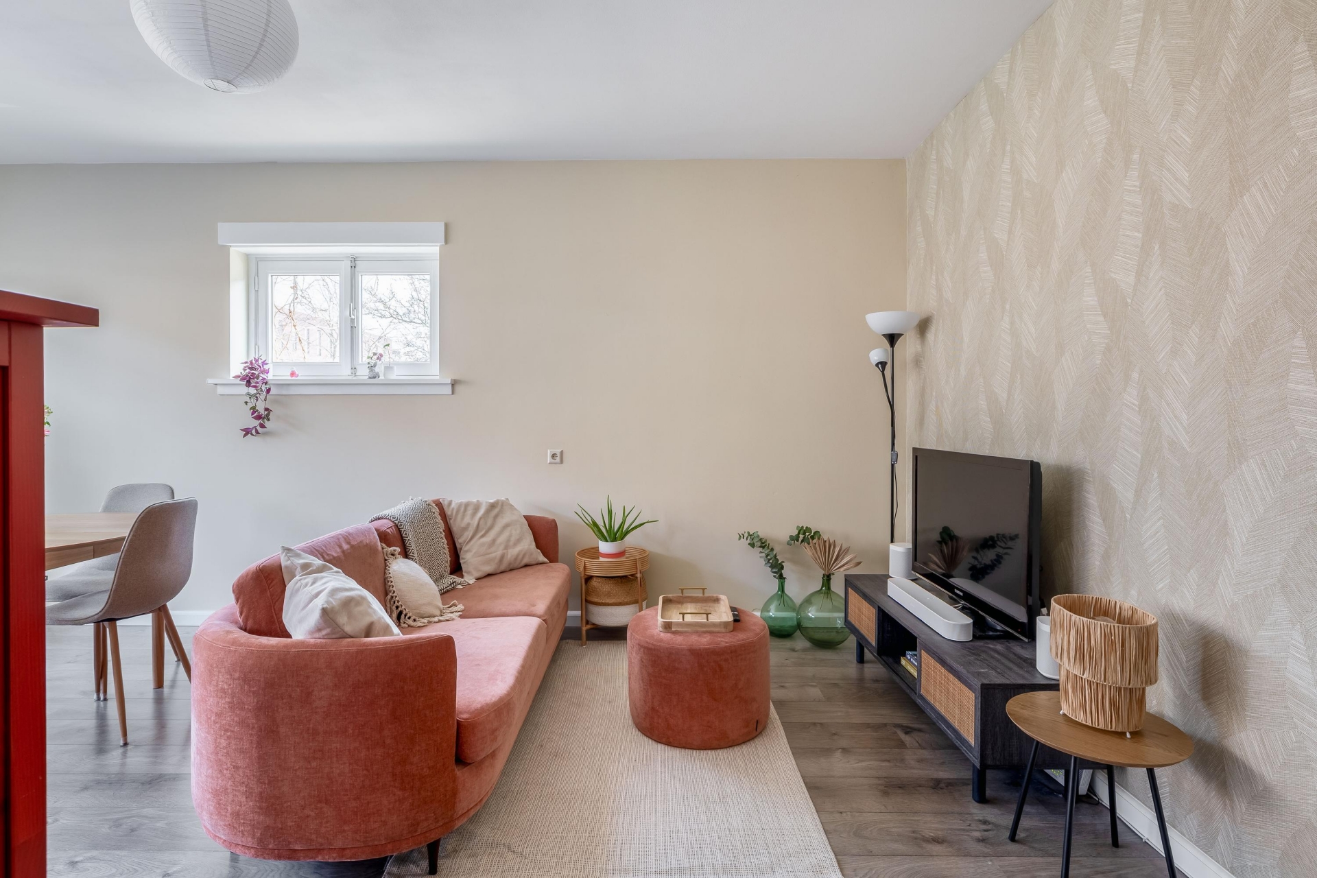 Bij binnenkomst merk je direct dat het appartement een prettige en lichte sfeer heeft. De woonkamer vormt het hart van het huis en biedt voldoende ruimte voor zowel een gezellige zithoek als een eethoek. Dankzij de ramen komt er veel daglicht naar binnen, wat zorgt voor een fijne en open uitstraling.