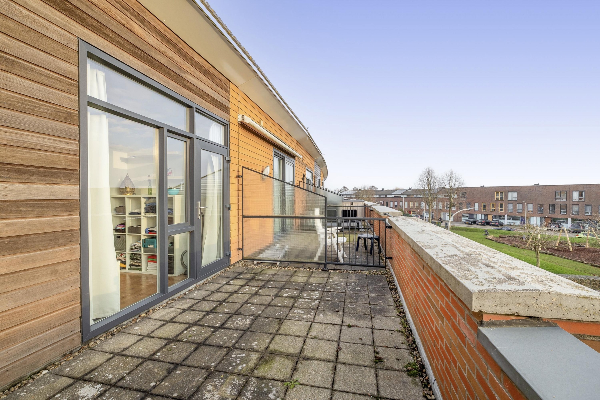 Op het dakterras is, middels vergunning, een uitbouw met extra kamer mogelijk.