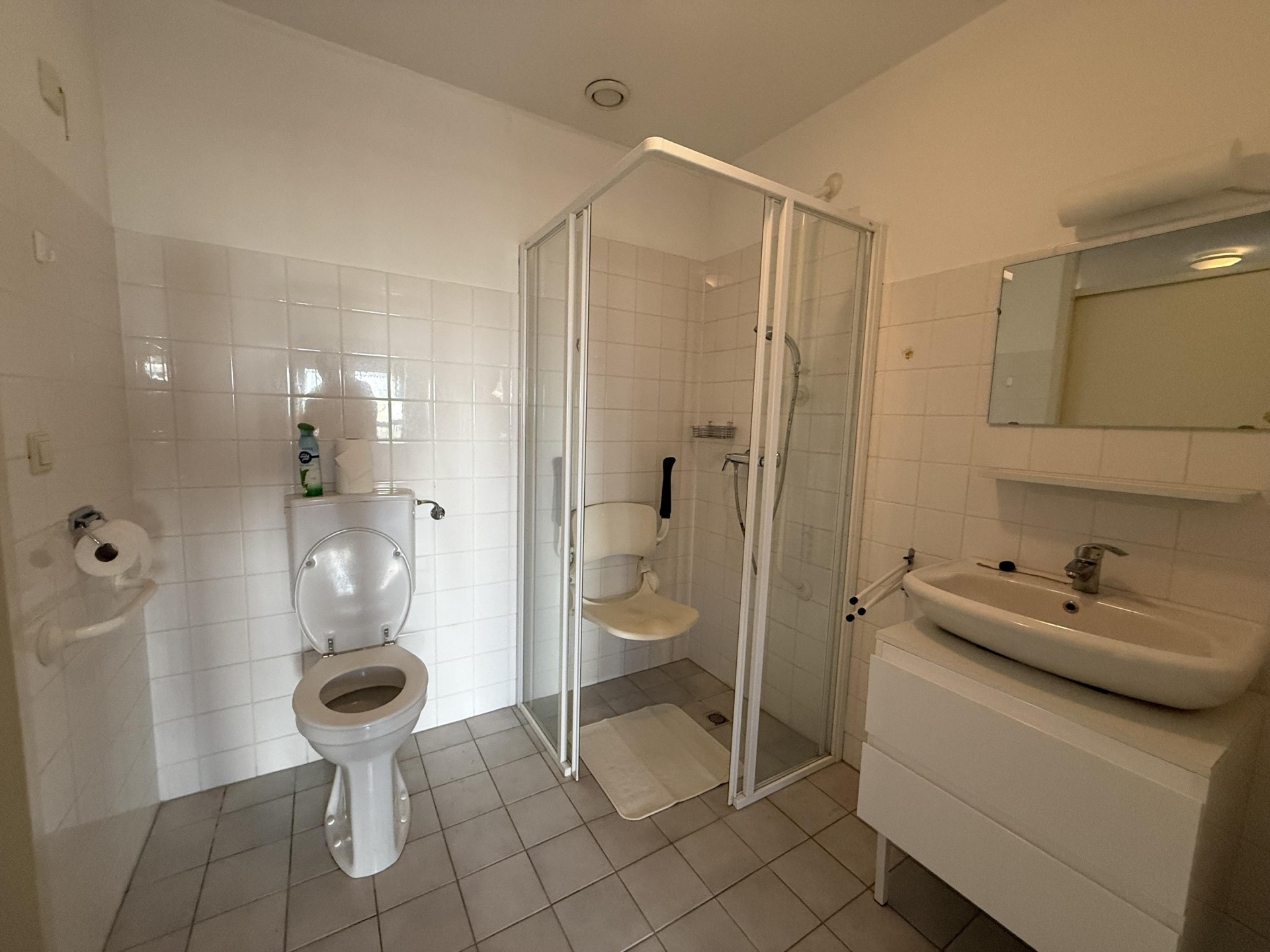 Badkamer beschikt over een douchegelegenheid, toilet en wastafel.