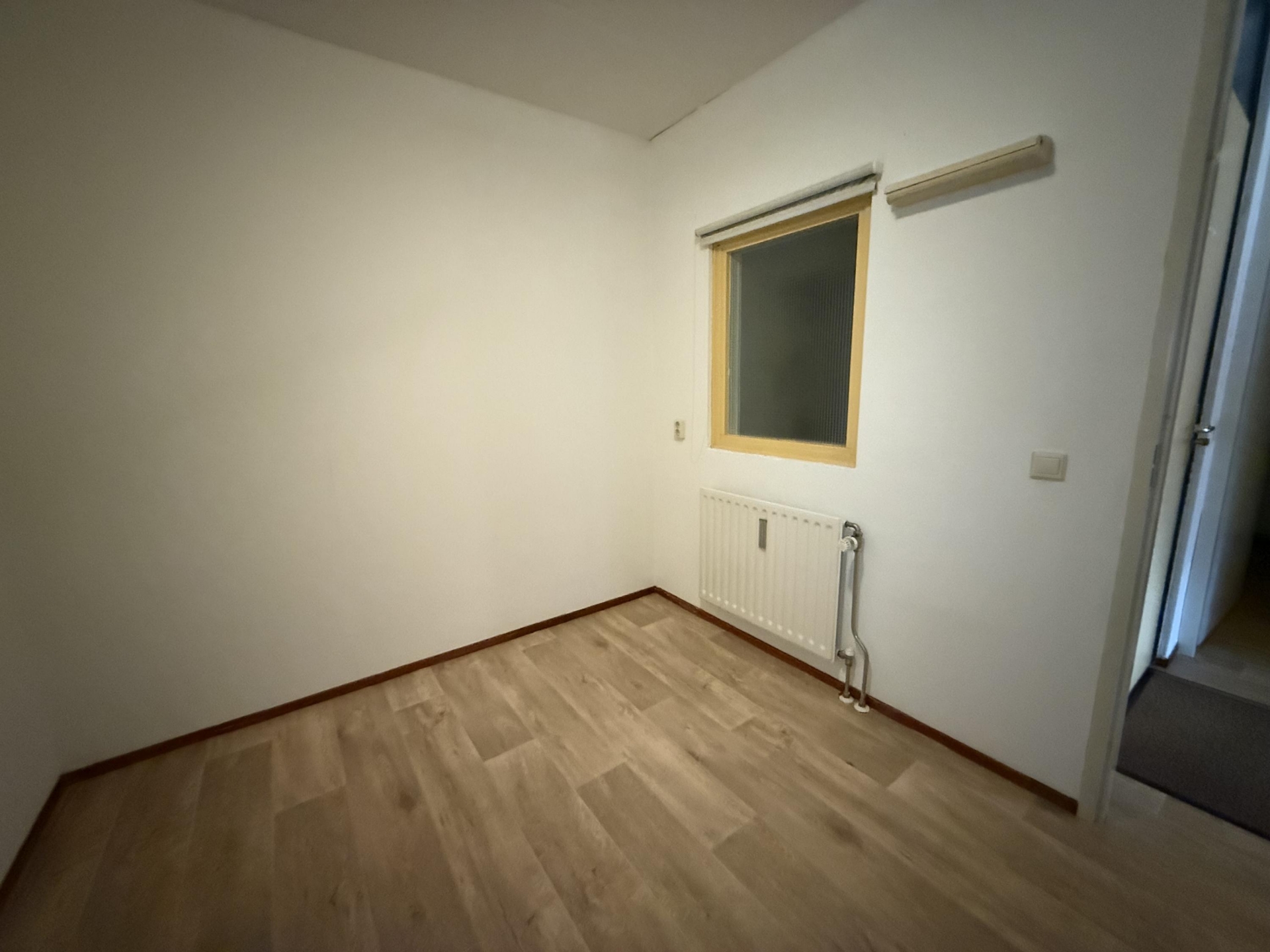 Entree/hal geeft toegang tot de woonkamer met open keuken, badkamer, hobby-/slaapkamer en de cv/bergruimte