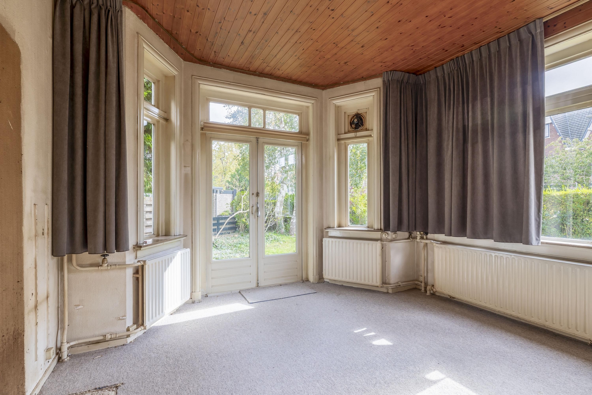 De woonkamer met erker aan de voorzijde en openslaande deuren naar de tuin vormt het hart van het huis. Dankzij de hoekligging en de vele ramen geniet u hier de hele dag door van veel licht. De ruimte is flexibel in te delen; of u nu droomt van een leefkeuken, een werkplek aan huis of een extra zitgedeelte – het kan allemaal.