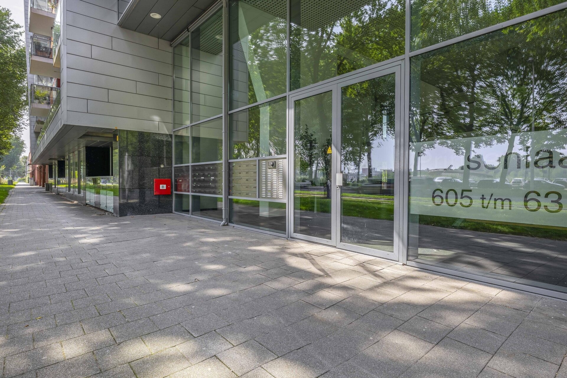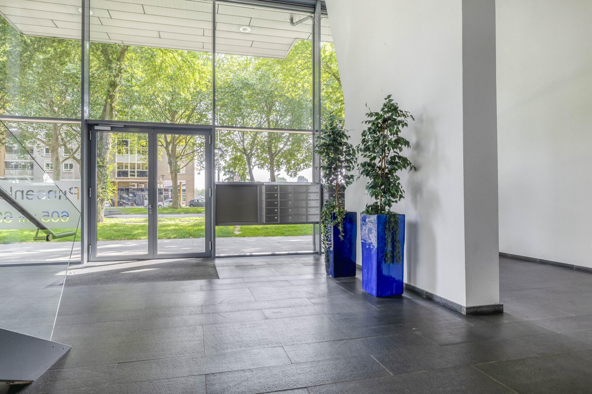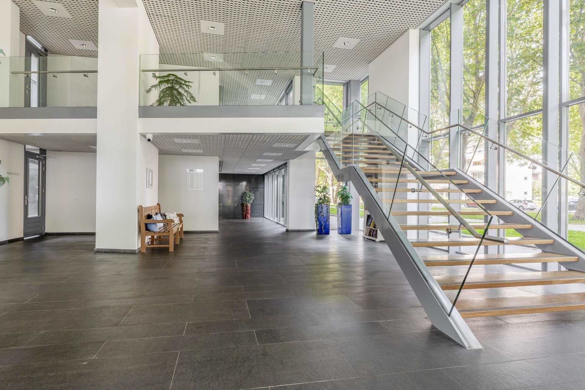 CENTRALE HAL: Vanuit de stijlvolle entree loop je zo door naar het trappenhuis, de liften en de inpandige parkeergarage; uiteraard afgesloten en alleen toegankelijk voor bewoners. Alles is strak verzorgd en praktisch ingedeeld.