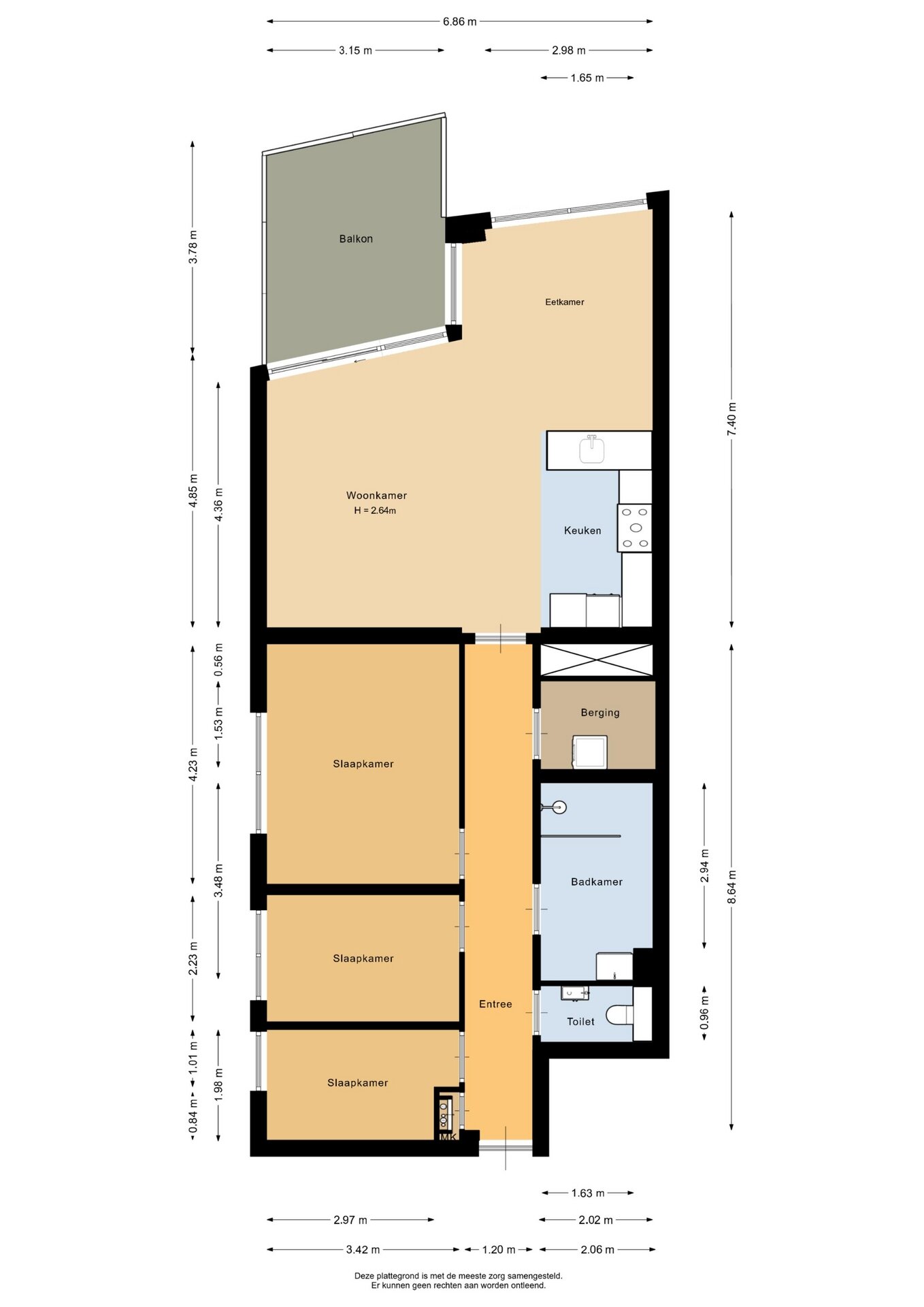 “Deze informatie is door ons met de nodige zorgvuldigheid samengesteld. Onzerzijds wordt echter geen enkele aansprakelijkheid aanvaard voor enige onvolledigheid, onjuistheid of anderszins, dan wel de gevolgen daarvan. Alle opgegeven maten en oppervlakten zijn indicatief.”