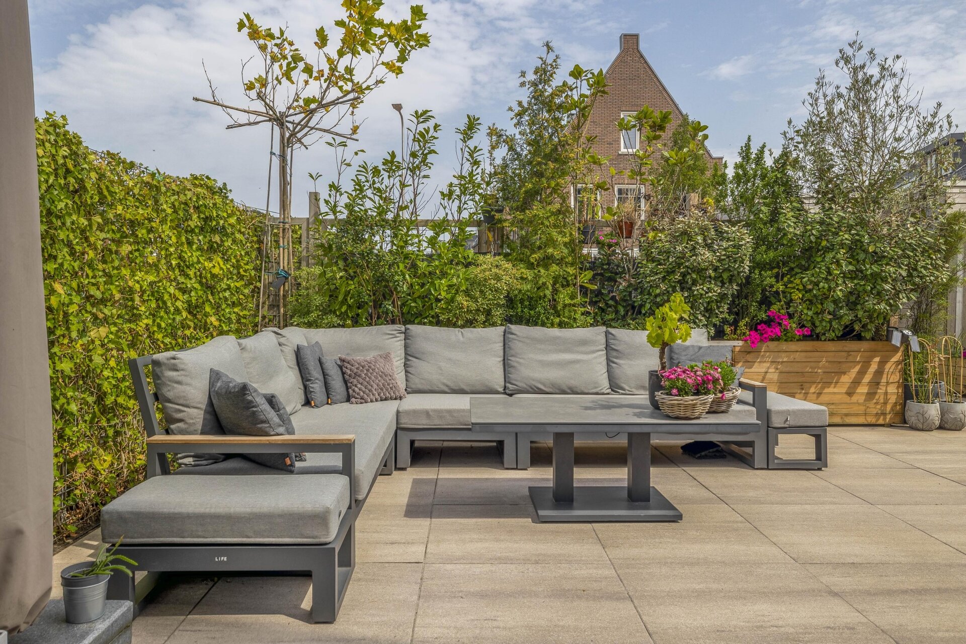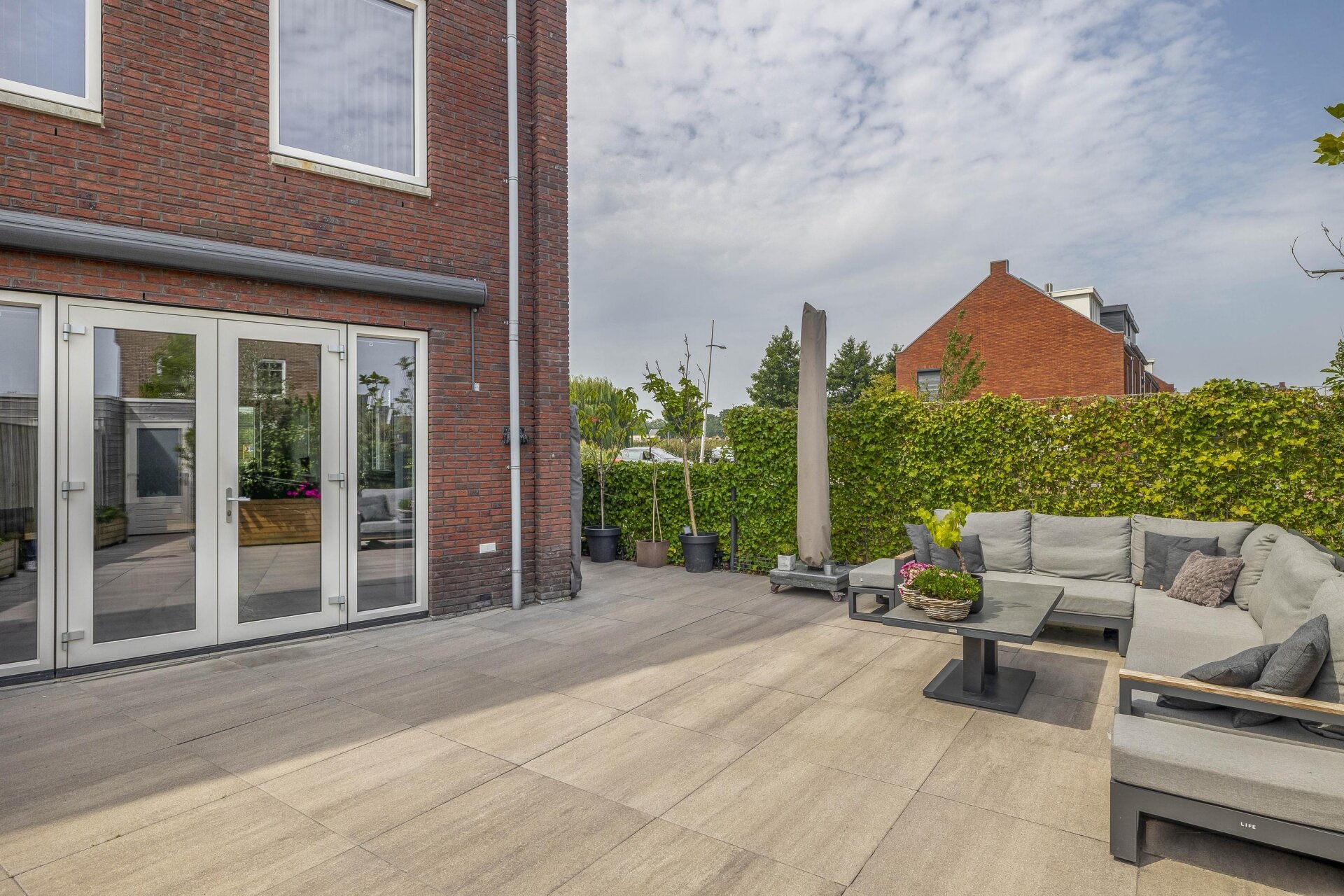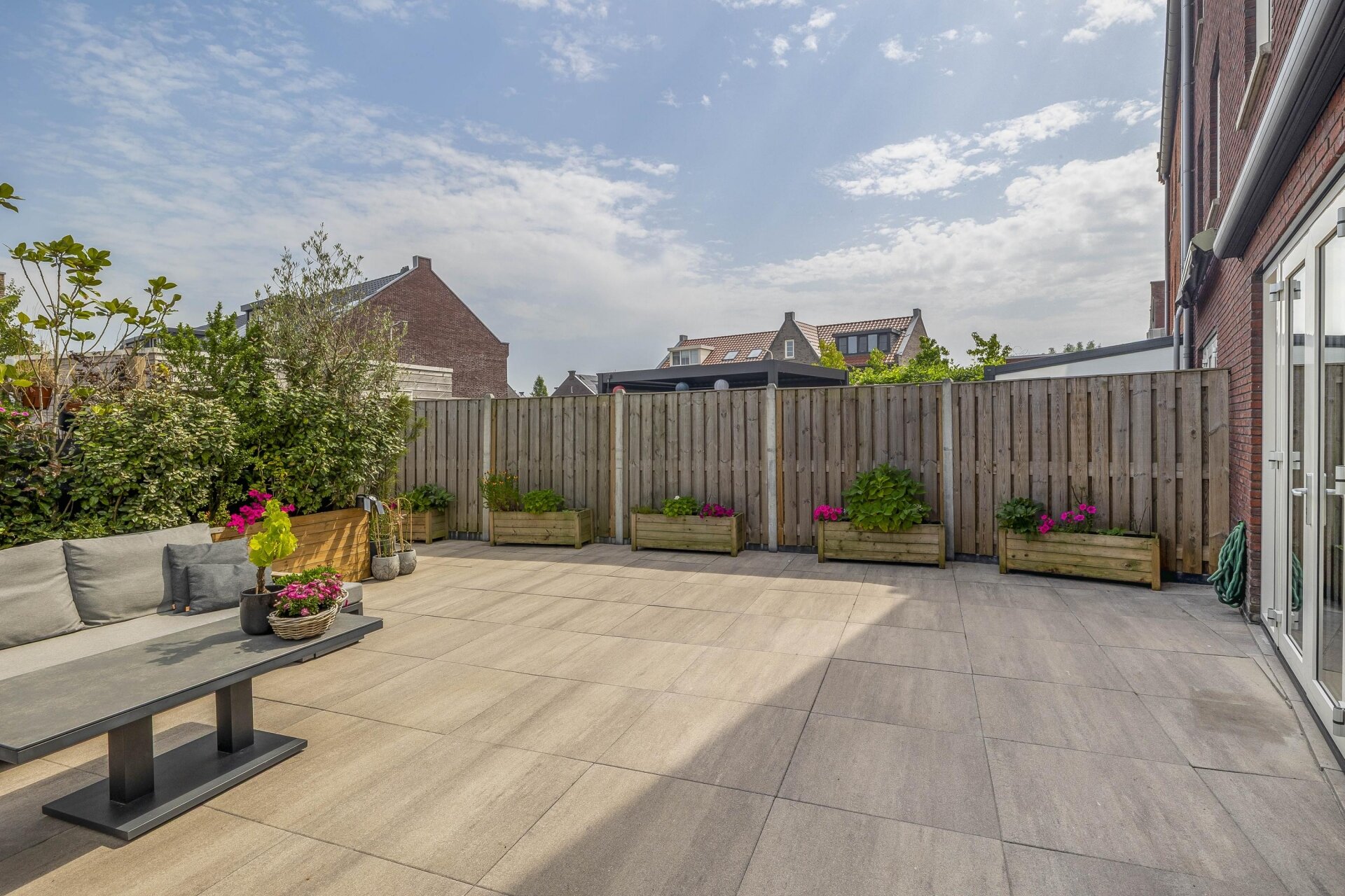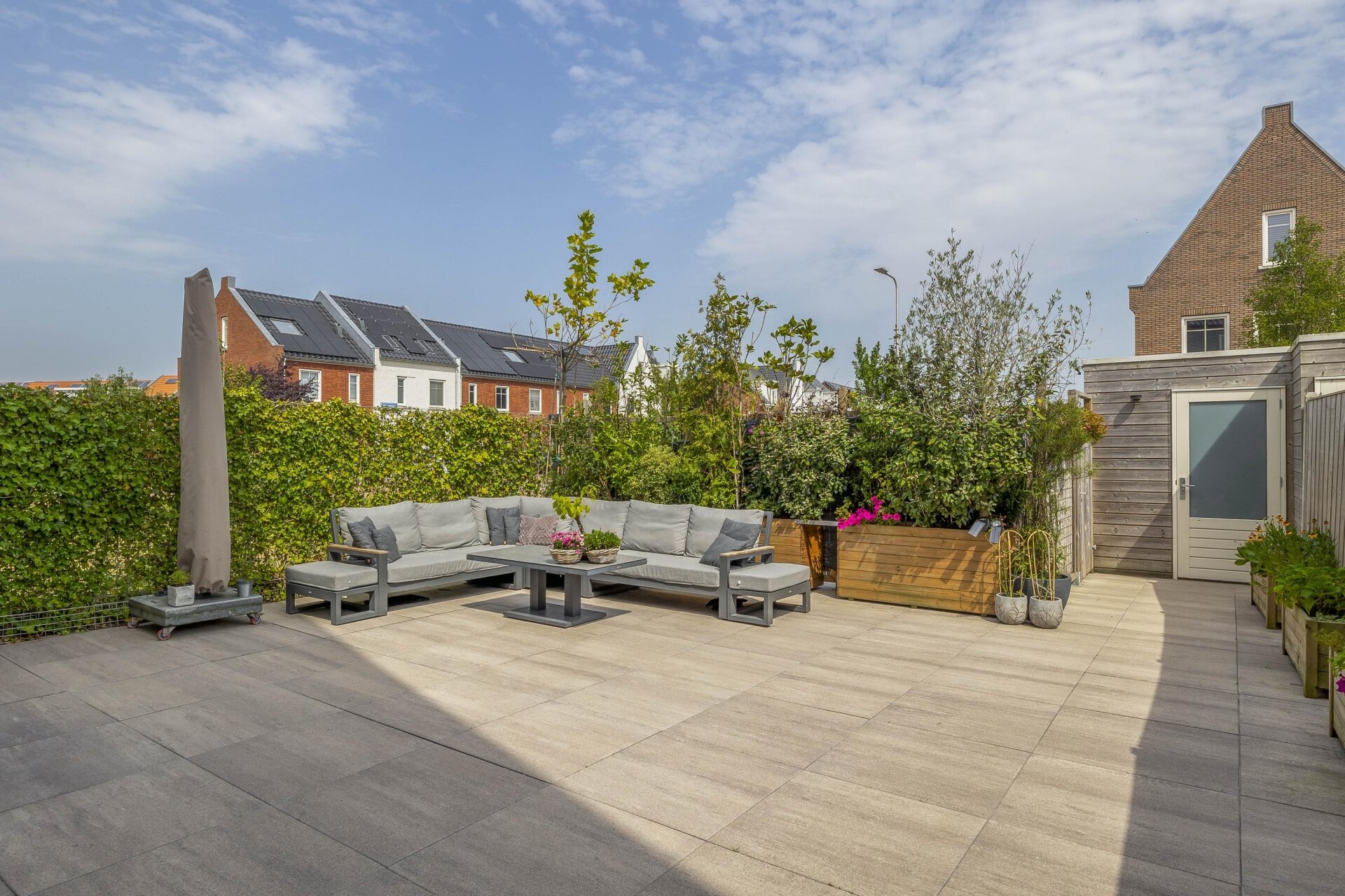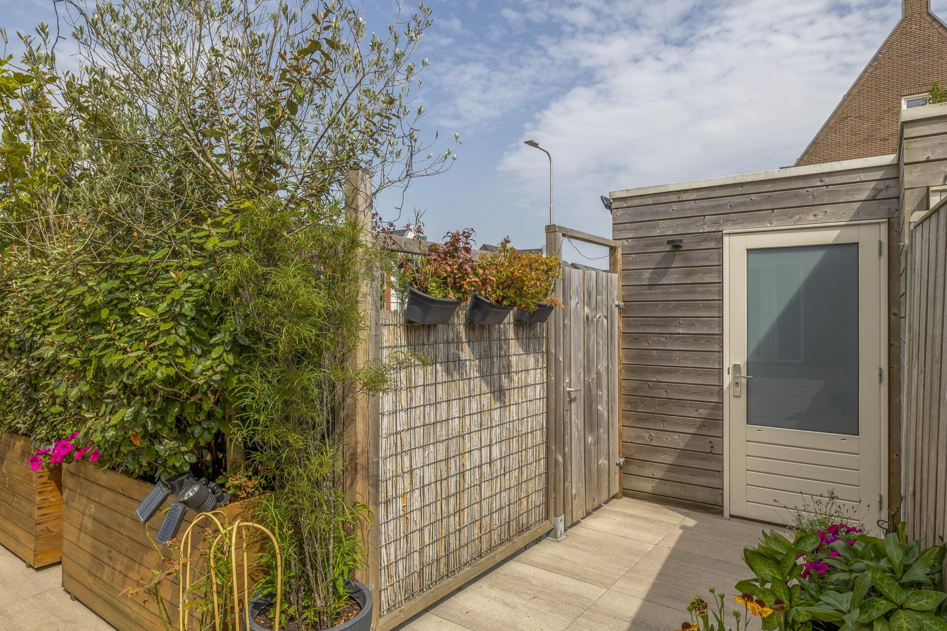 Via de openslaande deuren bereikt u de ruime achtertuin. Deze is volledig bestraat en daardoor onderhoudsvriendelijk ingericht. Achter in de tuin staat een houten berging met elektra, ideaal voor het opbergen van fietsen en tuingereedschap. Daarnaast biedt het perceel de mogelijkheid om op eigen terrein te parkeren d.m.v. 2 ruime parkeerplaatsen (36m2), wat natuurlijk erg praktisch is.