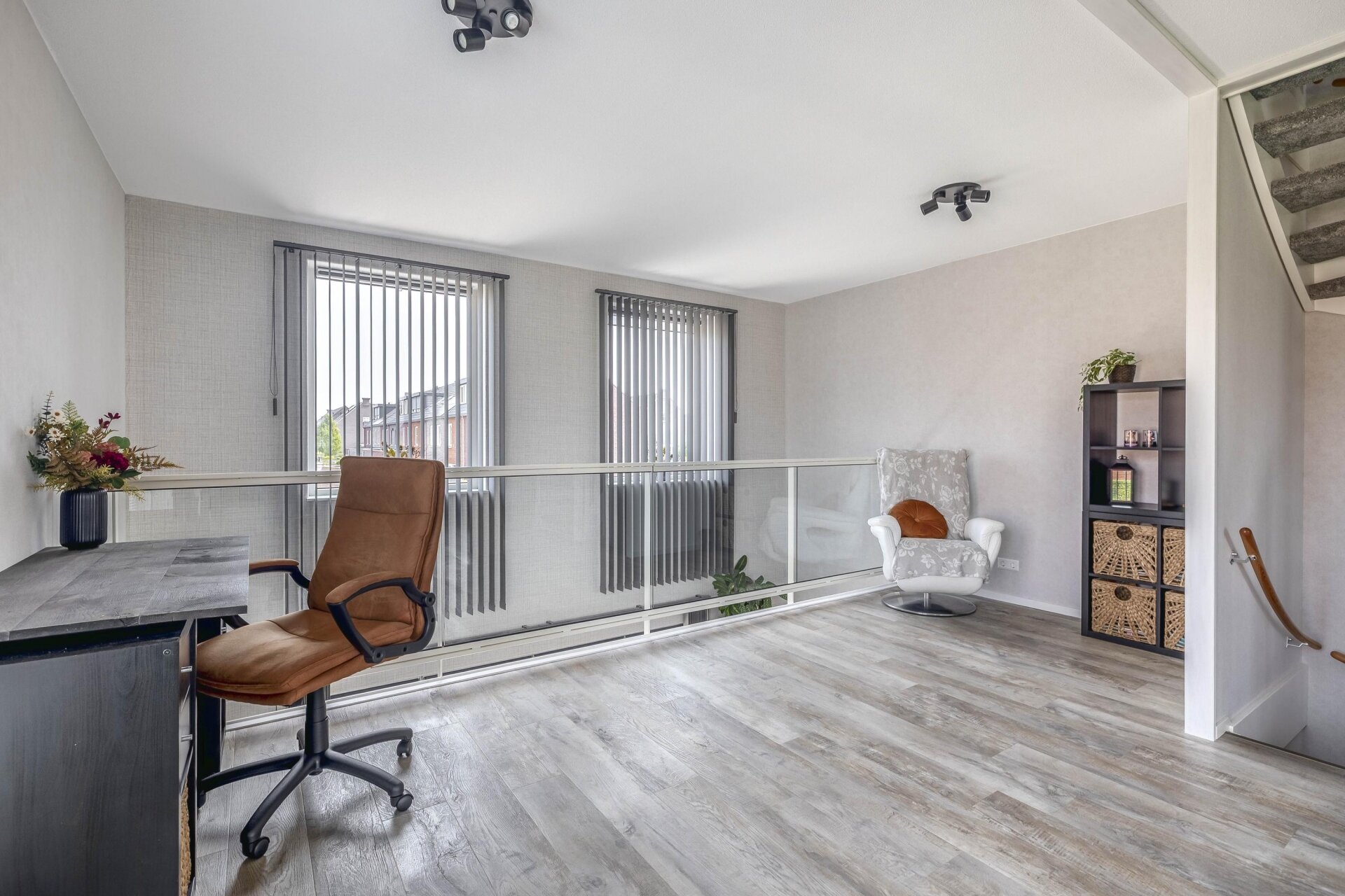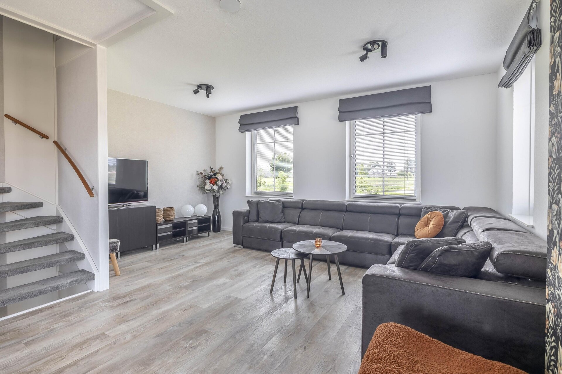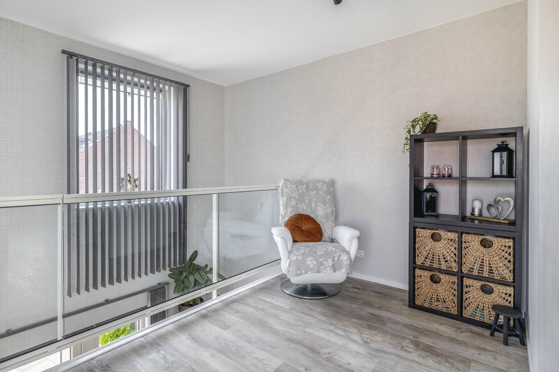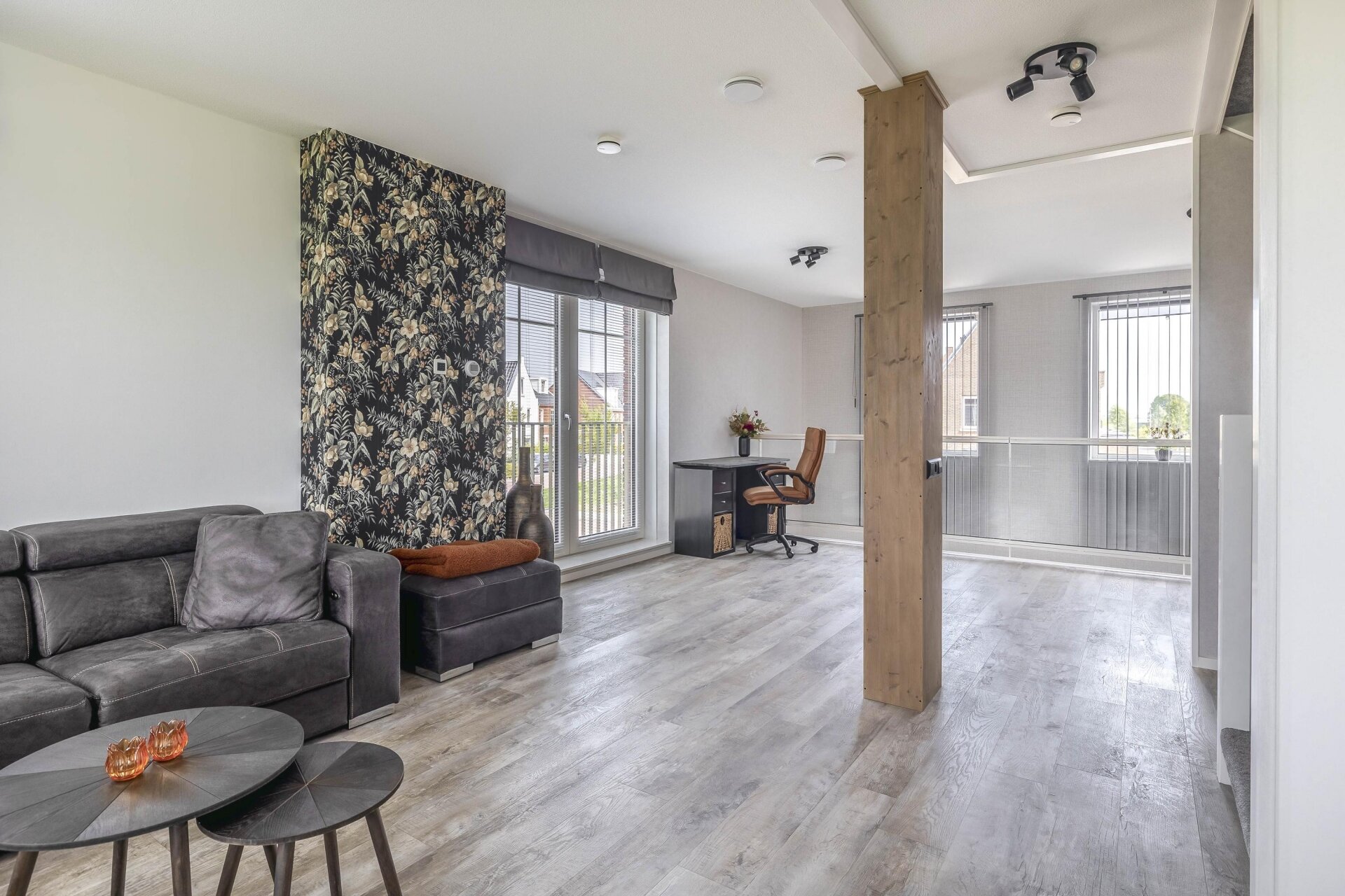 Vanuit de woonkeuken is er een directe verbinding met de ruime en lichte woonkamer op de eerste verdieping door de woningbrede vide, die zorgt voor extra lichtinval en een ruimtelijk gevoel.