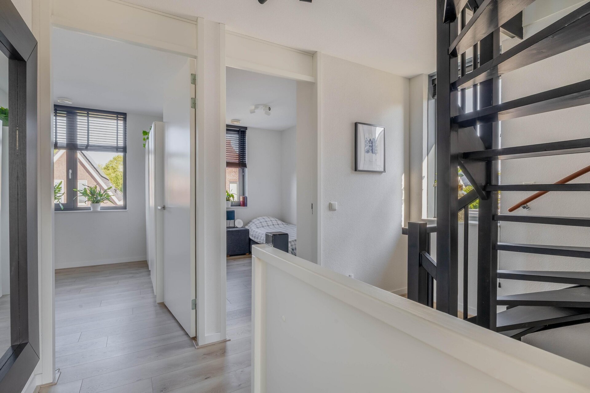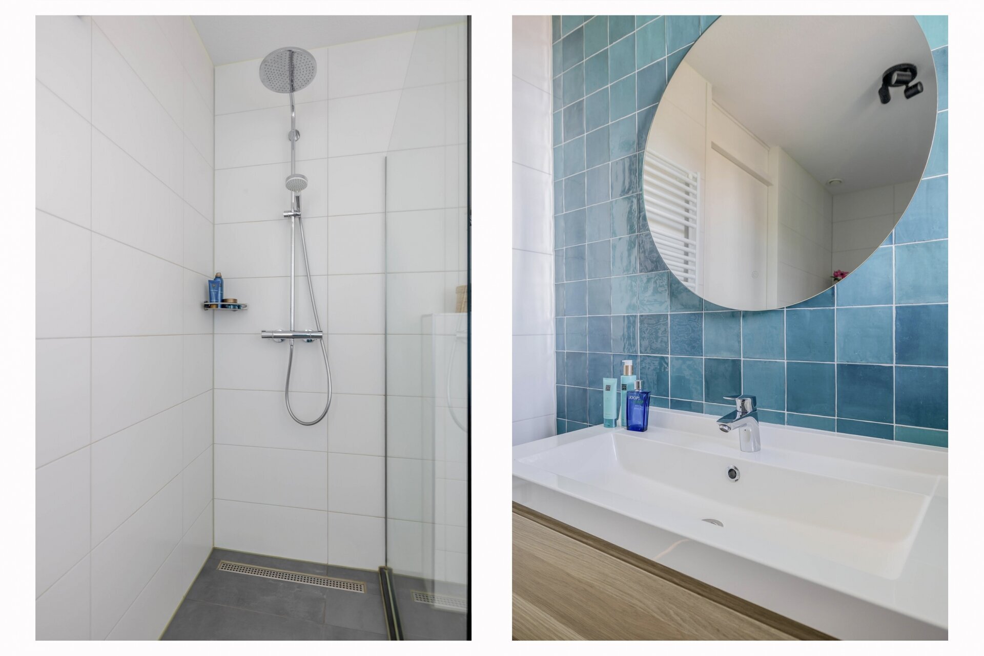 De eerste verdieping biedt drie slaapkamers, waarvan de grootste is voorzien van een royale inloopkast. De badkamer is strak afgewerkt en voorzien van een inloopdouche, een enkele wastafel met meubel en een toilet. Voor extra comfort is hier een elektrische radiator geplaatst, ideaal tijdens koude ochtenden of frisse dagen.