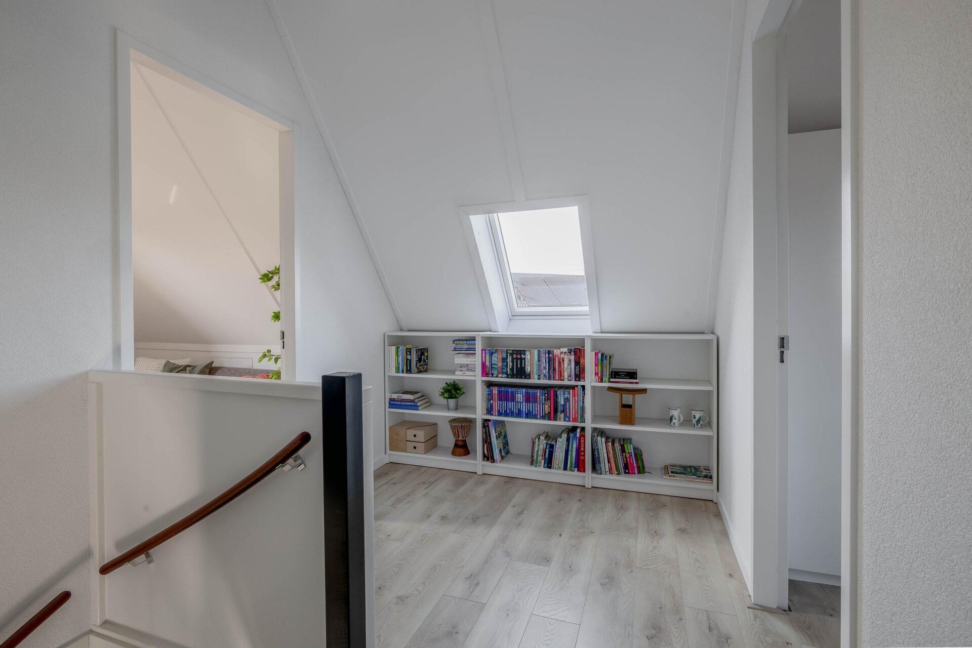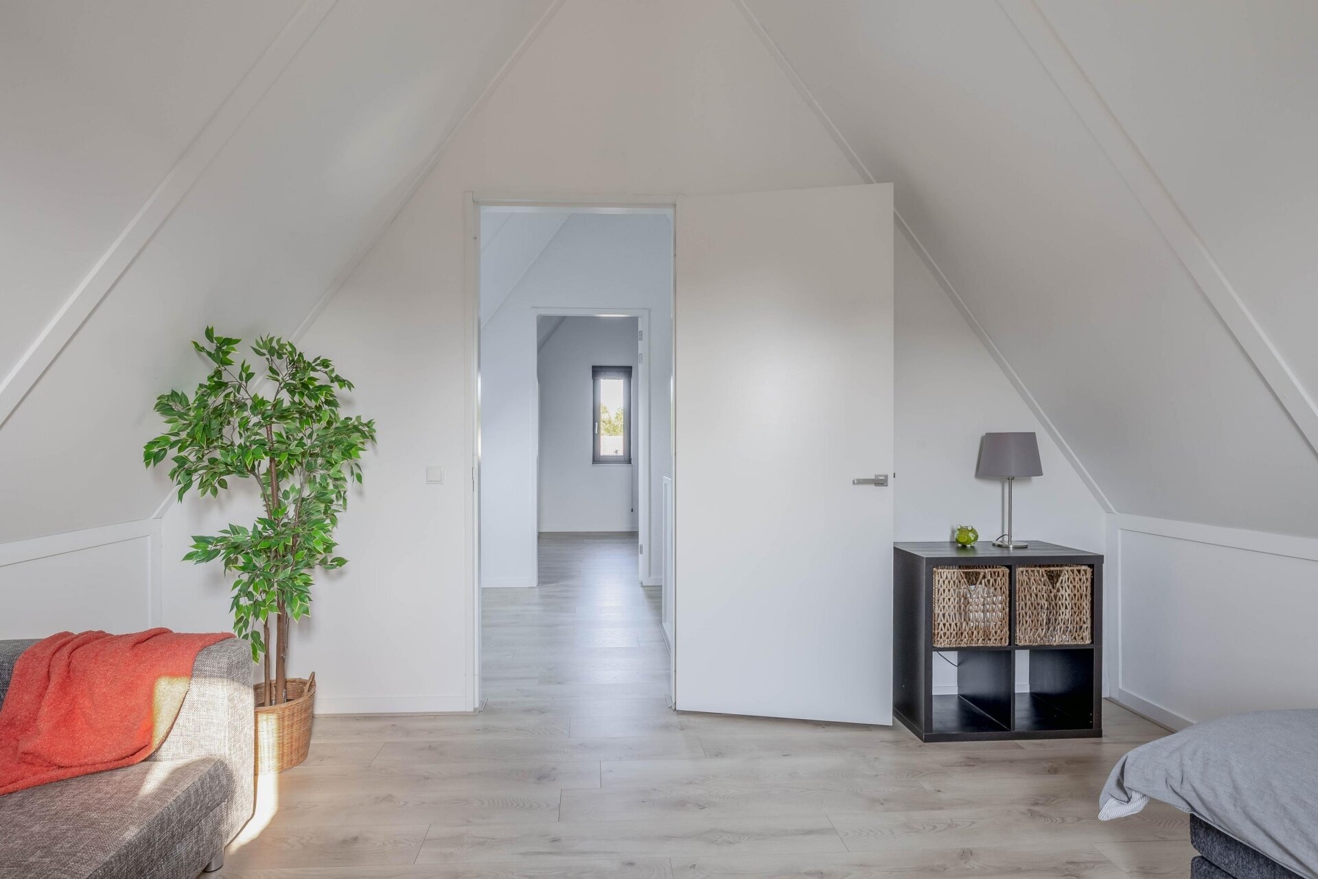 Op de tweede verdieping bevindt zich één volwaardige slaapkamer. De tweede kamer op deze verdieping is ingericht als technische ruimte met de opstelling voor de wasmachine, de warmtepomp, het WTW-systeem en de omvormer van de zonnepanelen. Er zijn geen dakkapellen aanwezig, maar de rechte gevels en goede plafondhoogte zorgen voor voldoende ruimte en lichtinval.