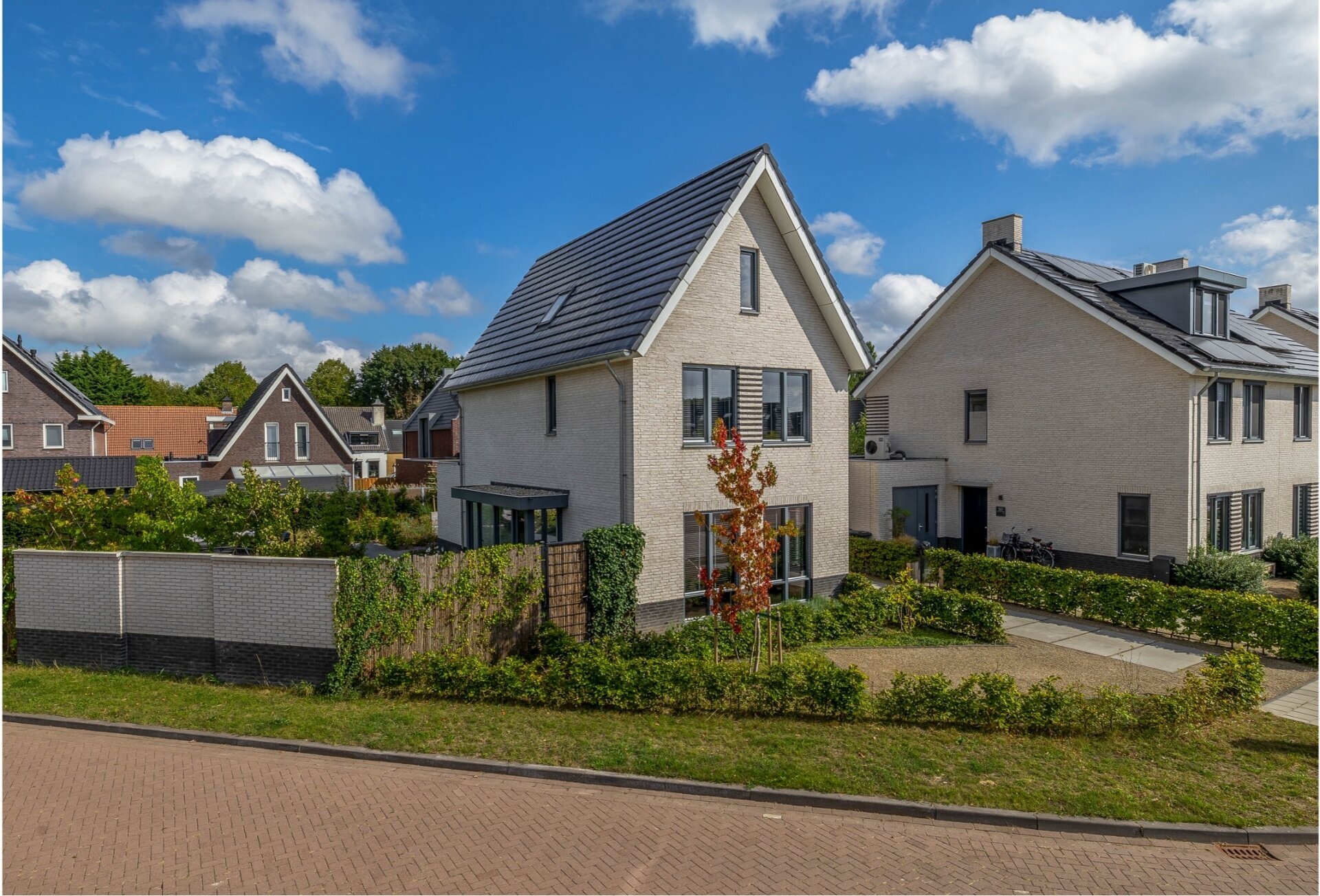 De gevels zijn fris wit gemetseld, wat mooi contrasteert met het zwarte pannendak en de donkere kozijnen. De ligging aan een rustige straat in een kindvriendelijke woonwijk maakt dit huis bijzonder aantrekkelijk voor doorstromers die meer ruimte én comfort zoeken.