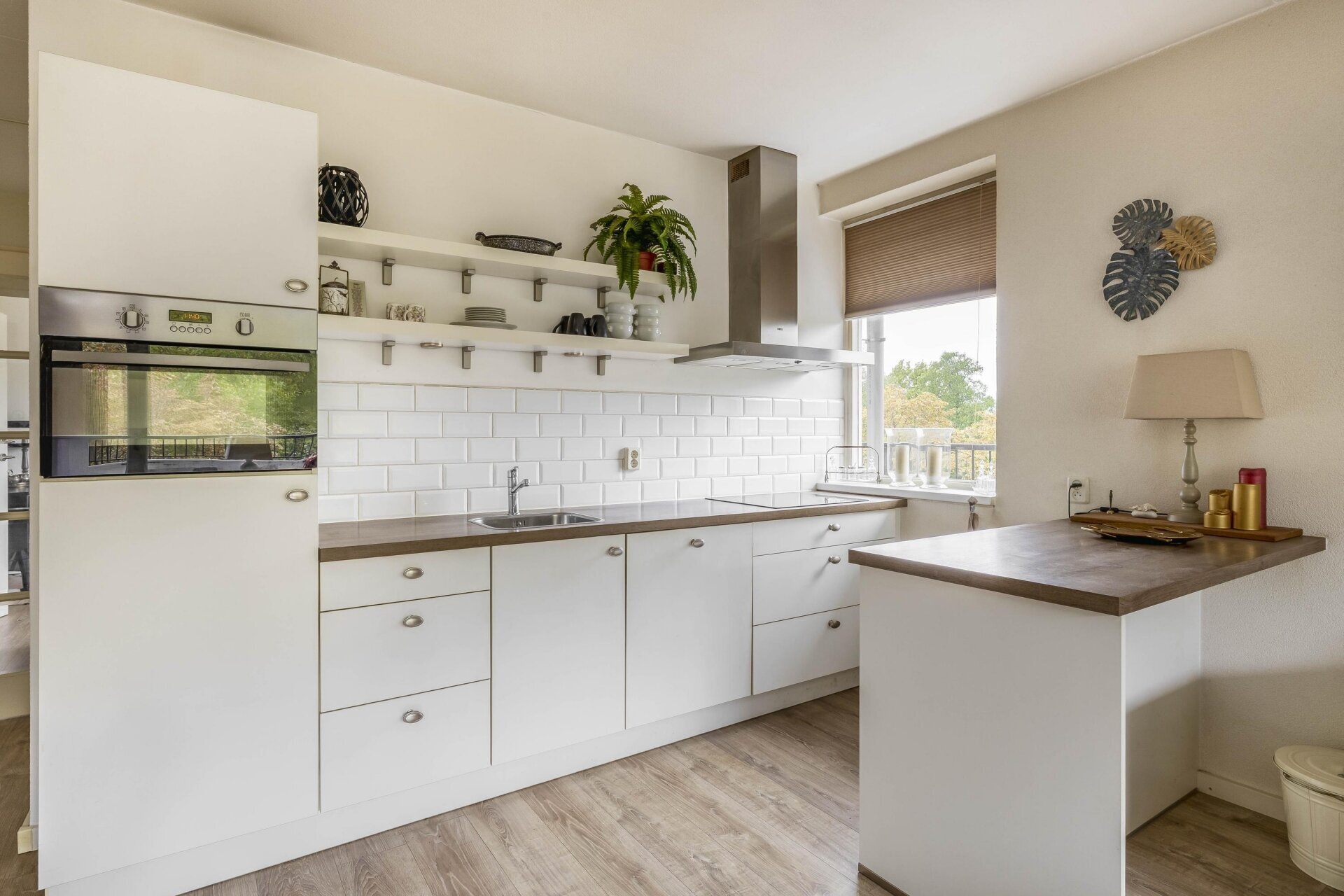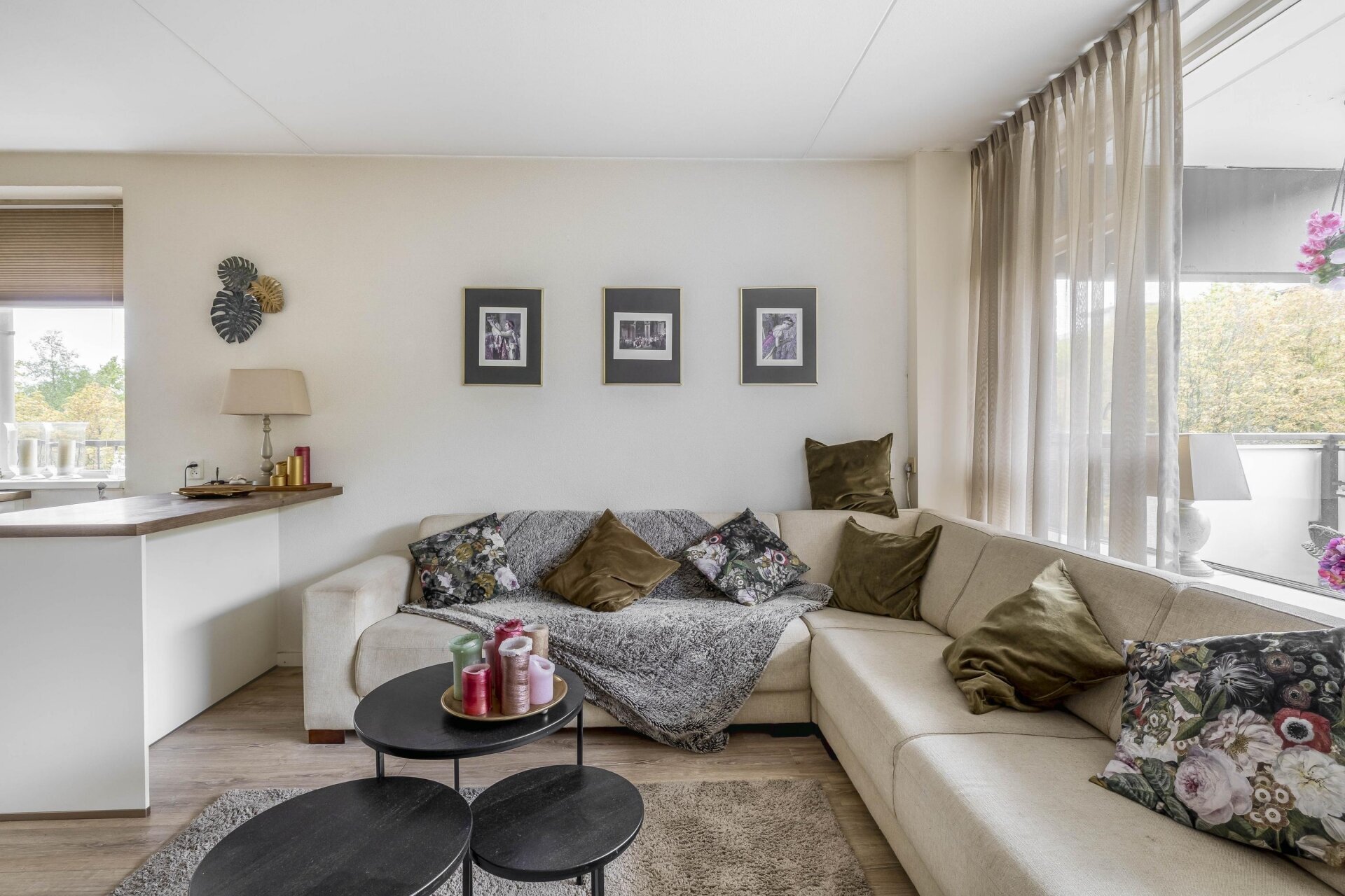 De woonkamer met open keuken voelt ruim en licht aan door de extra zijramen. Vanuit hier bereik je het royale balkon op het zuidoosten, dat dankzij de hoekligging is uitgebreid met een zijbalkon over de volledige lengte van het appartement – perfect voor zonliefhebbers!