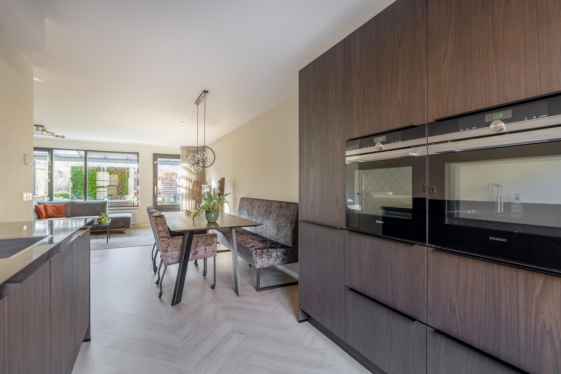 De keuken (vernieuwd in 2021) is uitgevoerd in een warme houttint met zwart werkblad en beschikt over alle wenselijke (Siemens) inbouwapparatuur en Quooker. De badkamer is vernieuwd in 2022 en straalt luxe uit, met een moderne wastafel, stijlvolle zwarte accenten, ligbad én inloopdouche.