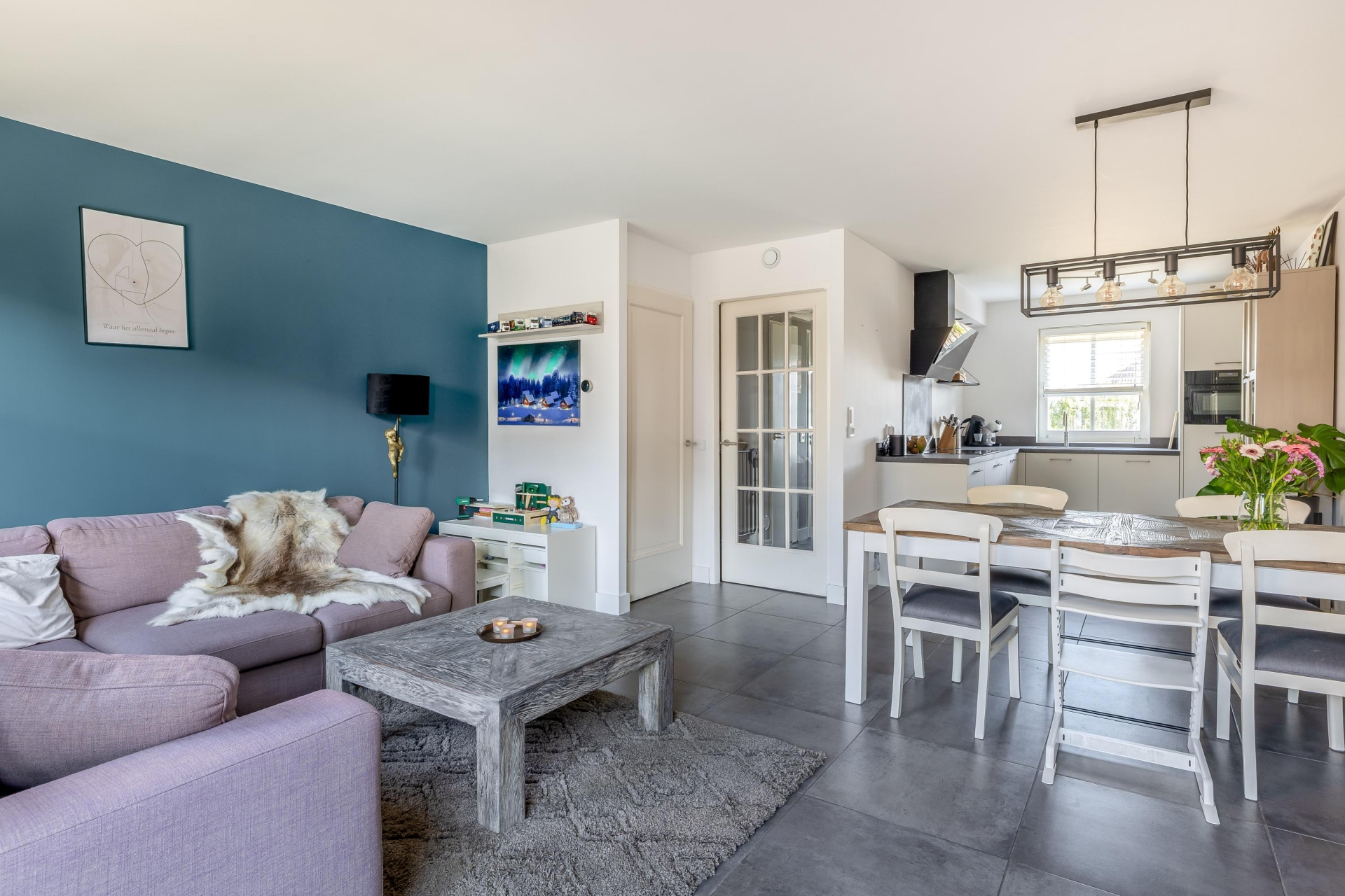 Bij binnenkomst valt meteen op hoe licht de leefruimte is. De woonkamer is tuingericht en dankzij de grote raampartijen en openslaande deur naar de tuin komt het daglicht hier rijkelijk naar binnen. Er is volop ruimte voor een comfortabele zithoek en een gezellige eethoek. De afwerking is strak en neutraal, waardoor je hier eenvoudig je eigen sfeer aan kunt geven. Aan de voorzijde bevindt zich de keuken. Deze is praktisch ingericht met voldoende werk- en bergruimte en voorzien van diverse inbouwapparatuur. Vanuit het raam kijk je vrij de straat in, wat zorgt voor een prettige verbinding met buiten, en je eigen oprit.