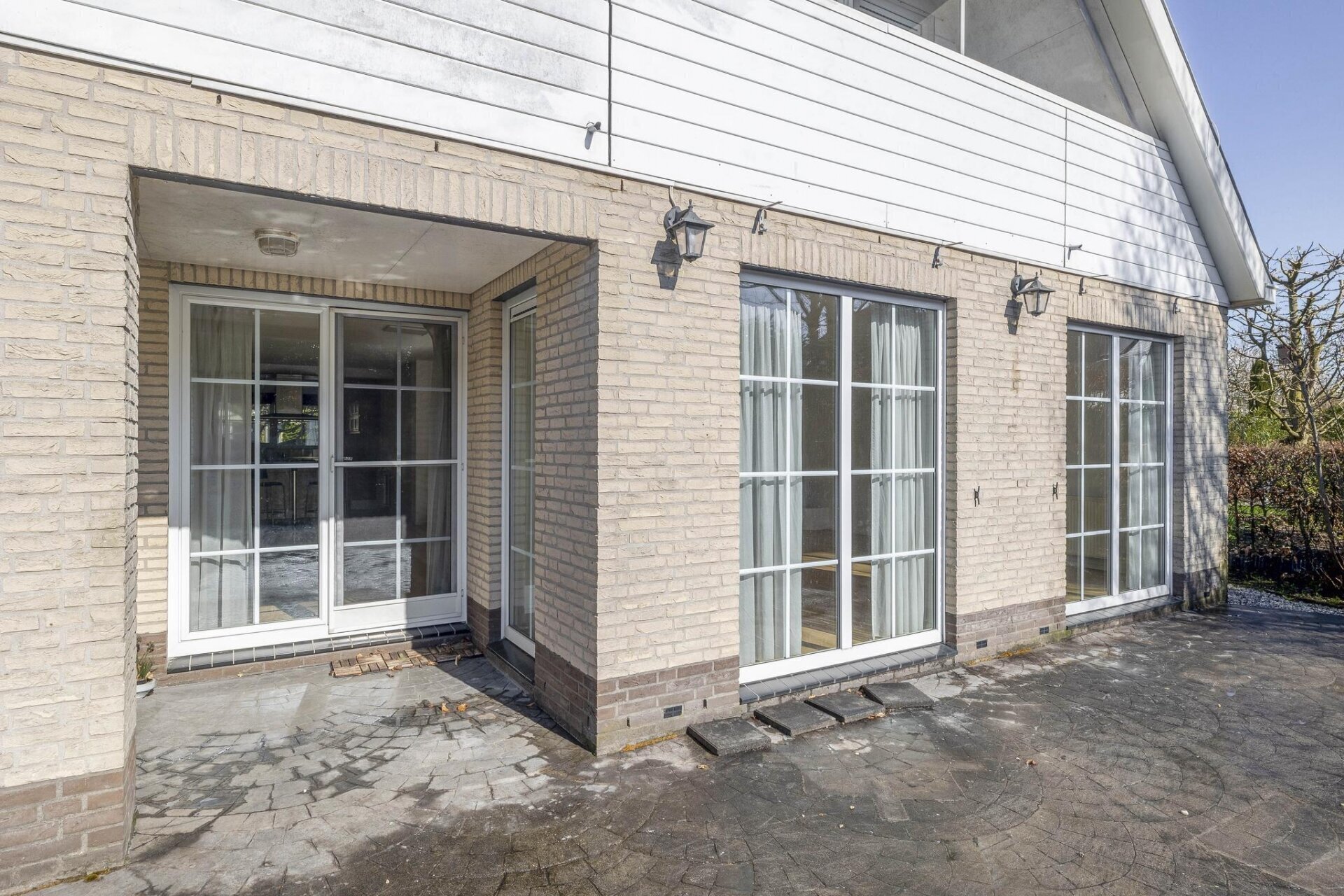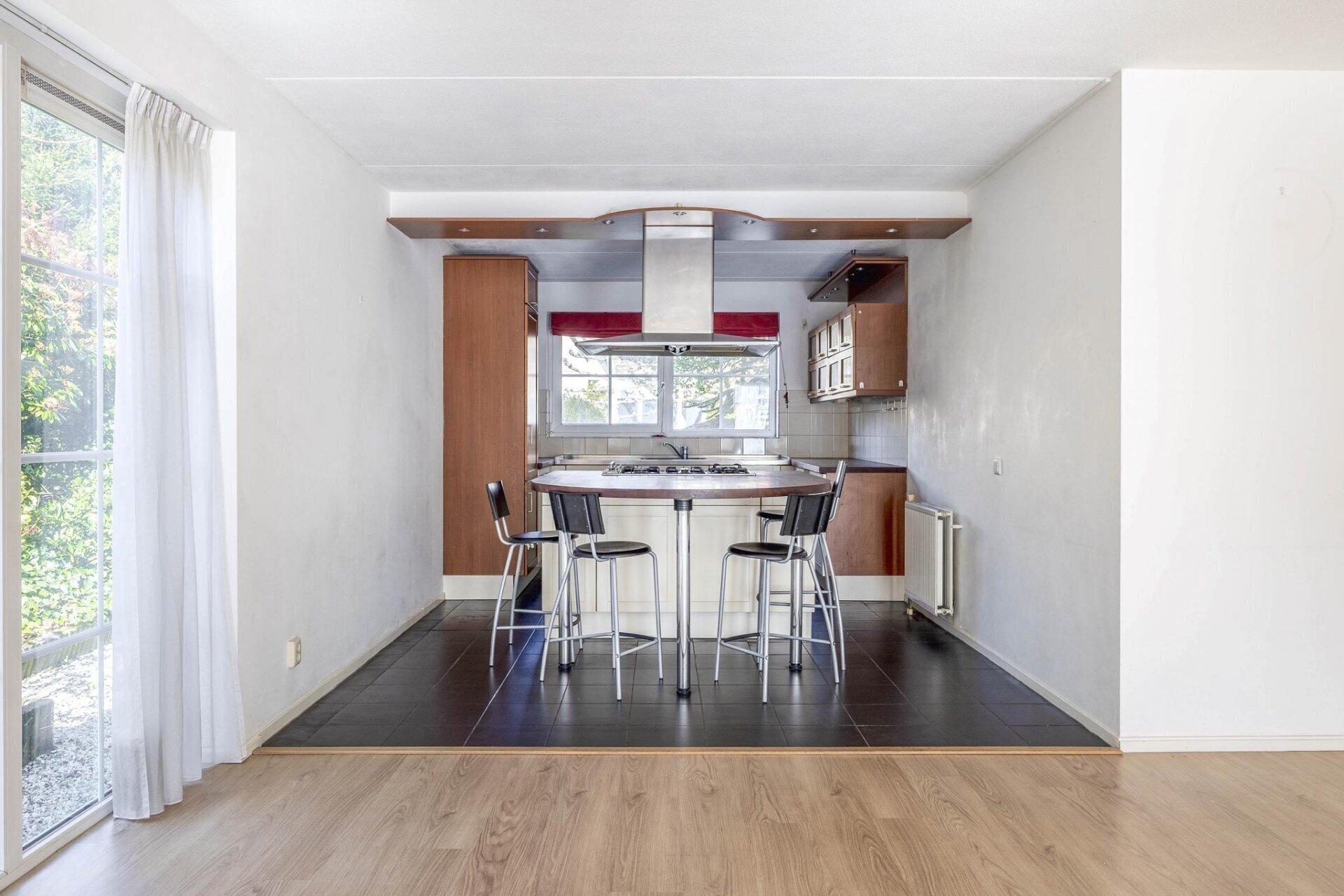 De woning beschikt over 151 m² woonoppervlakte, die verdeeld is over 2 woonlagen. Middels een overdekte entree is de woning toegankelijk. Vanuit de hal is er toegang tot de woonkamer, het toilet, de meterkast en de inpandige garage. De garage heeft een oppervlakte van 18 m² en beschikt over een elektrische garagedeur, een wasmachineaansluiting, een pomp voor de vloerverwarming, een deur die naar de zijtuin leidt en een luik naar de kelder. De woonkamer is aan de achterzijde gesitueerd en biedt door middel van de grote raampartijen een fraai uitzicht over de tuin. Tevens is er nog een sfeervolle open haard aanwezig. De open keuken bevindt zich aan de voorzijde en beschikt over een kookeiland en een gezellige bar. De keuken is voorzien van diverse inbouwapparatuur.