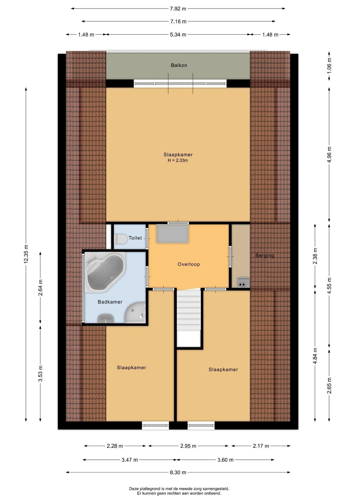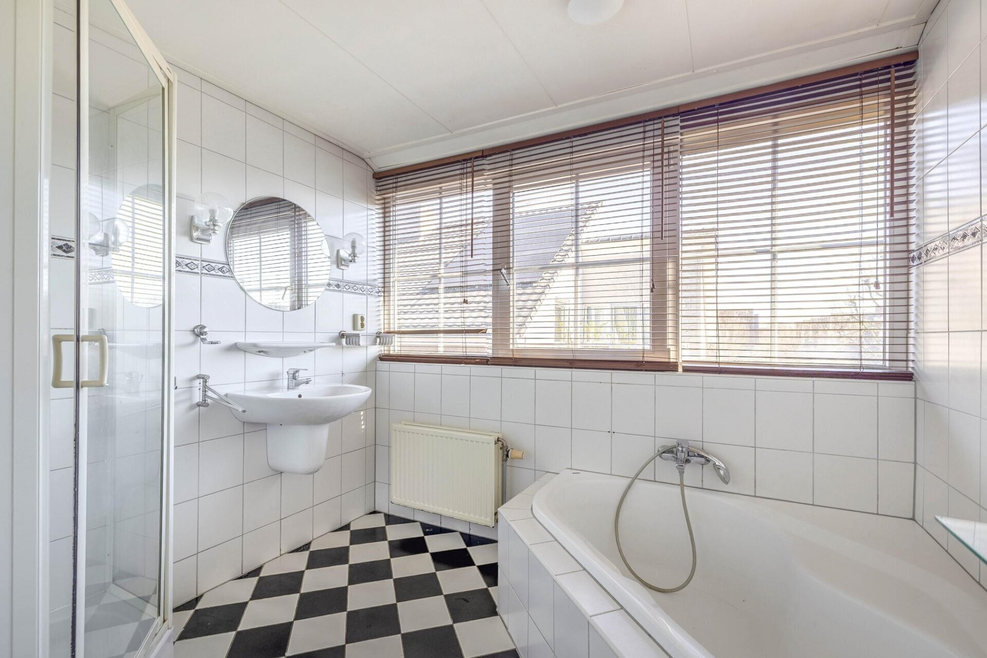 Middels een trap vanuit de hal is de verdieping toegankelijk. Hier tref je 3 slaapkamers met een oppervlakte van 12, 15 en 35 m². De hoofdslaapkamer is gelegen aan de achterzijde en biedt toegang tot een overdekt balkon. Dit balkon is gesitueerd aan de achterzijde en ligt op het zuidoosten. De badkamer is volledig betegeld en beschikt over een hoekbad, een douchecabine en een wastafel. Het toilet is separaat en is vanuit de overloop toegankelijk. Tevens is er nog een inpandige berging waar zich de cv-installatie (2023) bevindt. Er is geen gebrek aan bergruimte. Vanaf de overloop is er via een vlizotrap toegang tot de bergvliering. Deze ligt over de hele lengte van de woning waardoor je nooit bergruimte tekort zult komen.