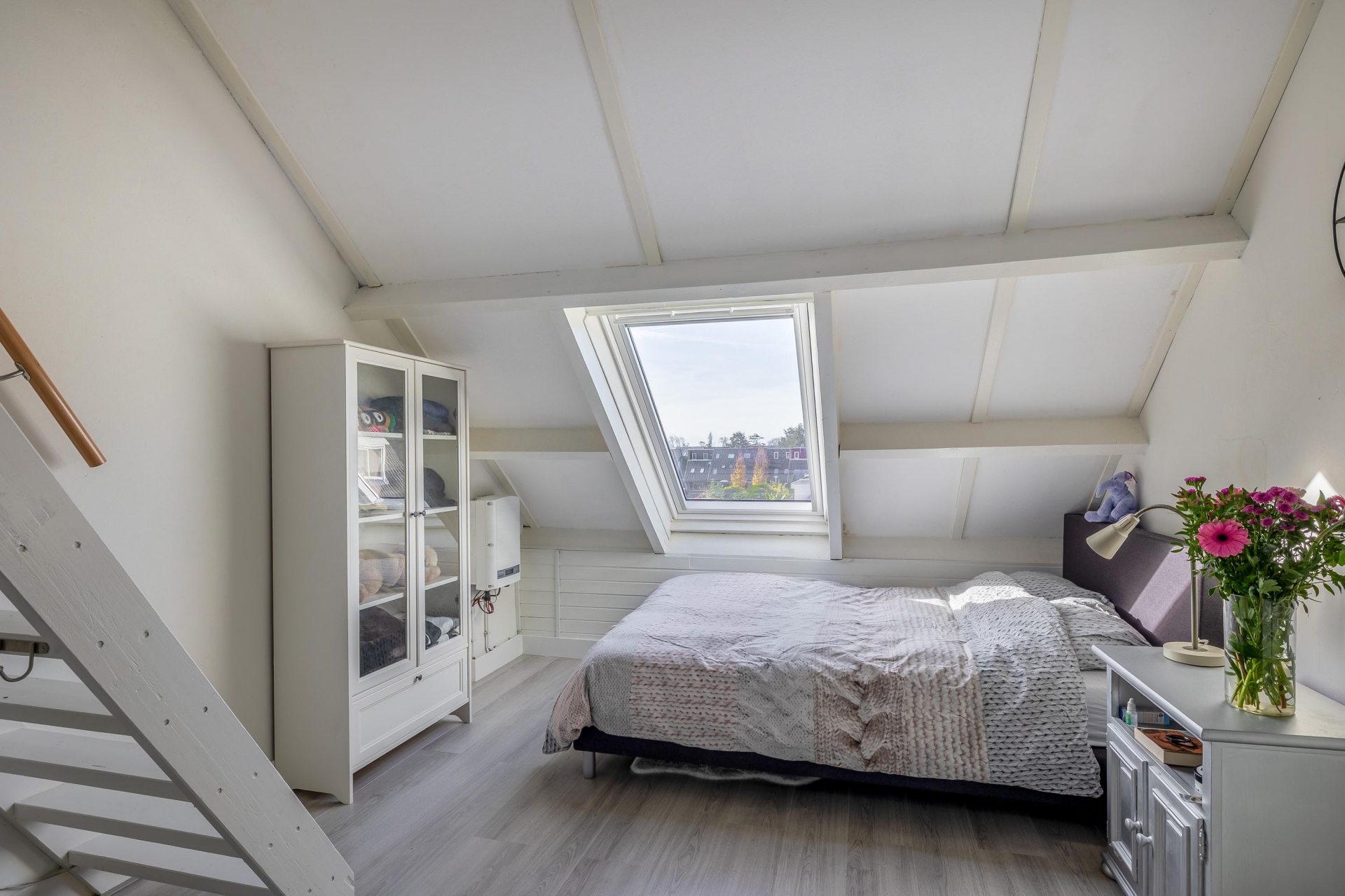 Overloop met toegang tot de vierde slaapkamer met dakvenster en de vijfde slaapkamer, eveneens voorzien van 2 dakvensters. Vanuit deze kamer is er toegang tot de vide en de ruime bergzolder, bereikbaar via een vaste trap.