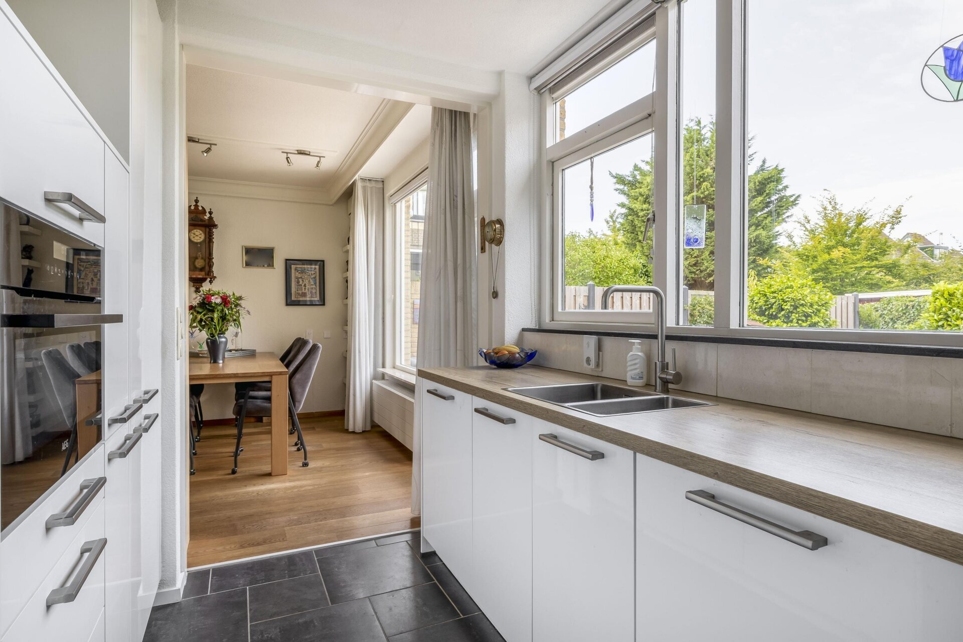 De woonkamer is verrassend ruim en licht dankzij de ligging en grote ramen. Vanuit de zithoek heb je een mooi uitzicht over de rustige wijk. De allesbrander maakt de woonkamer nog extra sfeervol. De eethoek sluit direct aan op de halfopen keuken, waardoor je altijd in contact blijft met je gezelschap. De moderne keuken is vernieuwd in 2021 en is praktisch ingedeeld, voorzien van alle benodigde inbouwapparatuur en van veel opbergruimte, zodat koken hier een plezier is.