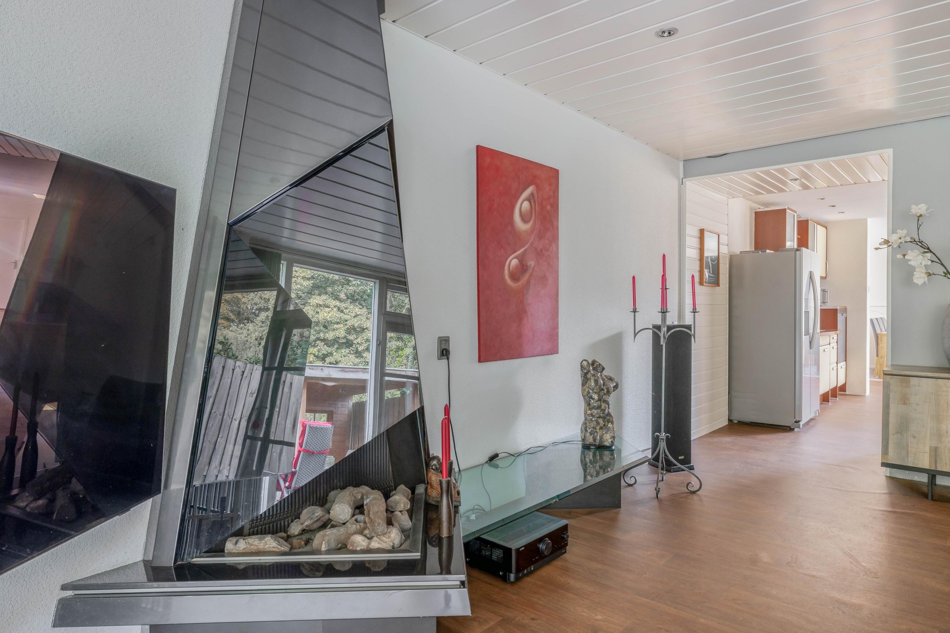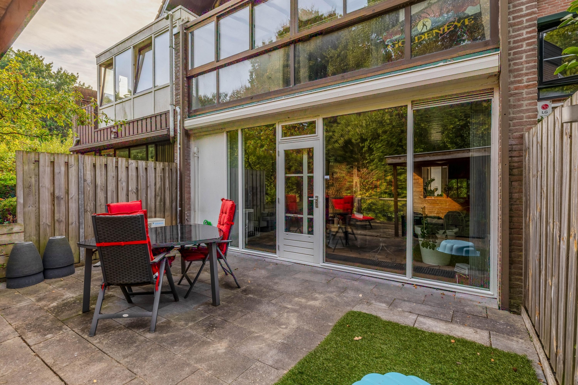 Achter de woning is een heerlijke tuin te vinden, welke op het oosten gesitueerd is. De tuin is gelegen aan het water en biedt een waanzinnig uitzicht over het Schollebos. Hierdoor heb je een ultiem vakantiegevoel het hele jaar door. Door de houten overkapping kan er ook met minder weer van de tuin genoten worden. Via een voetpad sta je binnen 2 minuten in het Schollebos. Hier kan je heerlijk genieten van de natuur en alle rust. Het Schollebos is een prachtig stadsbos dat bekend staat om zijn recreatiemogelijkheden, zoals wandelen, fietsen en picknicken, met diverse paden die door het groene landschap slingeren.
