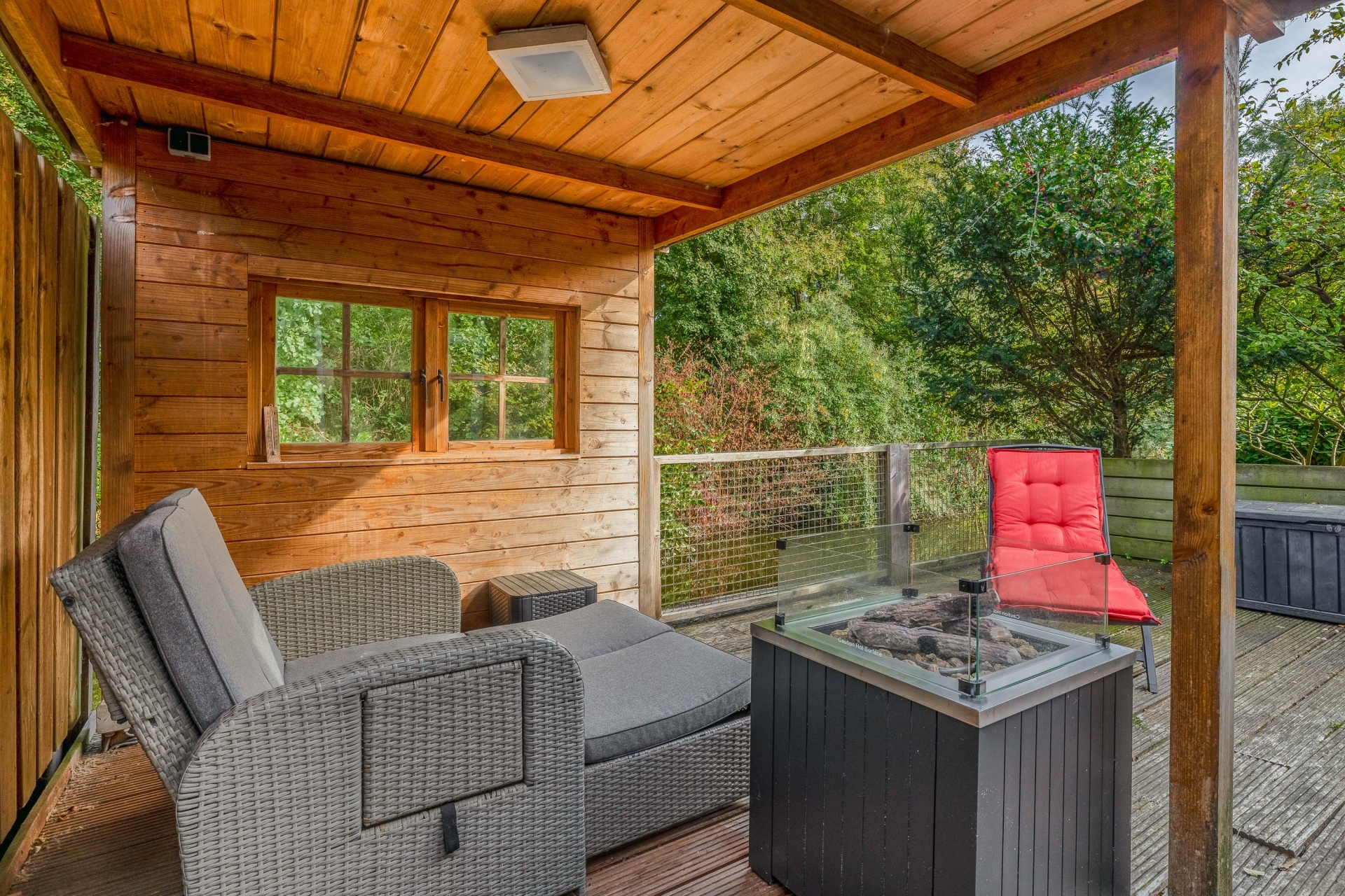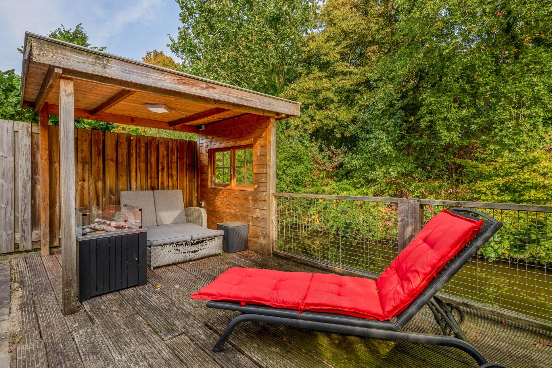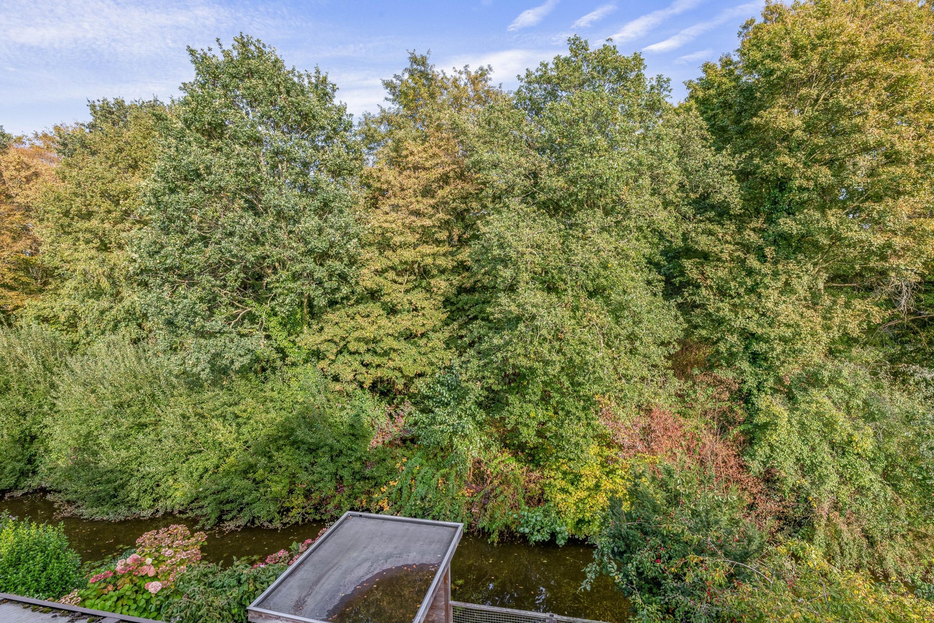 Achter de woning is een heerlijke tuin te vinden, welke op het oosten gesitueerd is. De tuin is gelegen aan het water en biedt een waanzinnig uitzicht over het Schollebos. Hierdoor heb je een ultiem vakantiegevoel het hele jaar door. Door de houten overkapping kan er ook met minder weer van de tuin genoten worden. Via een voetpad sta je binnen 2 minuten in het Schollebos. Hier kan je heerlijk genieten van de natuur en alle rust. Het Schollebos is een prachtig stadsbos dat bekend staat om zijn recreatiemogelijkheden, zoals wandelen, fietsen en picknicken, met diverse paden die door het groene landschap slingeren.