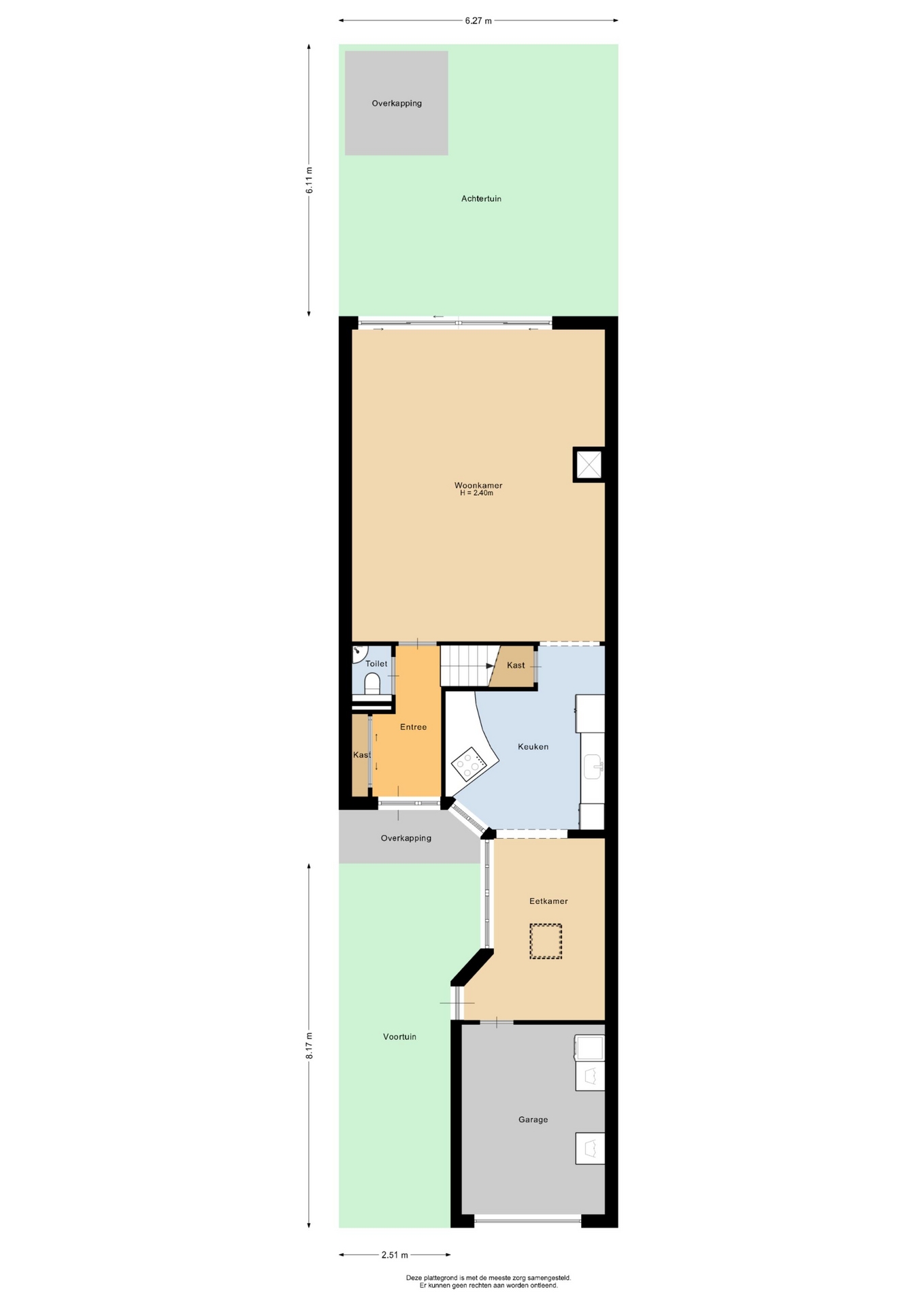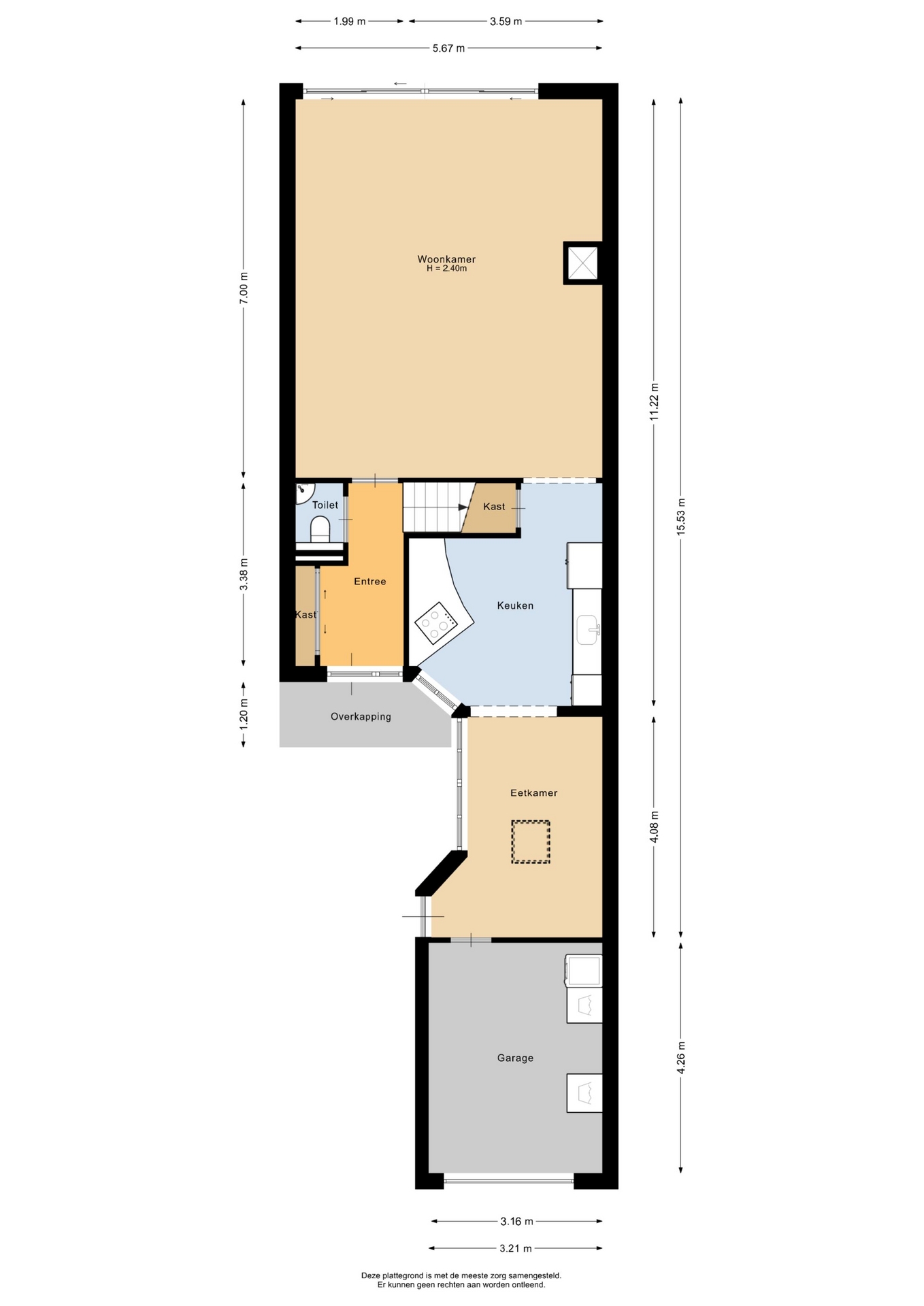- Aangebouwde garage met een oppervlakte van 14 m²;