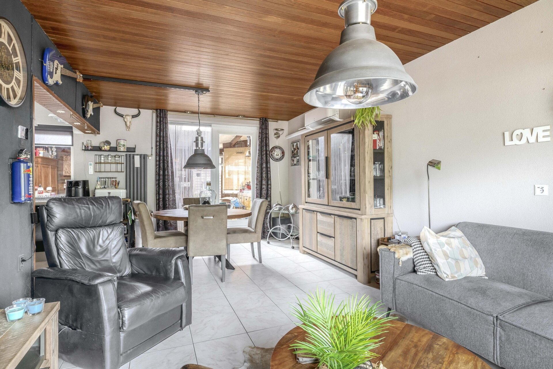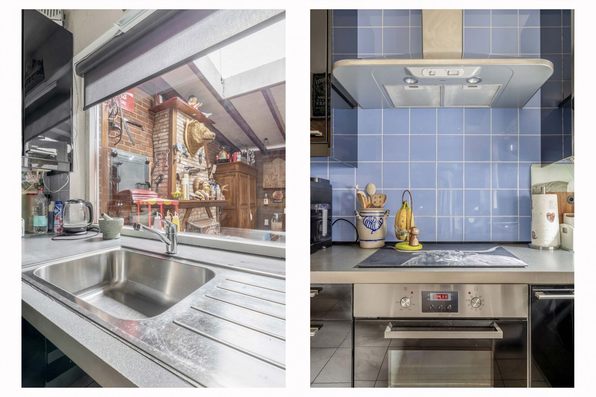 Je komt binnen in een nette hal met meterkast (inclusief krachtstroom), toilet met fonteintje en trapopgang. De woonkamer is ruim, licht en afgewerkt met plavuizen en airco. Vanuit hier loop je door naar de halfopen keuken, die is uitgerust met een inductiekookplaat, afzuigkap, vaatwasser, koel-vriescombinatie en openslaande deuren naar de serre. De keukenopstelling is praktisch en sluit goed aan op het dagelijks gebruik. De serre is een verlengstuk van de woning: voorzien van een sfeervolle sierhaard en allesbrander, waardoor je hier zelfs op koudere dagen comfortabel zit. Een heerlijke plek voor een ontbijtje in het zonnetje of een borrel met vrienden.