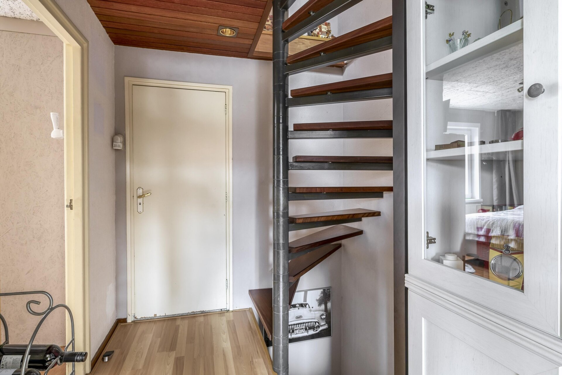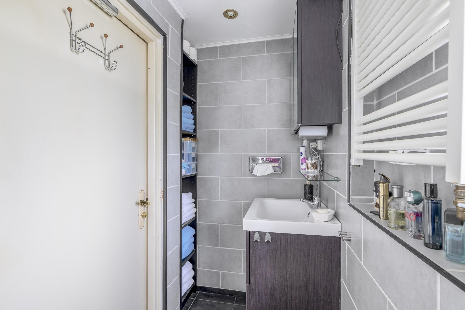 Op de eerste verdieping vind je twee slaapkamers, waarvan één met schuifkastenwand. Daarnaast is er een voorraadkast en een nette badkamer met wastafel, douche en een sanibroyeur-toilet. Op zolder vind je de voorzolder met wasmachineaansluiting en een derde slaapkamer met dakraam en cv-ketel (circa 2010). Dankzij de vaste trap en goede lichtinval is dit een volwaardige verdieping die zich uitstekend leent voor logees, werkruimte of tienerkamer.