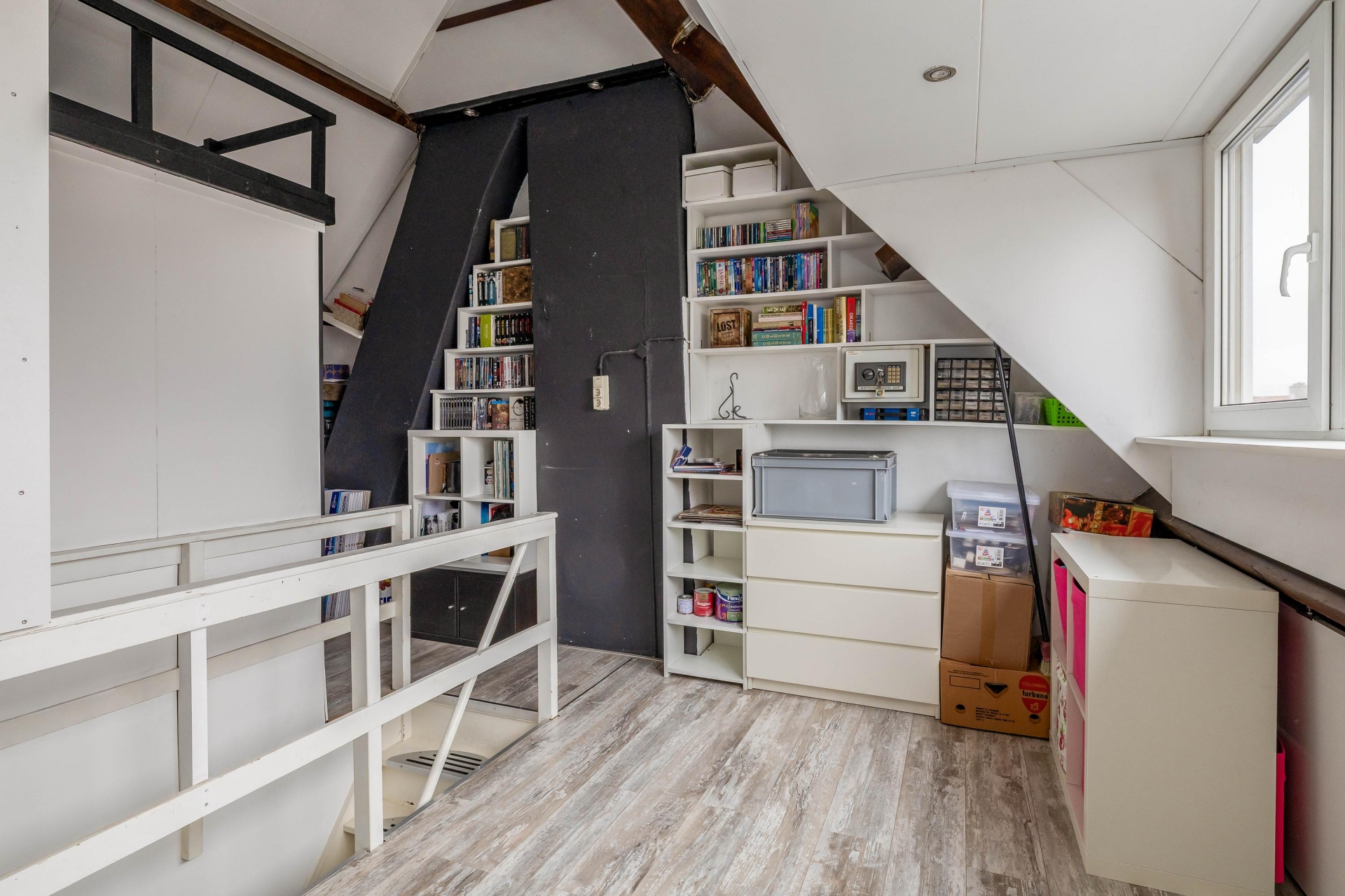 Via een vaste trap bereik je de zolderverdieping. Op deze derde woonlaag kun je nog een grote slaapkamer creëren en extra bergruimte onder de schuine kap. Deze verdieping biedt flexibiliteit: een rustige thuiswerkplek, hobbyruimte of juist een volwaardige derde slaapkamer.