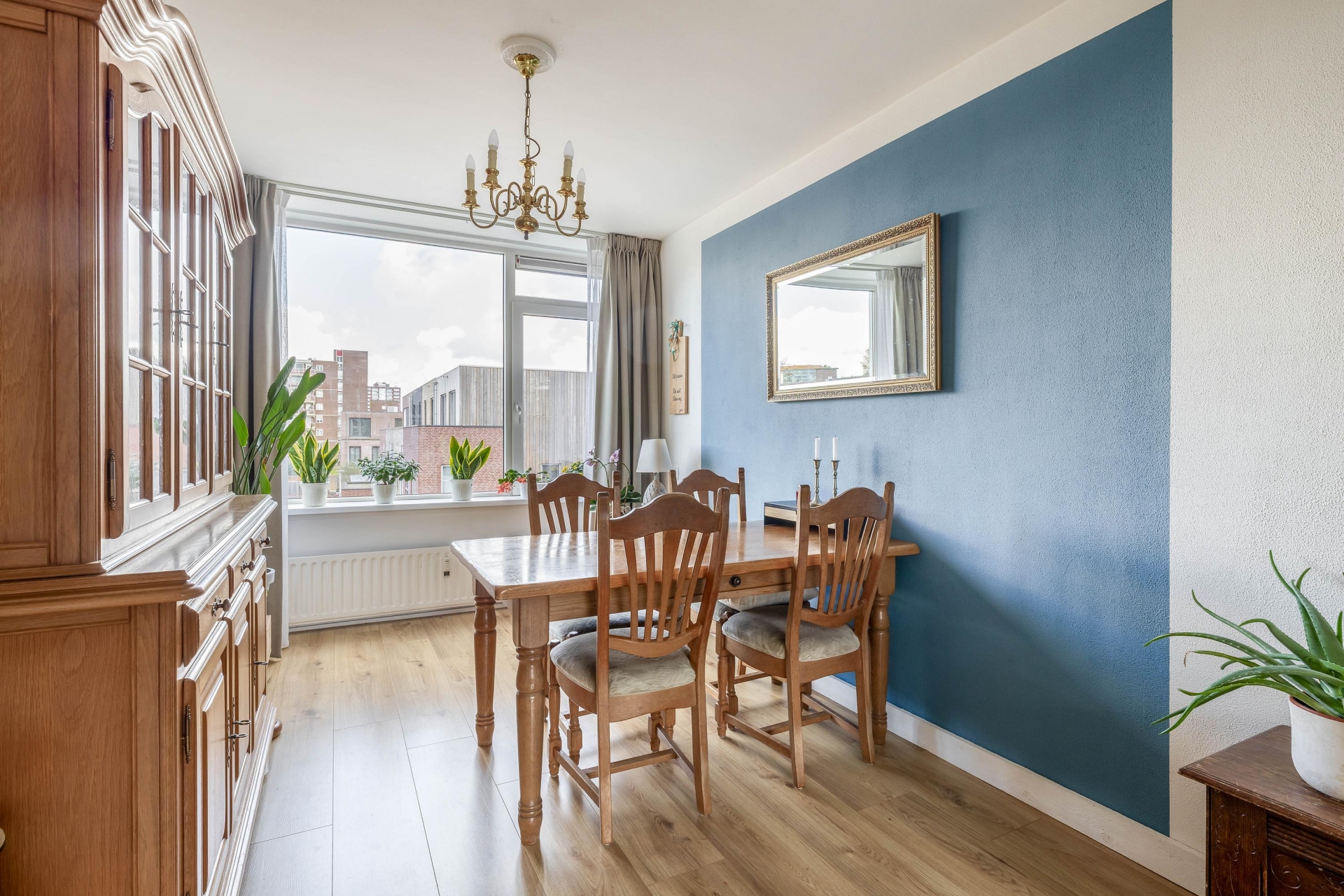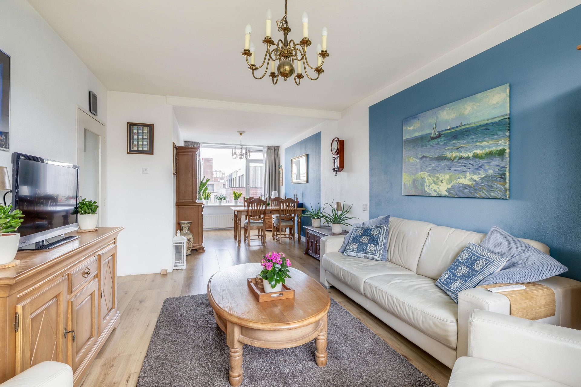 Bij binnenkomst valt direct de fijne lichtinval op. De woonkamer is netjes afgewerkt met een houten vloer en lichte wanden en biedt voldoende ruimte voor een comfortabele zithoek en een eettafel. De open indeling zorgt voor een prettige, ruimtelijke sfeer waarin je zowel kunt ontspannen als gezellig kunt samenkomen.