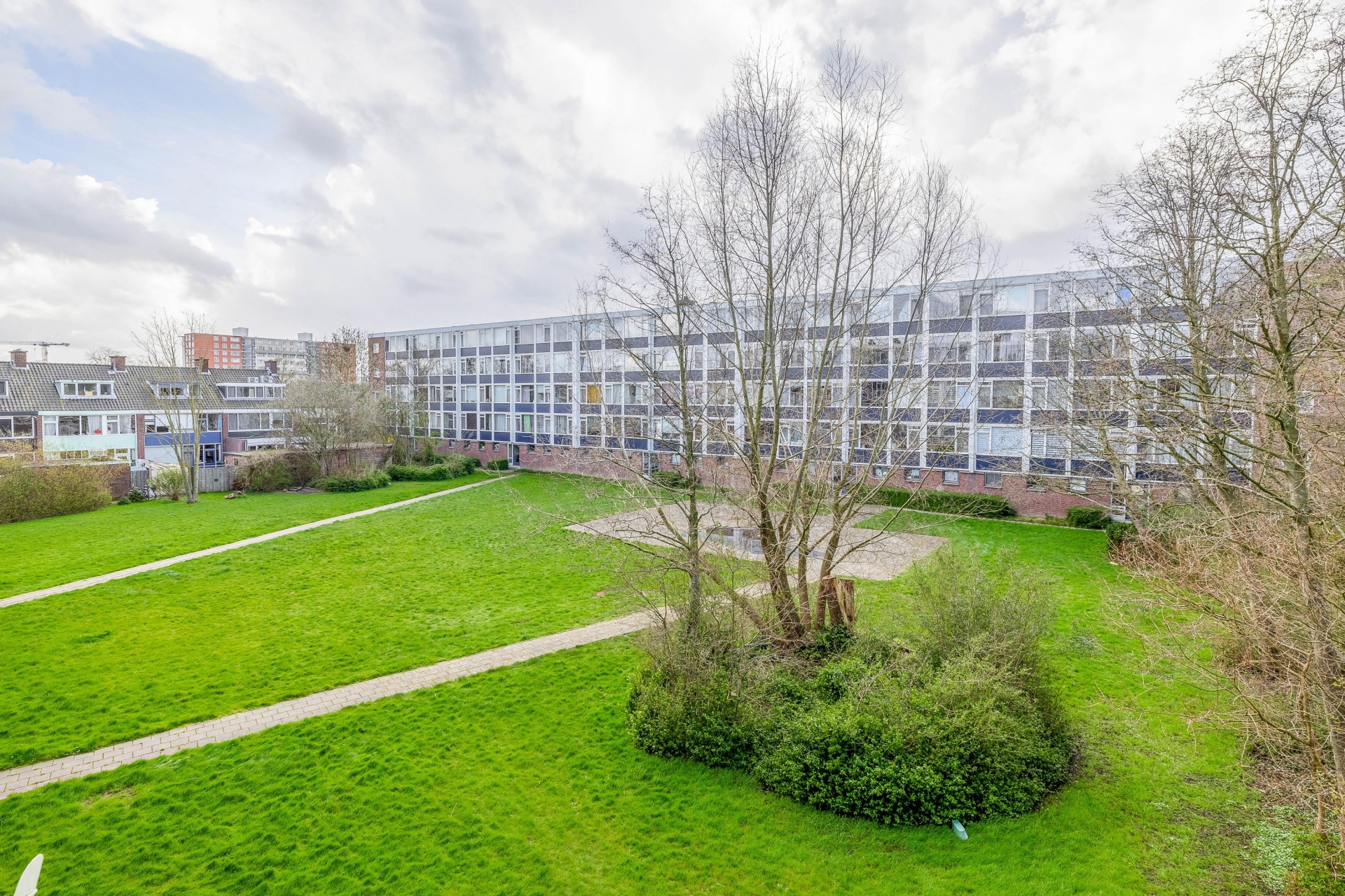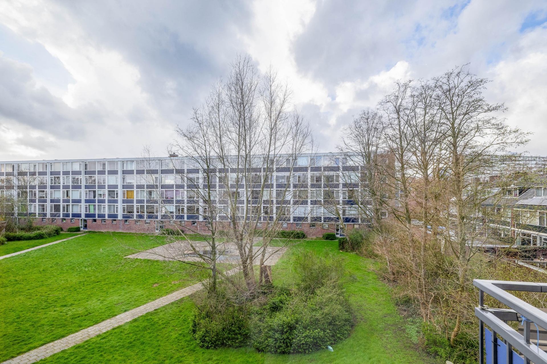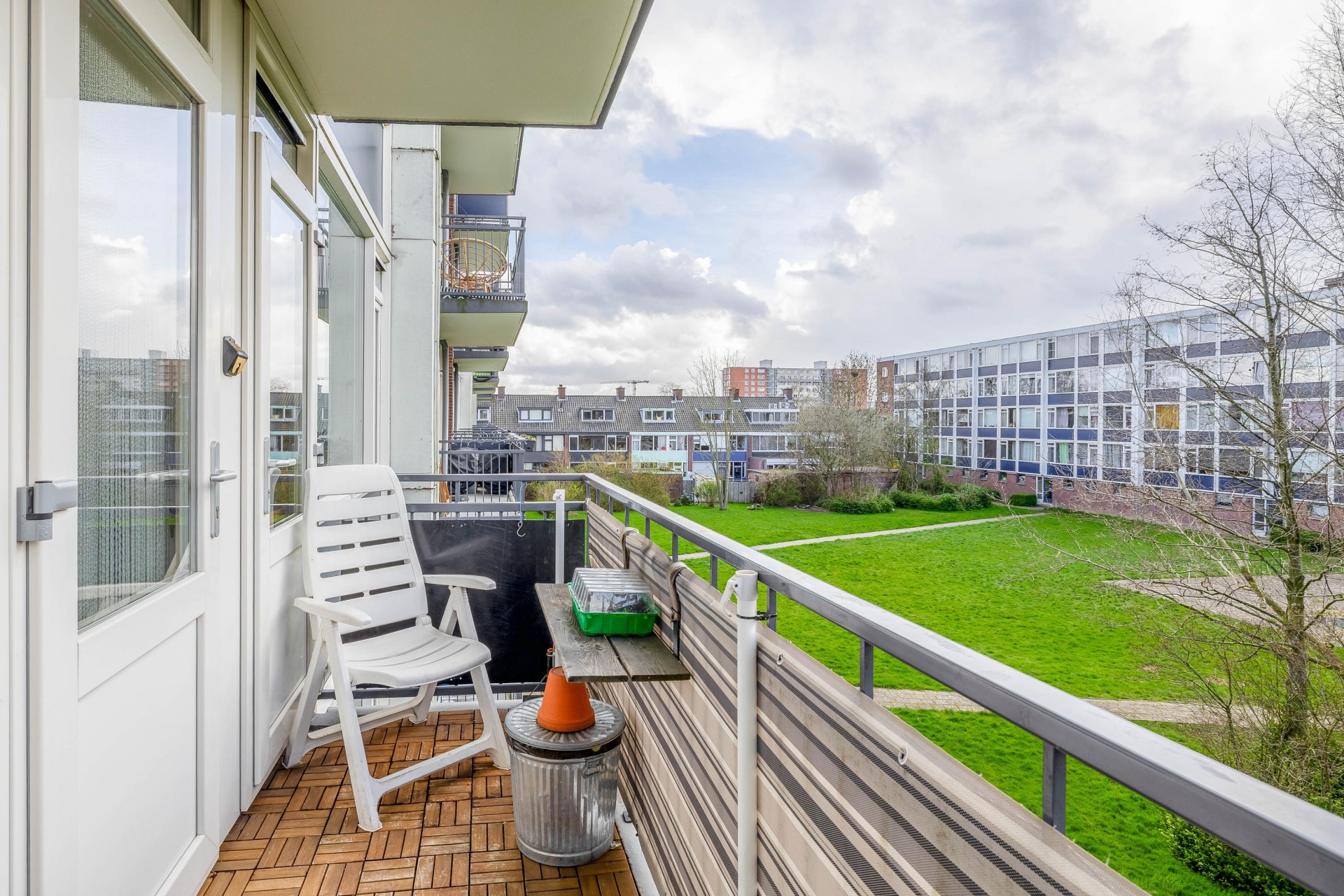 Het balkon op het zuidwesten is een fijne plek om te ontspannen. Hier geniet je vanaf de middag tot in de avond van de zon. Ideaal voor een kop koffie, een goed boek of een borrel na een lange dag. Het uitzicht op de groene binnentuin zorgt voor extra rust en privacy.