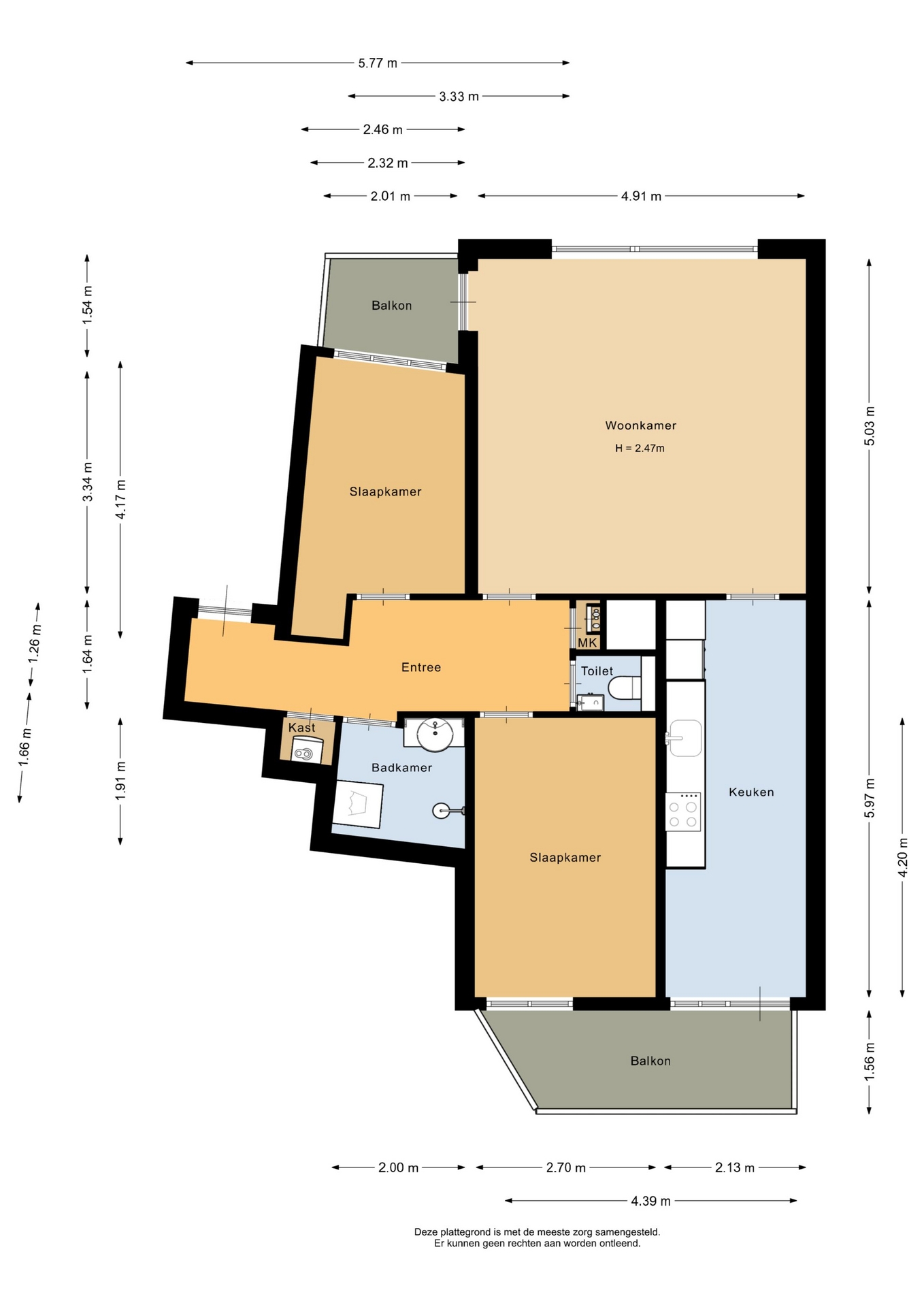 “Deze informatie is door ons met de nodige zorgvuldigheid samengesteld. Onzerzijds wordt echter geen enkele aansprakelijkheid aanvaard voor enige onvolledigheid, onjuistheid of anderszins, dan wel de gevolgen daarvan. Alle opgegeven maten en oppervlakten zijn indicatief.”