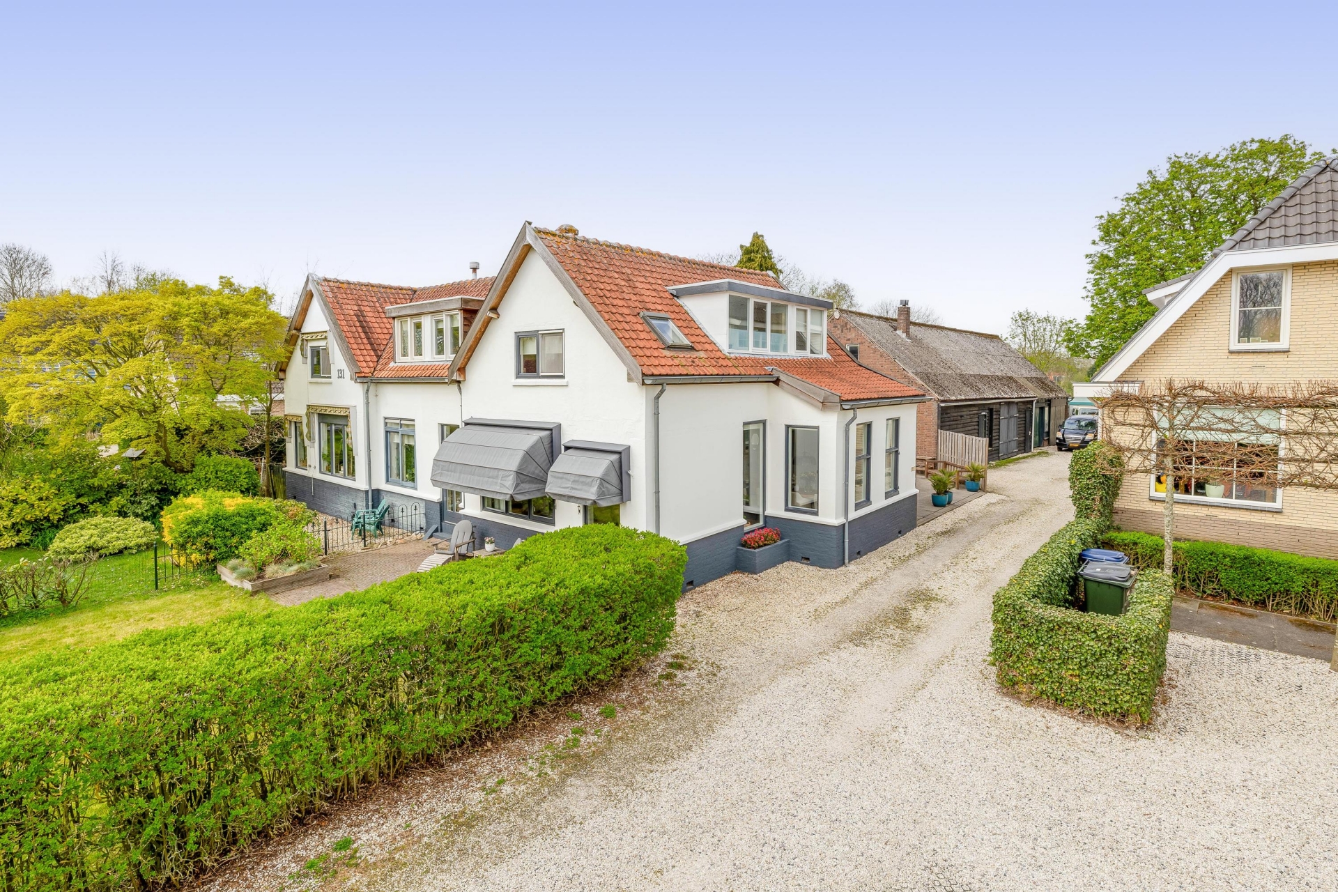 - Ruime oprit met parkeergelegenheid op eigen terrein en via een gezamenlijke oprit bereikbaar;
