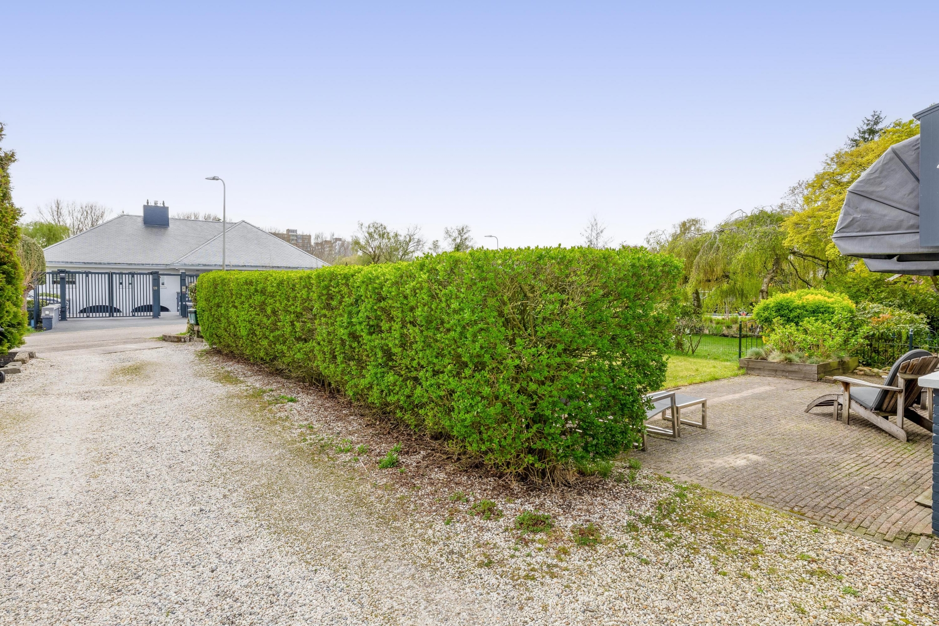 Het buitenleven is hier echt een verlengstuk van het huis. Zowel de voor- als achtertuin zijn ruim opgezet en bieden volop privacy. De ligging zorgt ervoor dat je op verschillende momenten van de dag een fijne plek in de zon of schaduw kunt vinden. Aan de voorzijde geniet je van de ochtendzon, terwijl de achtertuin zich perfect leent voor lange middagen en avonden buiten.