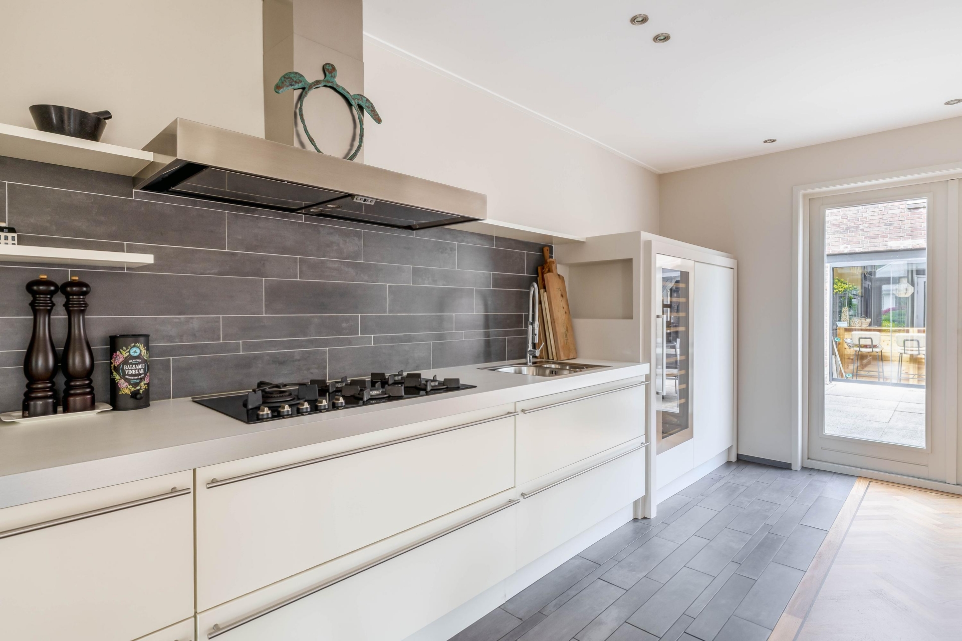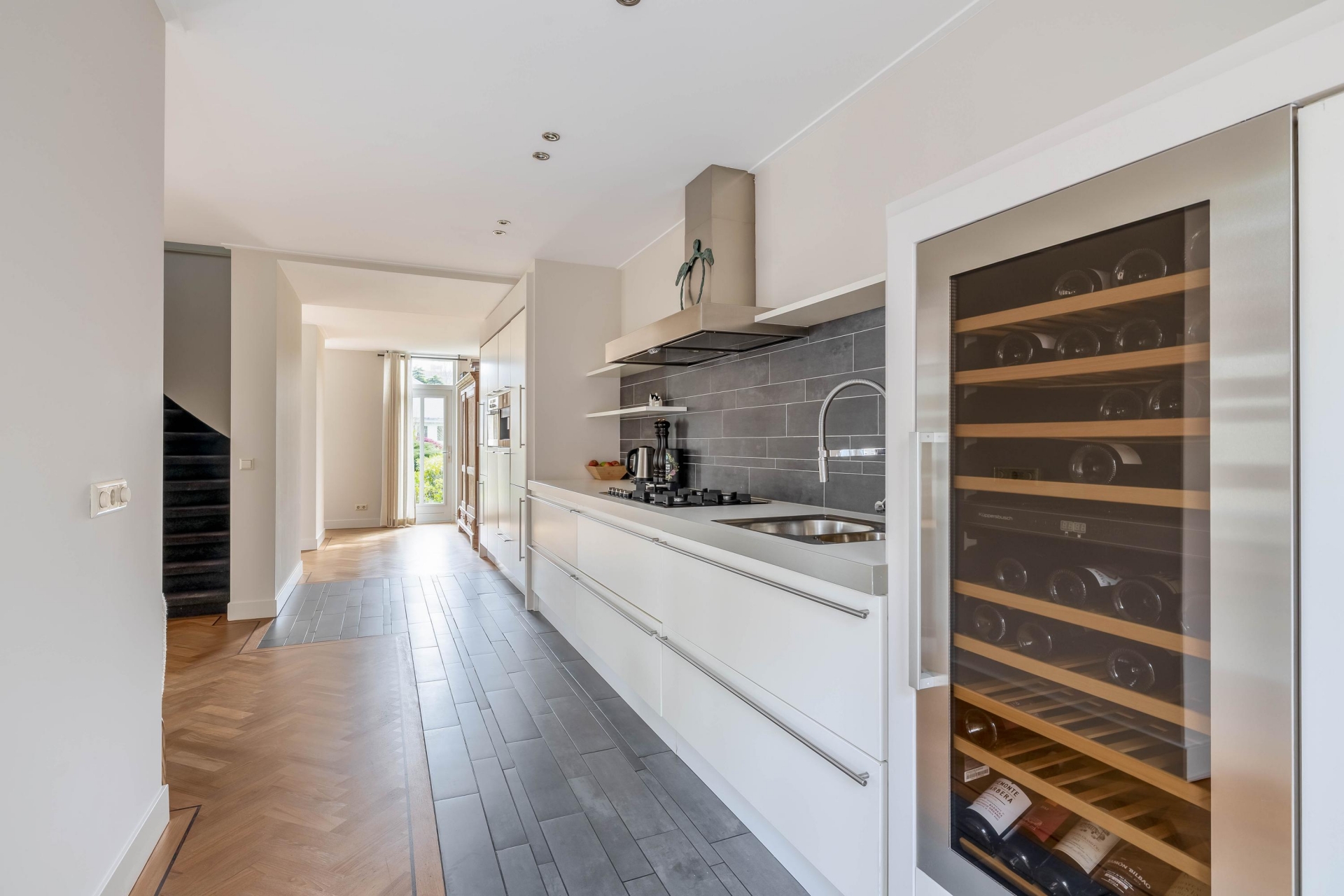- Moderne open keuken voorzien van o.a. wijnklimaatkast, inbouw koffiezetapparaat en combi-oven;