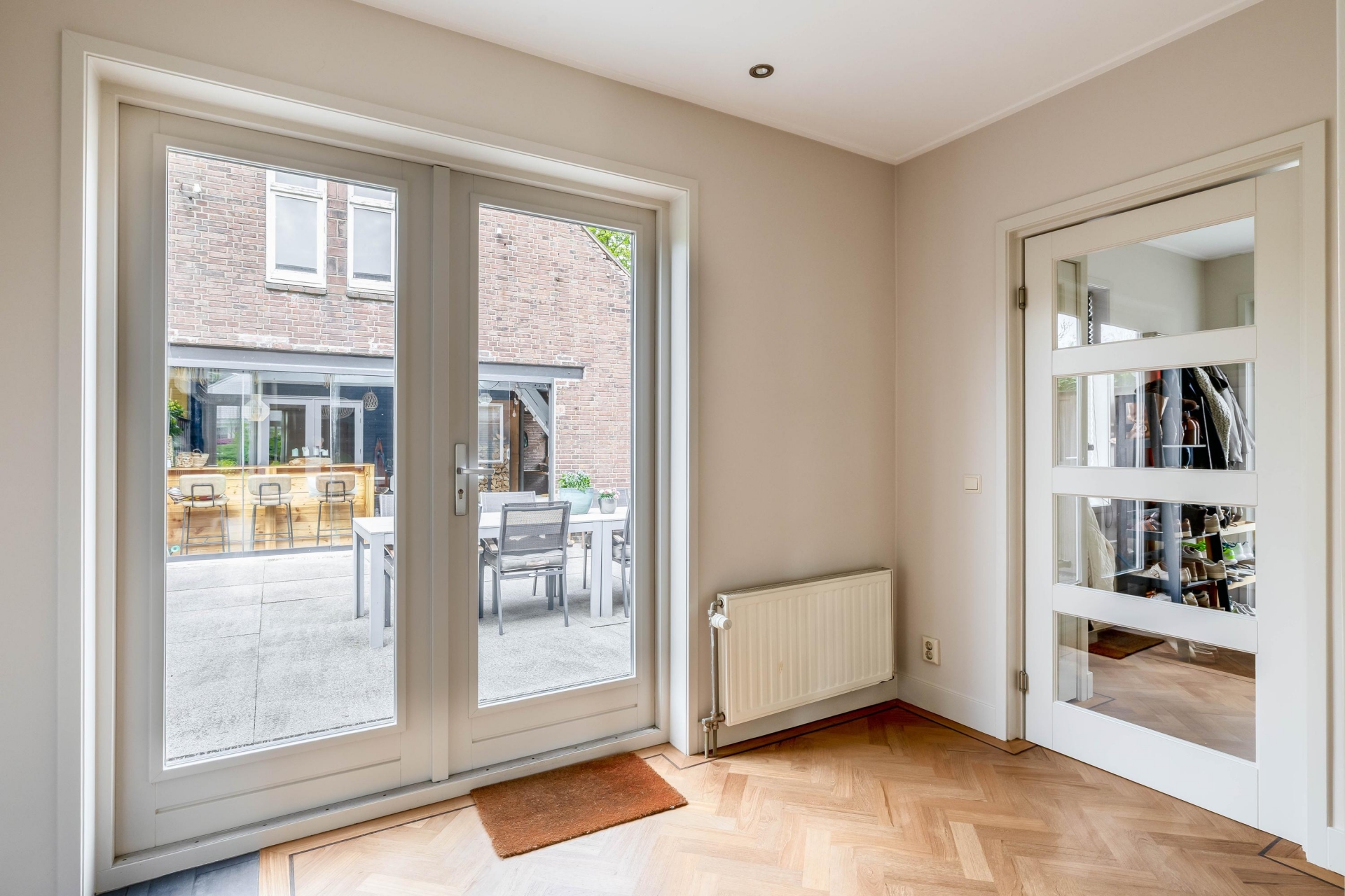 - Lichte living met grote raampartijen en prettig uitzicht op de tuin;