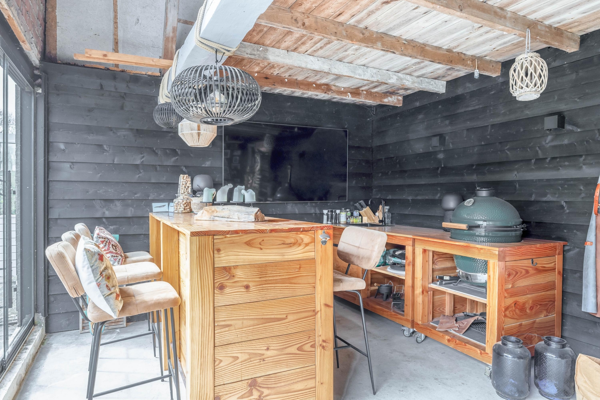 - Sfeervol tuinhuis/buitenverblijf met bar, glazen schuifdeuren, elektra en water – ideaal voor lange avonden en het hele jaar door te gebruiken;