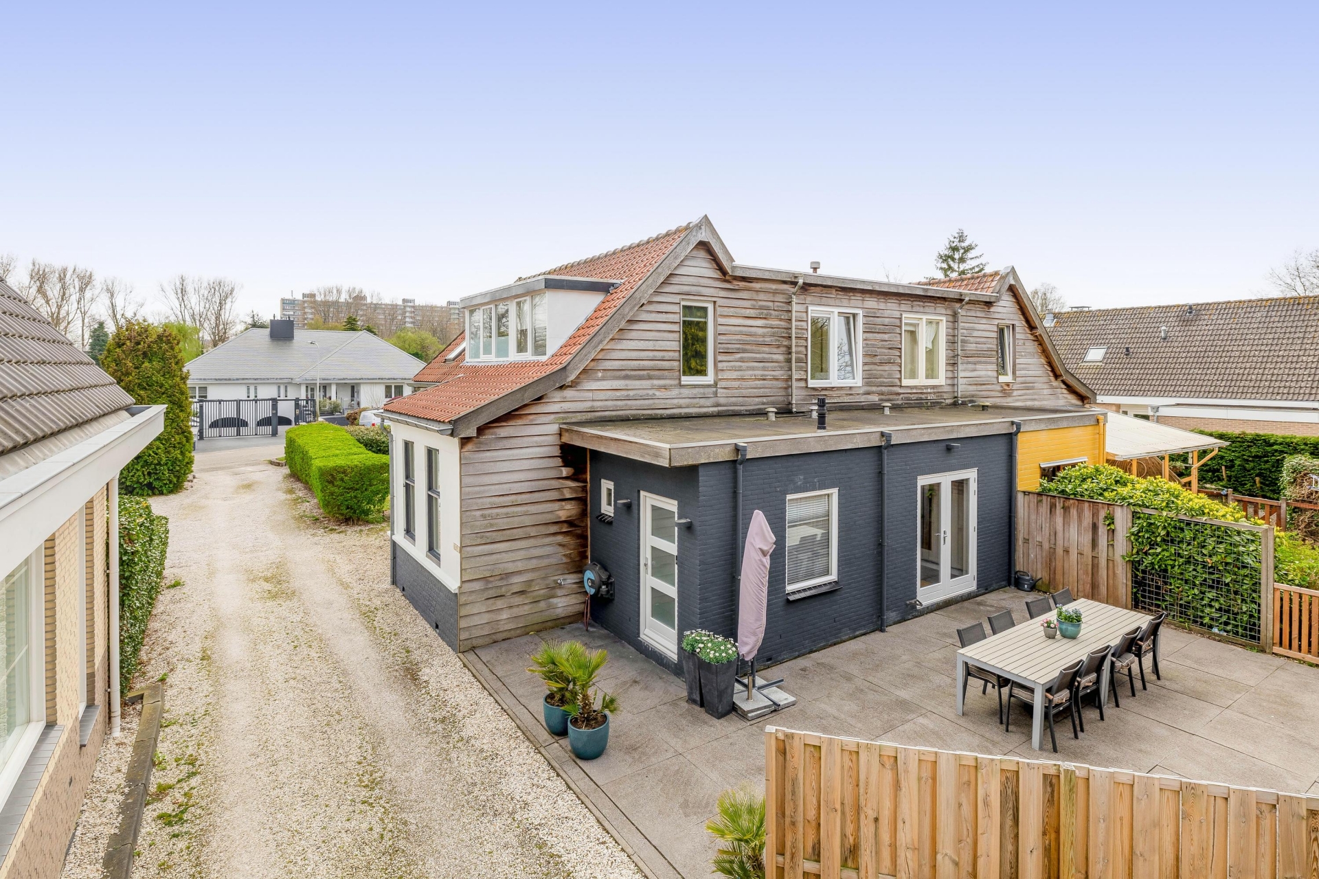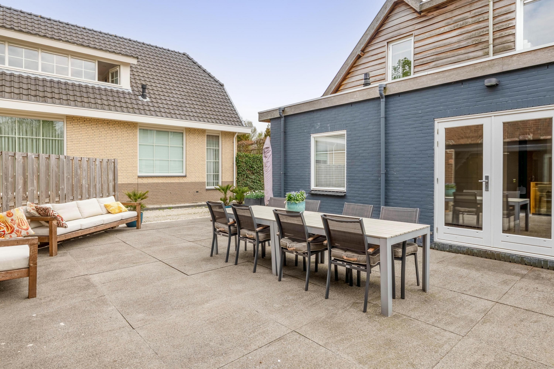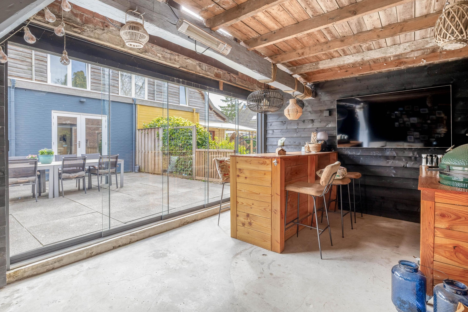 - Overdekte buitenruimte direct aan de woning, perfect als lounge, buitenkeuken of verlengstuk van de living;