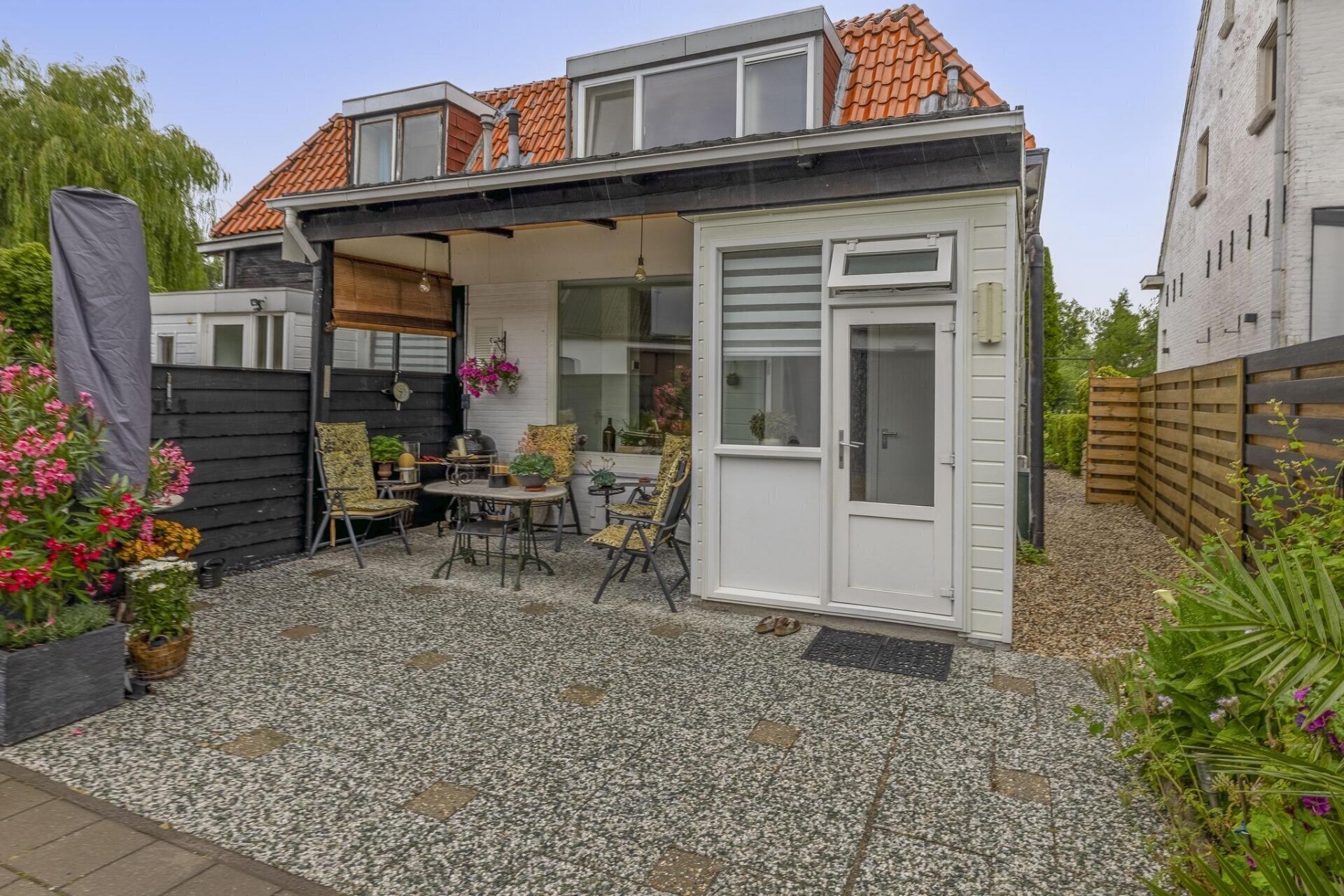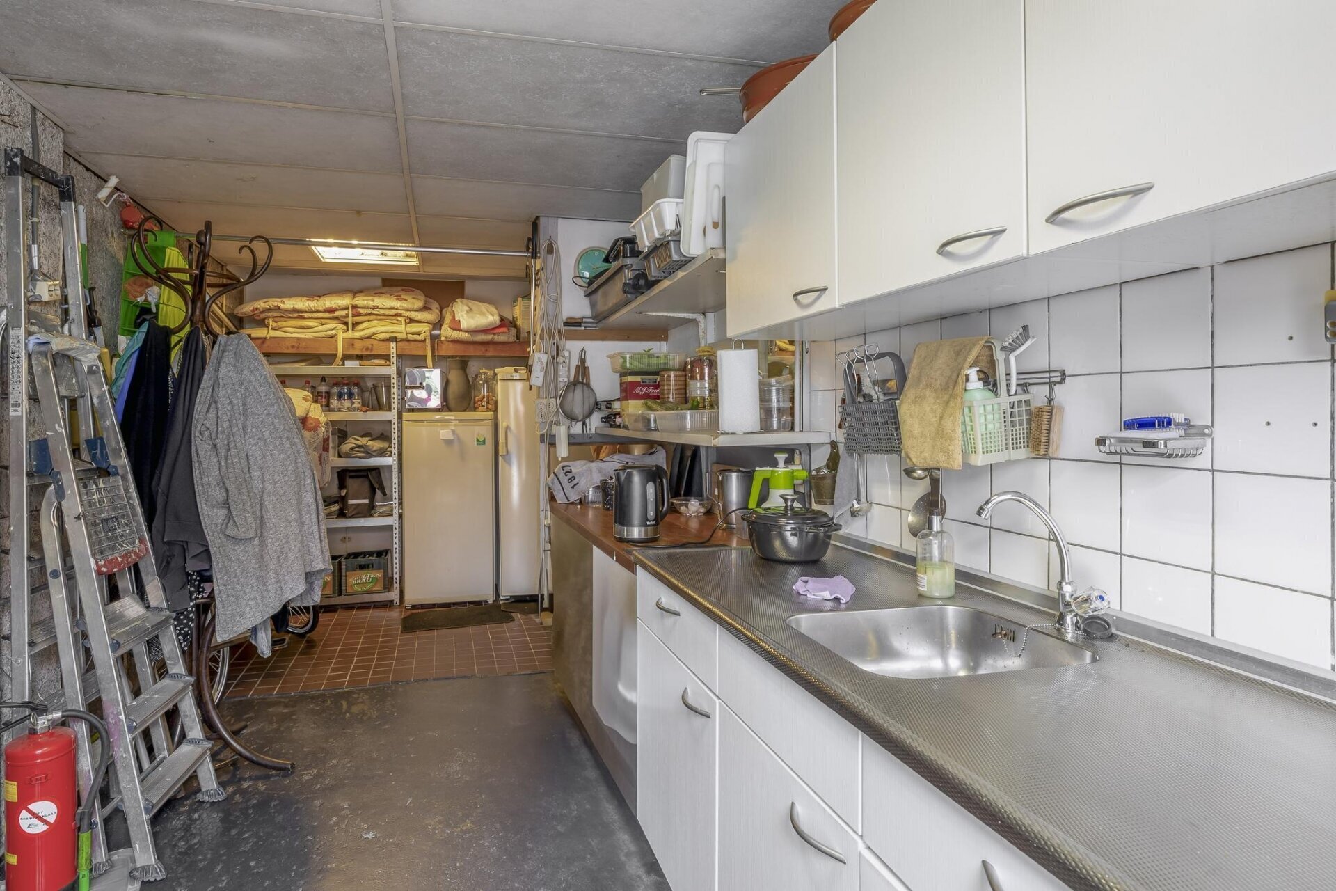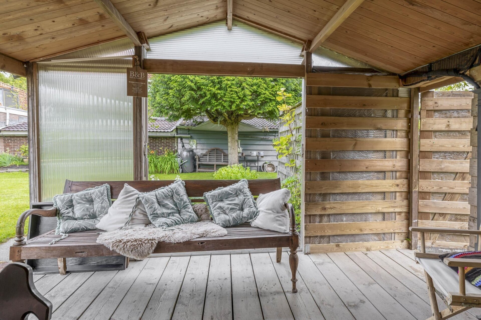 Deze externe bergruimte is onderverdeeld in een achtergelegen garage / opbergschuur en nog een oergezellig tuinhuis met veranda in de achtertuin.