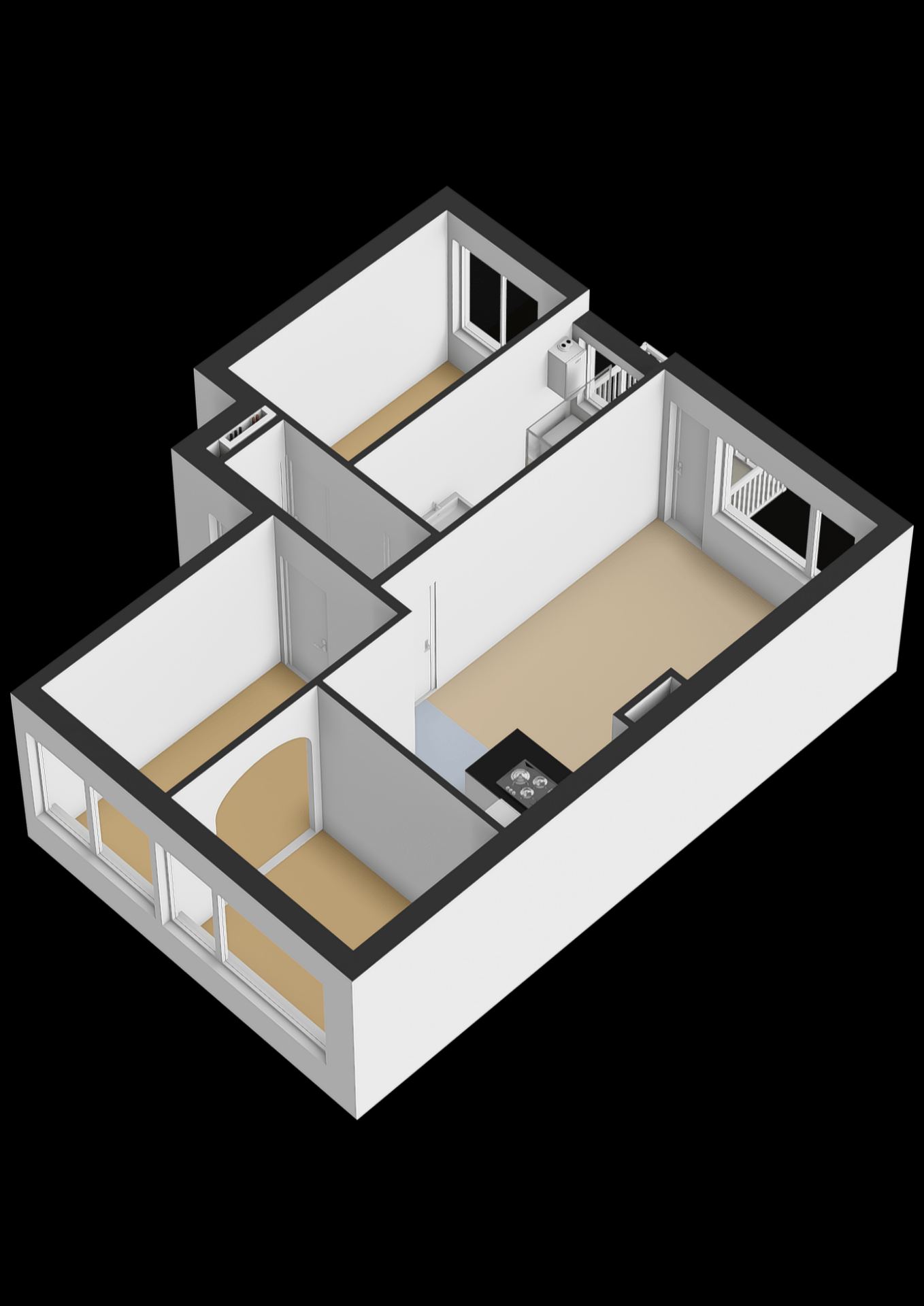 De woonkamer is een gezellige leefruimte met genoeg plek voor een comfortabele zithoek en eettafel. Dankzij het vrije zicht aan de voorzijde en de grote raampartijen voelt de ruimte open en licht aan. Via de woonkamer stap je het balkon op, dat op het westen ligt: perfect voor een borrel in de avondzon.