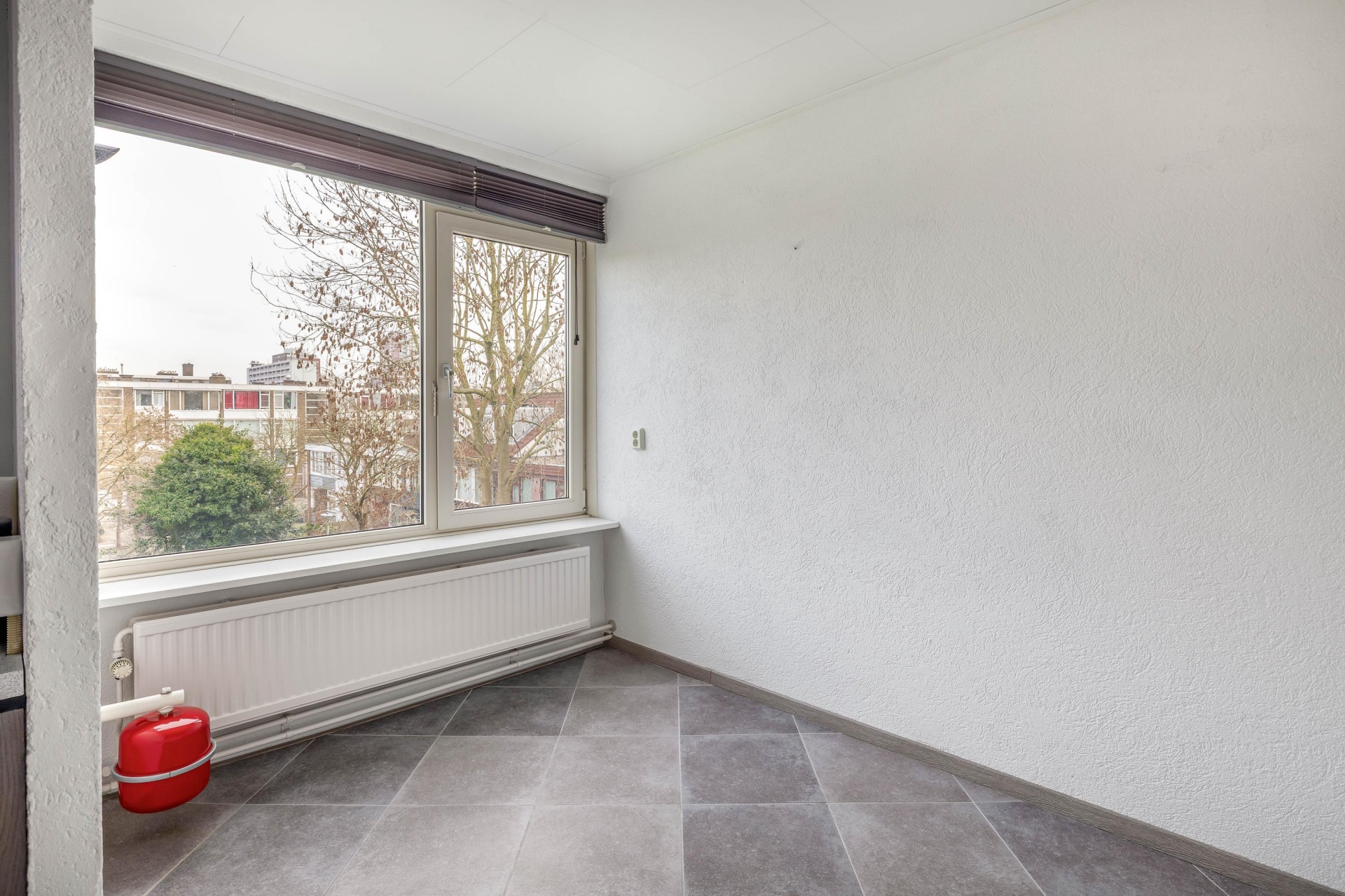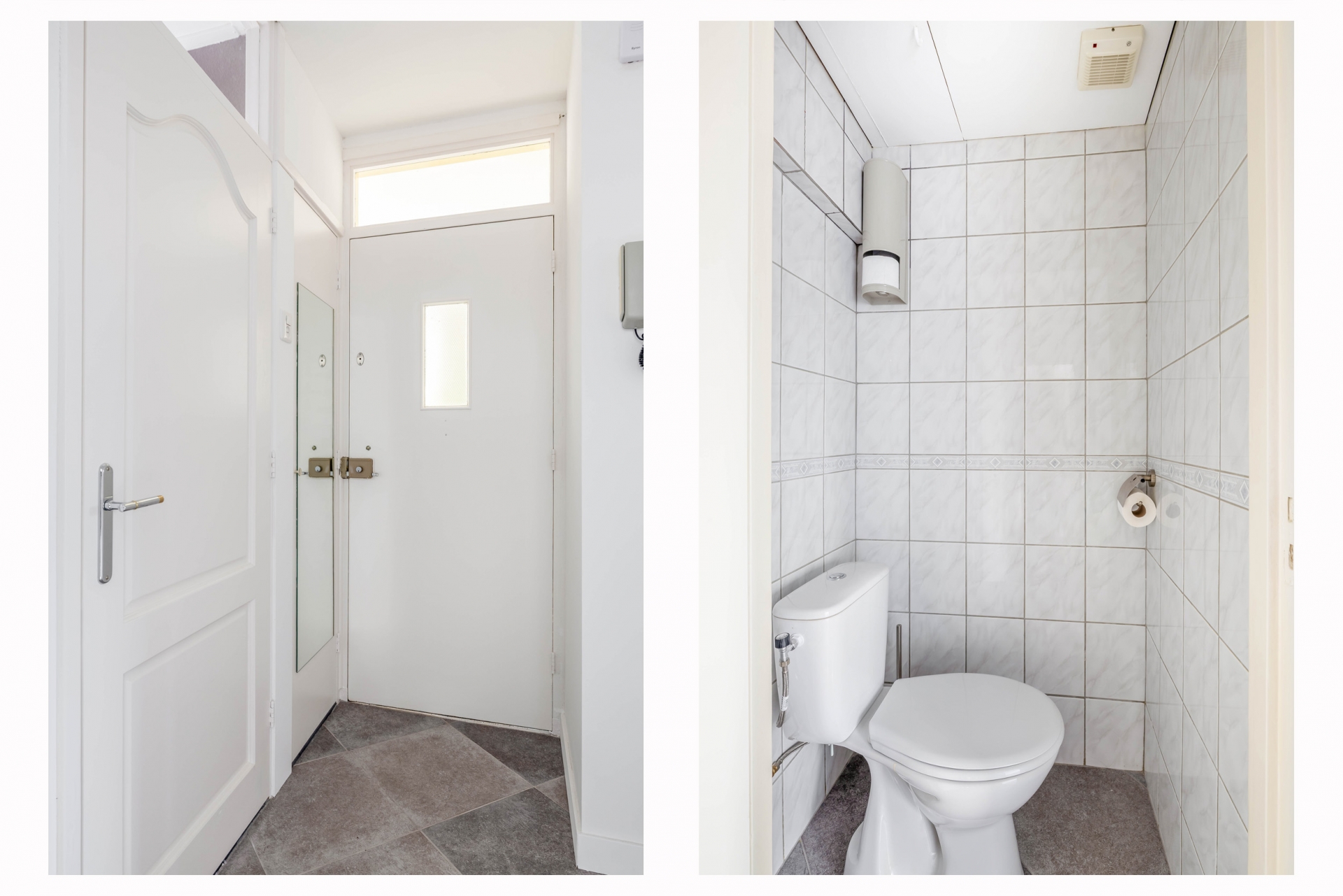 Het appartement telt twee slaapkamers, beide goed van formaat. De grootste kamer ligt aan de rustige achterzijde en is ideaal als master bedroom. De tweede slaapkamer bevindt zich aan de straatzijde en is ook prima in te richten als werkplek of logeerkamer. De badkamer is compact maar praktisch, met een douche en wastafel. Het toilet is apart, wel zo handig.