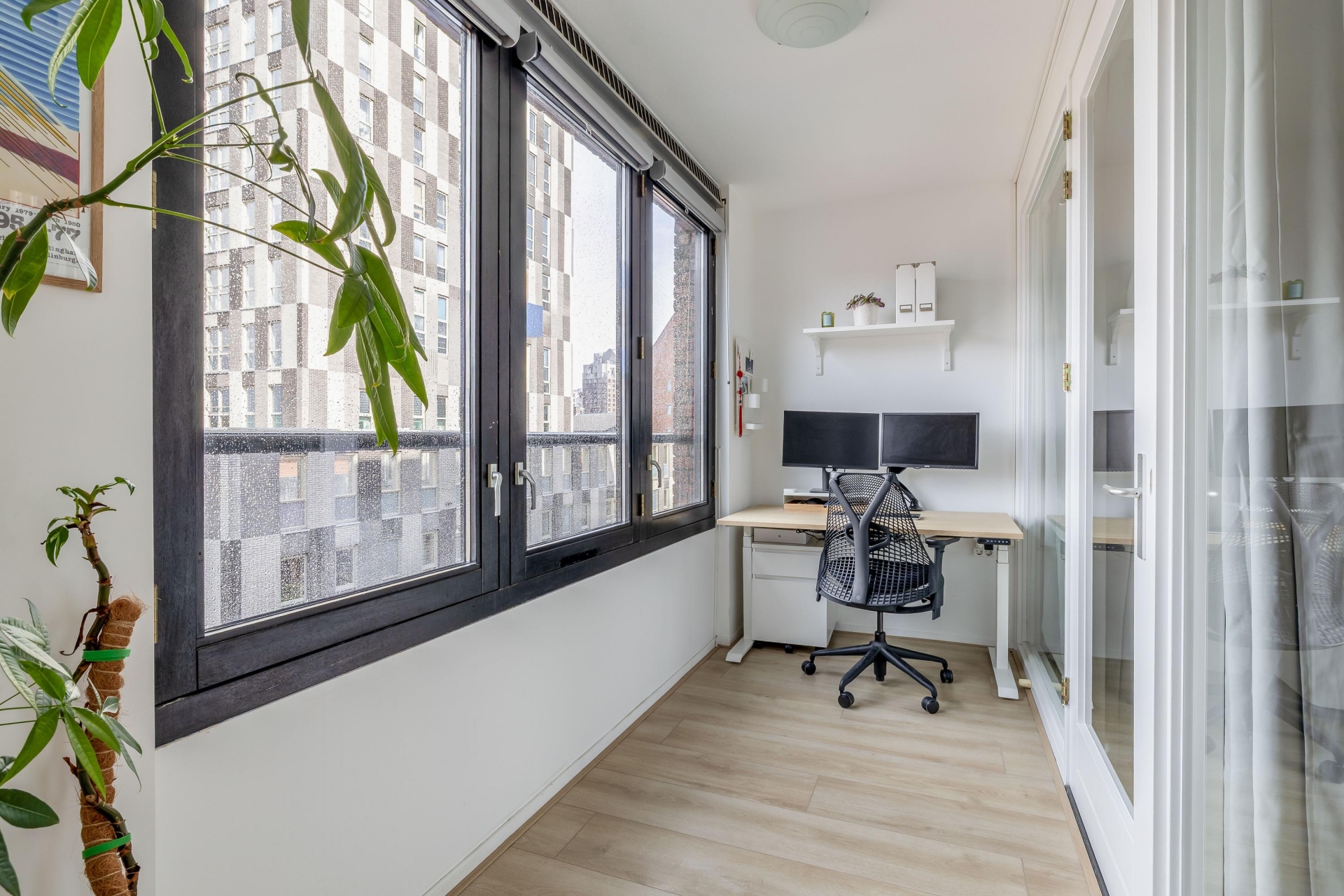 De loggia is een waardevolle toevoeging aan het appartement en wordt momenteel gebruikt als werkplek. Dit maakt het huis extra aantrekkelijk voor de thuiswerkers. Dankzij de ligging op het noordoosten heb je hier een fijne, lichte plek zonder dat het te warm wordt in de zomer.