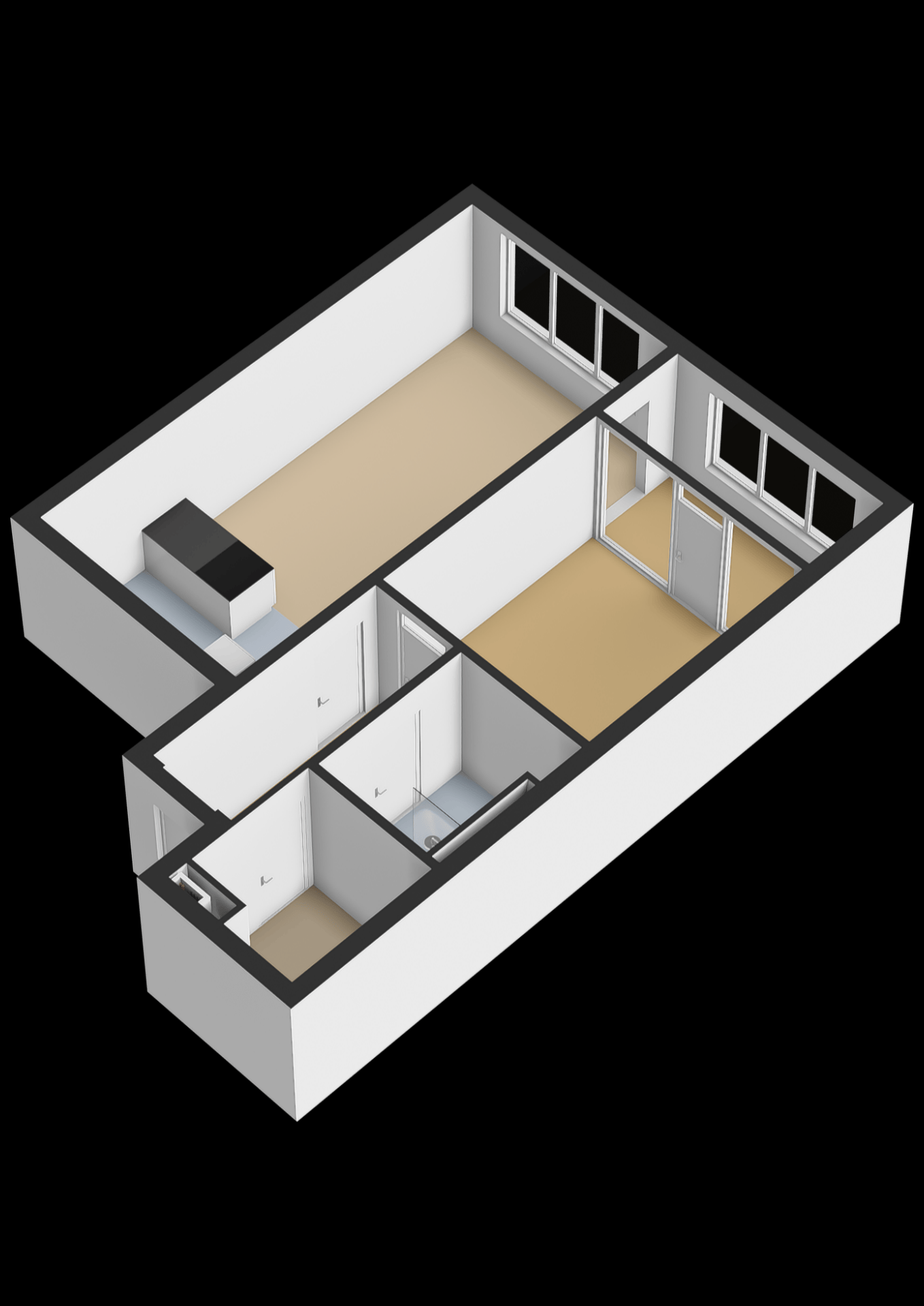 - Loggia aanwezig, nu in dienst als kantoorruimte