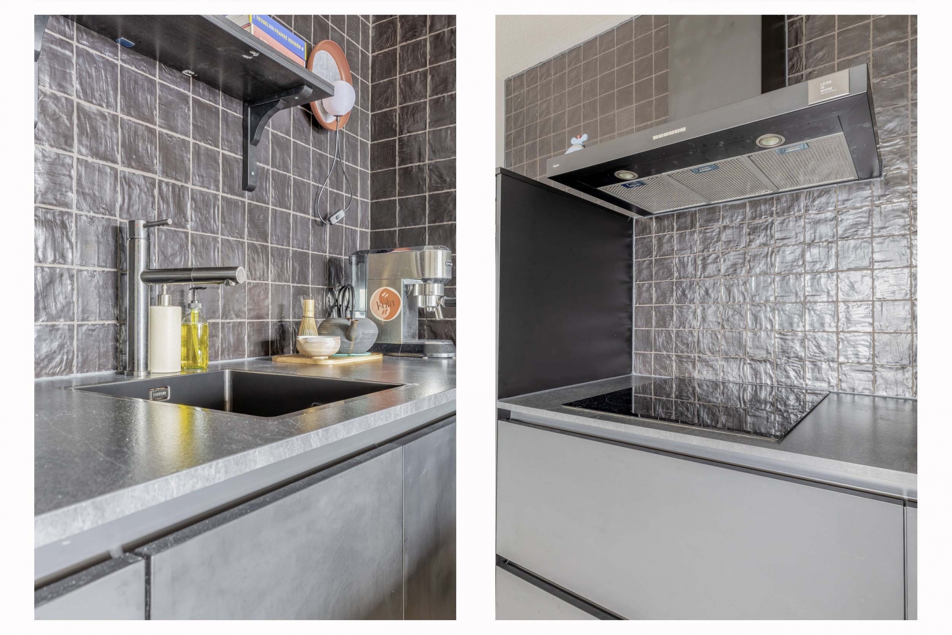 De keuken is in 2019 vernieuwd en heeft een moderne, stoere uitstraling met donkere fronten en een praktisch kookeiland. Hier kook je met gemak voor vrienden of geniet je van een snelle maaltijd aan de bar. De keuken is voorzien van diverse inbouwapparatuur en biedt voldoende werk- en opbergruimte.