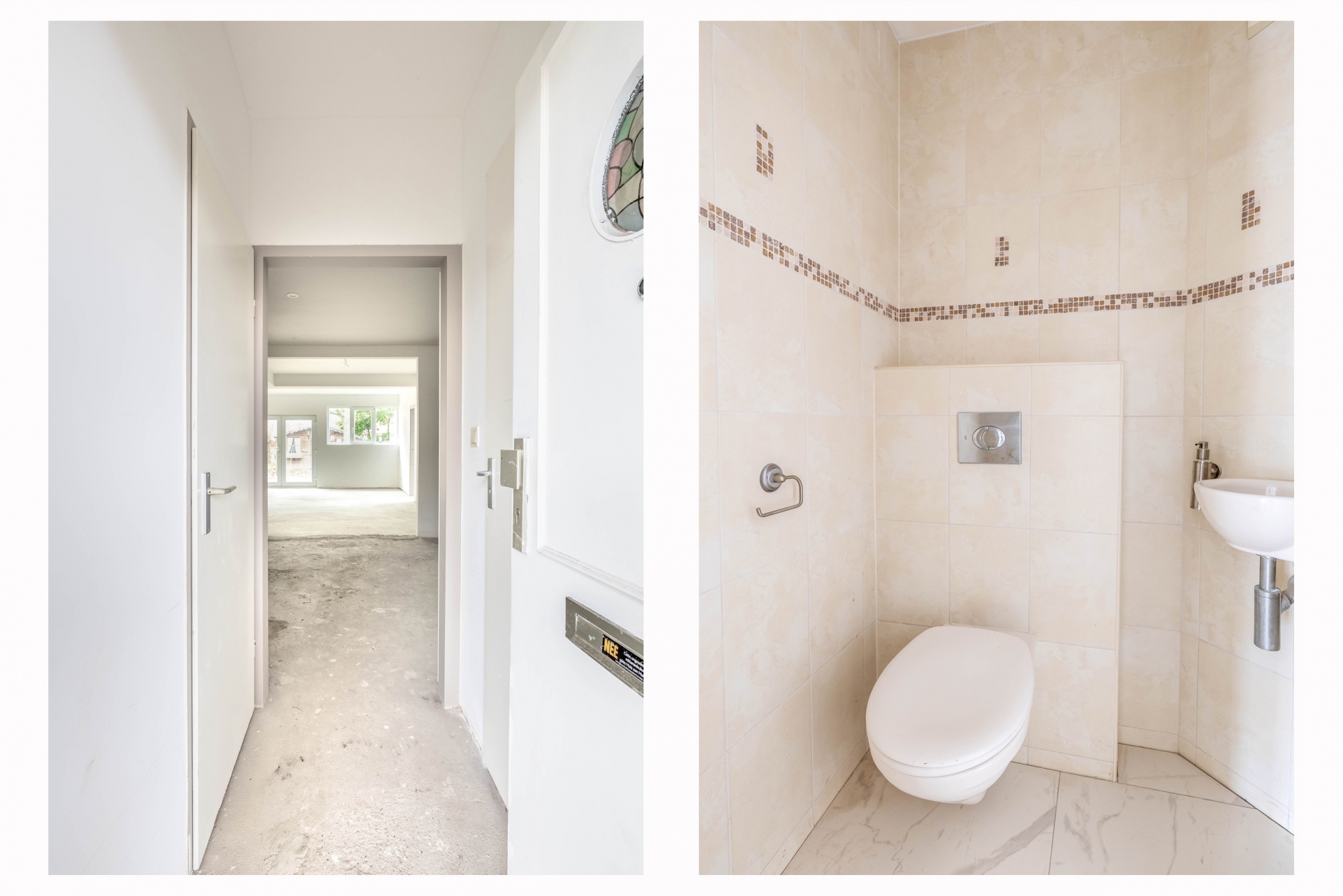 De badkamer is keurig afgewerkt en voorzien van een ruime inloopdouche met glazen bouwstenen, een strak wastafelmeubel en tweede toilet. Ook is er een aparte toiletruimte in de hal. Alles fris, neutraal afgewerkt en direct te gebruiken.