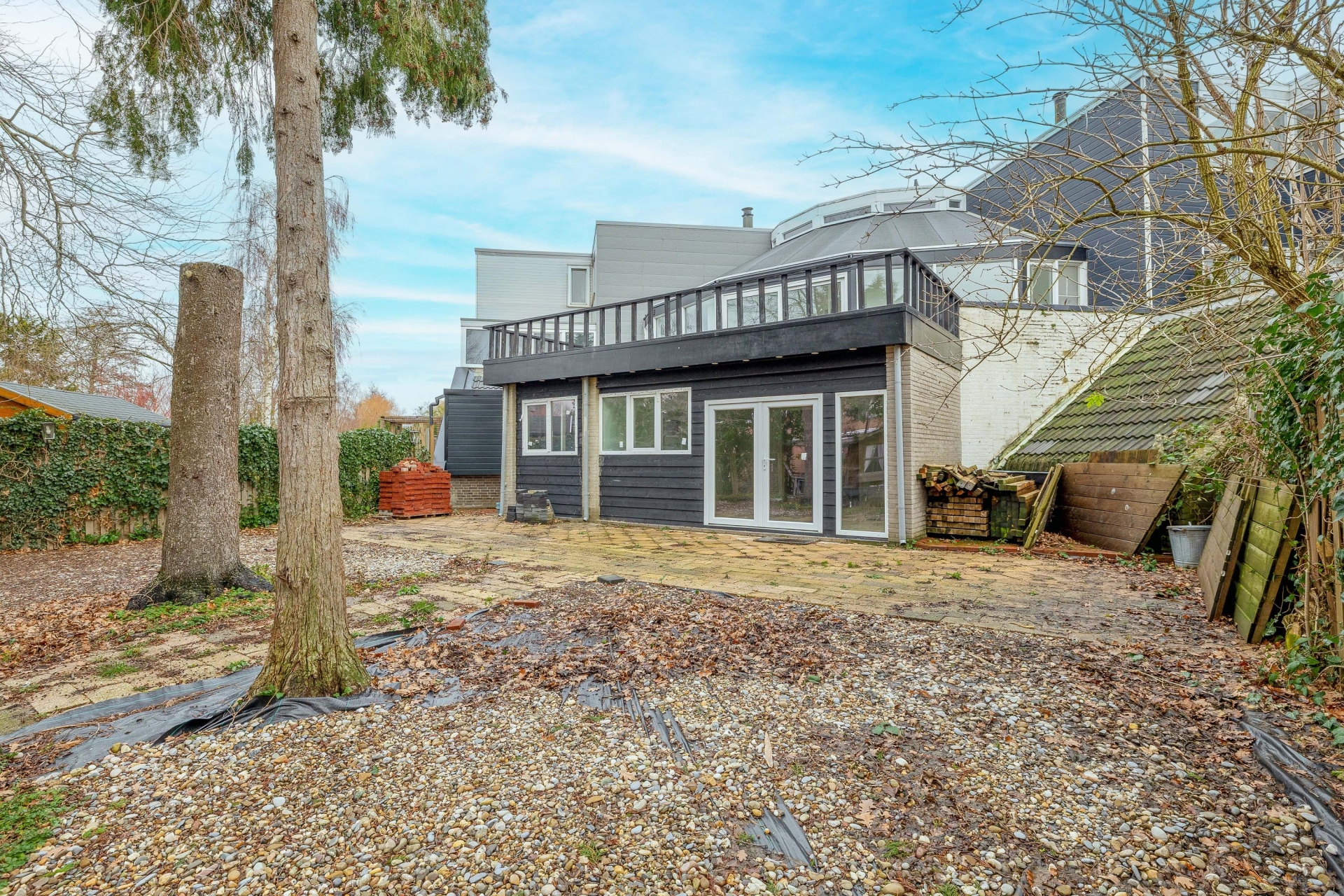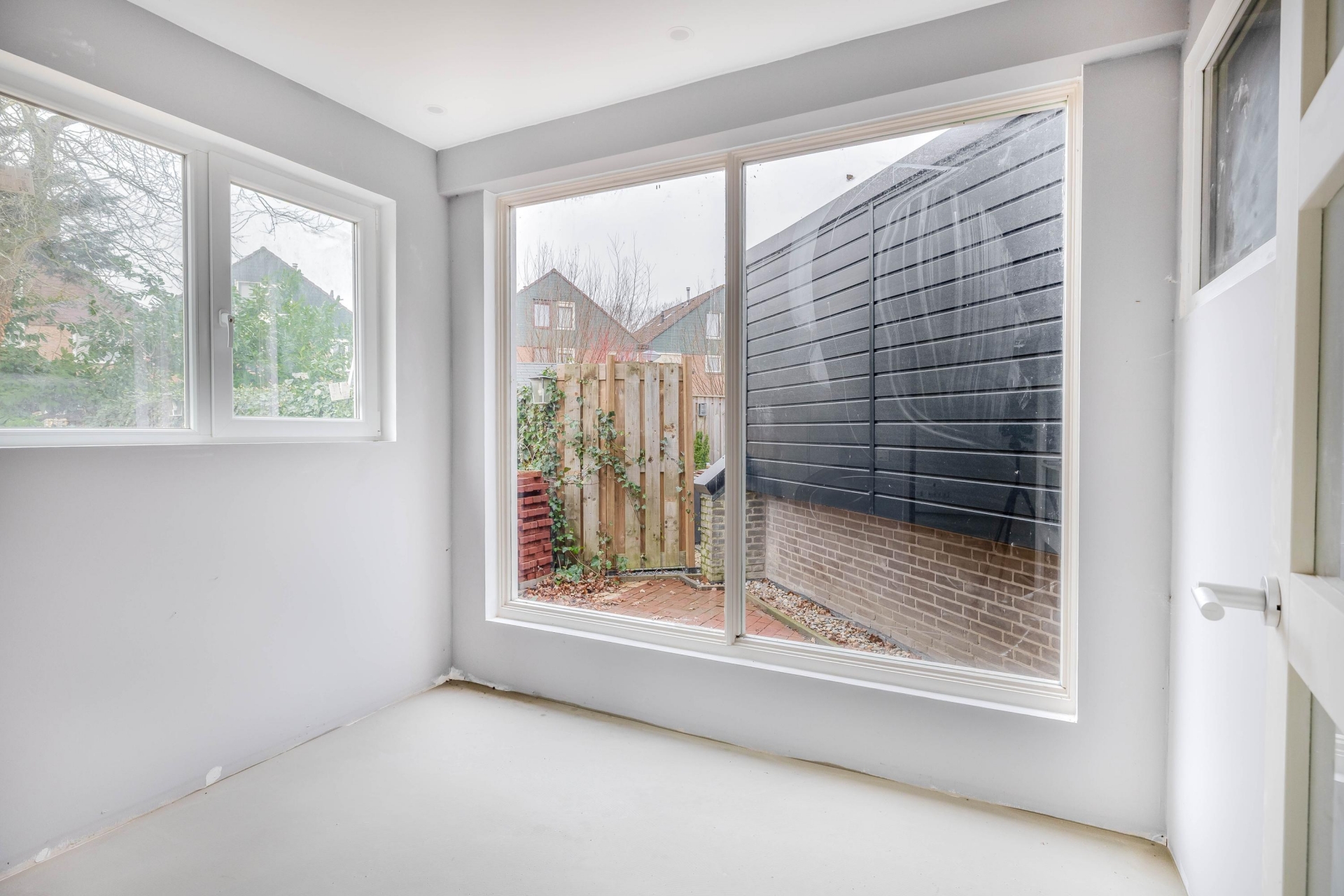 Wat meteen opvalt bij binnenkomst is de speelse, open opzet van dit huis. De woonkamer van ca. 31 m² voelt licht en ruim aan dankzij de grote raampartijen aan de tuinzijde. In de aangrenzende moderne open keuken is gekozen voor lichte fronten en een robuust gasfornuis, met volop werkruimte en kastruimte – een fijne plek voor kookliefhebbers. De begane grond is uitgebreid met een praktische aanbouw (2021) voor meer leefruimte en op de begane grond bevinden zich twee slaapkamers van de vijf slaapkamers. Ideaal als je gelijkvloers wilt wonen, werkt aan huis of op zoek bent naar een extra logeerkamer.