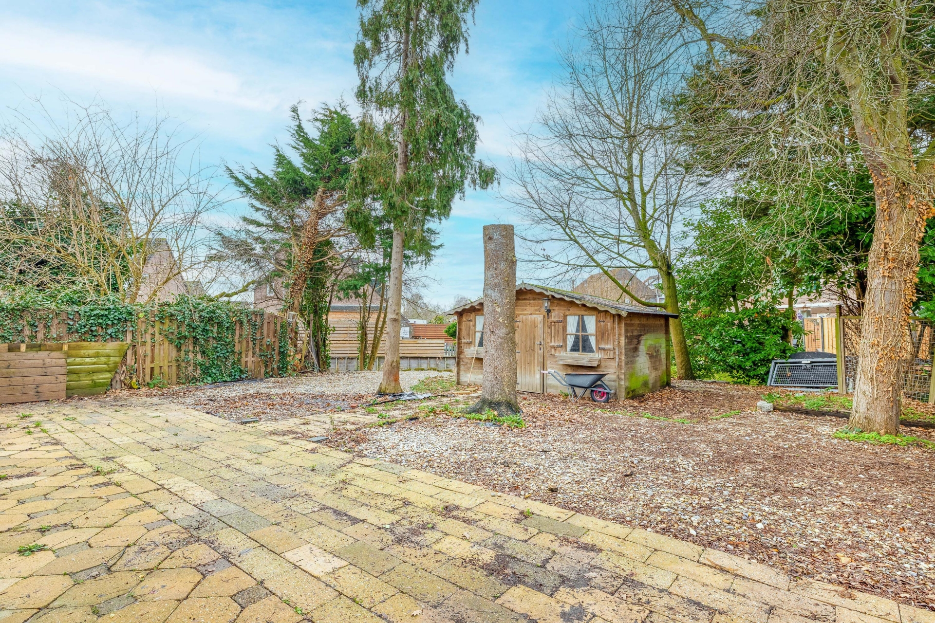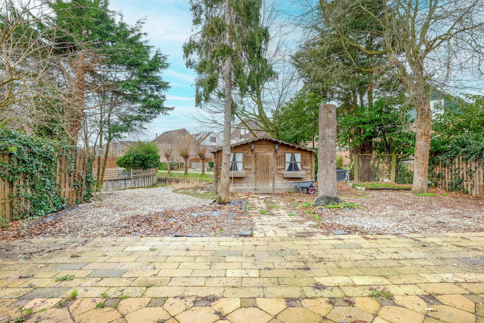 De achtertuin van maar liefst 105 m² ligt op het westen en grenst direct aan een brede waterpartij. Hier geniet je de hele middag en avond van de zon én van rust. De ligging aan het water zorgt voor een groene, vrije beleving zonder directe inkijk van achterburen. Ideaal voor tuinliefhebbers, spelende kinderen of zomerse barbecues. Achterin de tuin staat een vrijstaande houten berging (14 m²) met elektra – handig voor opslag of als kleine werkplek.