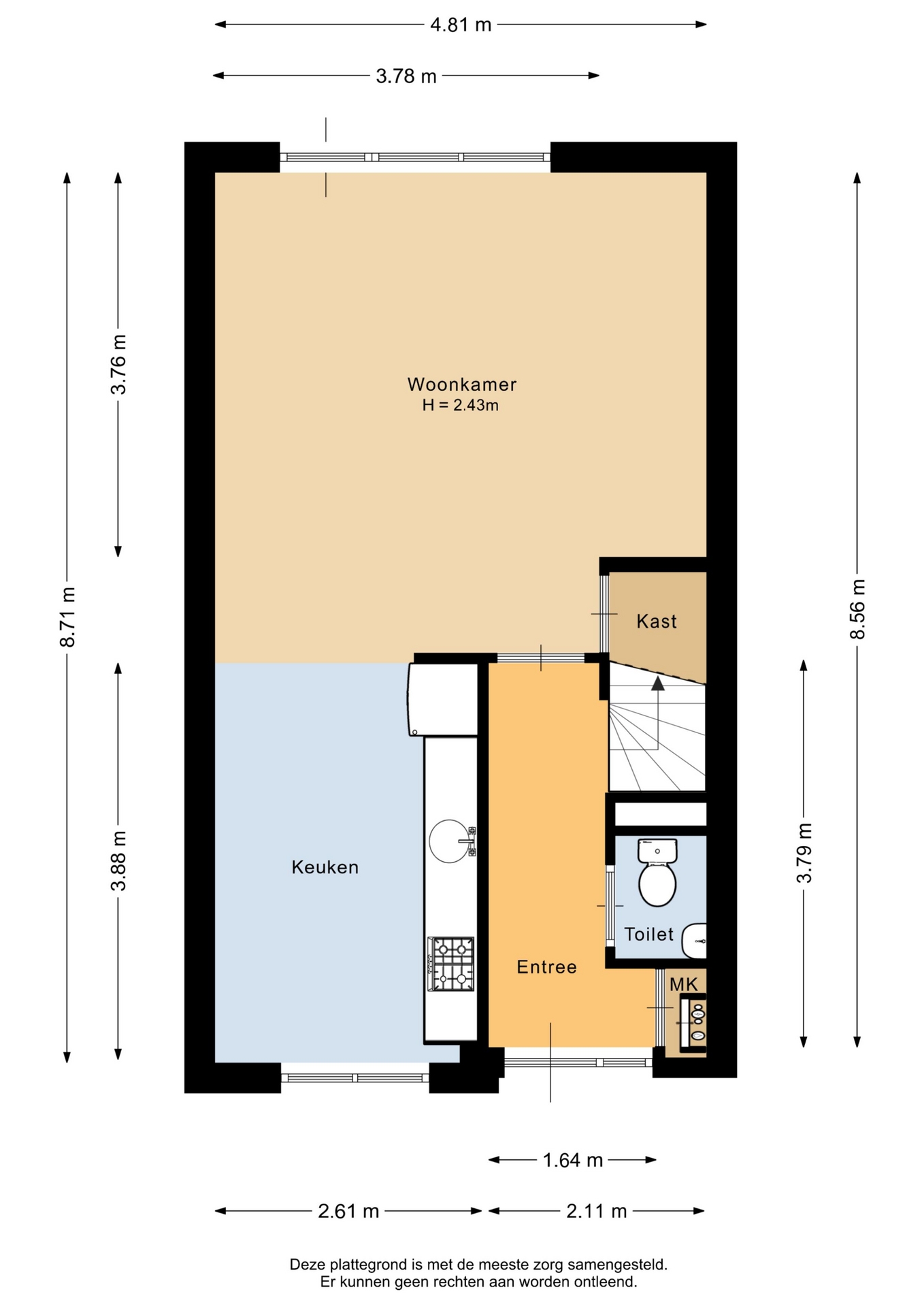 “Deze informatie is met de nodige zorgvuldigheid samengesteld. Er wordt echter geen aansprakelijkheid aanvaard voor eventuele onvolledigheden, onjuistheden of de gevolgen daarvan. Alle opgegeven maten en oppervlakten zijn indicatief. Van toepassing zijn de NVM-voorwaarden.”