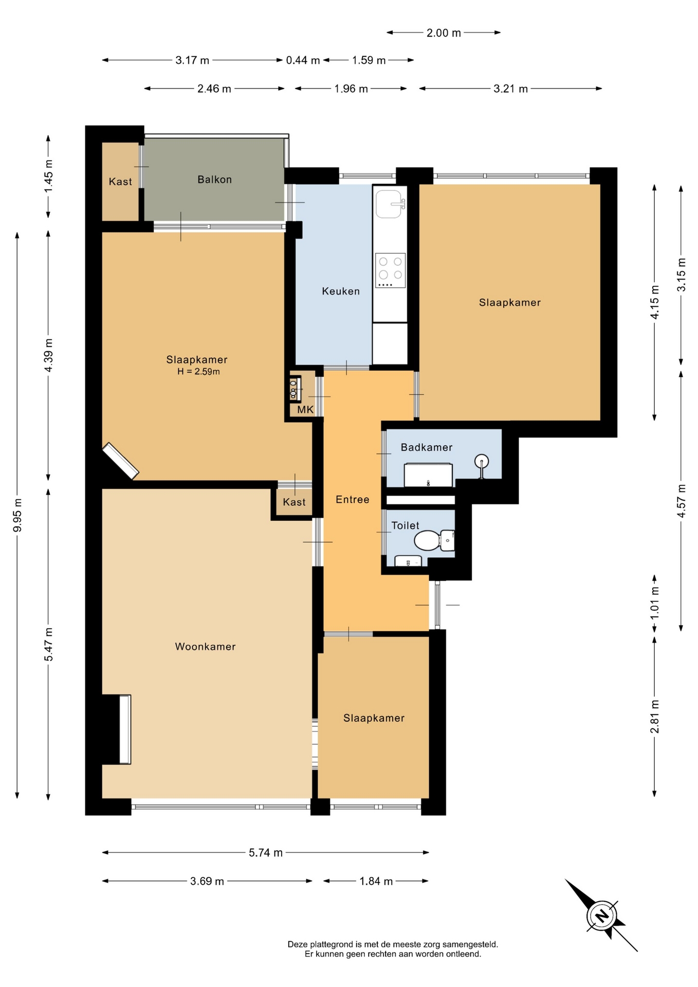 “Deze informatie is door ons met de nodige zorgvuldigheid samengesteld. Onzerzijds wordt echter geen enkele aansprakelijkheid aanvaard voor enige onvolledigheid, onjuistheid of anderszins, dan wel de gevolgen daarvan. Alle opgegeven maten en oppervlakten zijn indicatief.”