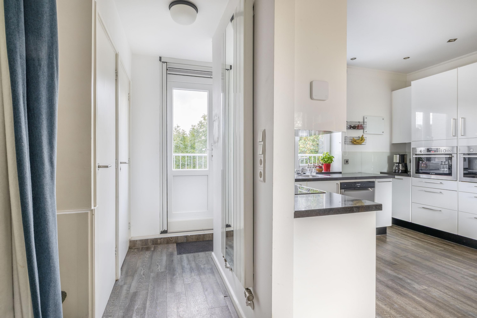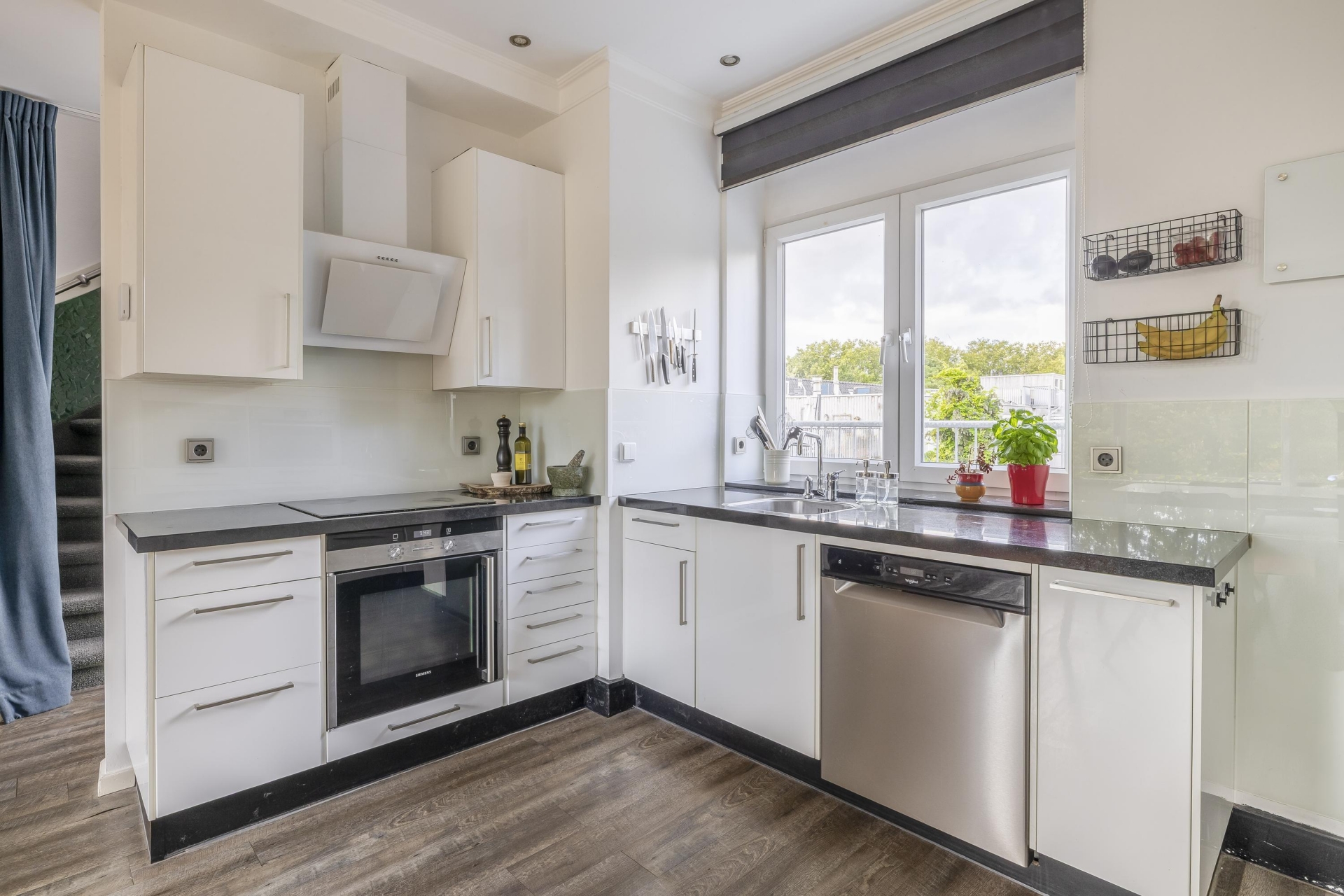 Binnen tref je een comfortabele en lichte woonruimte met PVC vloer, glad gestuukte wanden en een hoog afwerkingsniveau. Op de derde verdieping vind je de entree met trapopgang, een modern toilet, praktische trapkast met wasmachineaansluiting en toegang tot het balkon. Aan de voorzijde ligt de woonkamer met uitzicht op de Schie, en aan de achterzijde de ruime keuken. De keuken is compleet uitgerust met onder andere een combi-oven, stoomoven, inductiekookplaat, afzuigkap en vaatwasser.